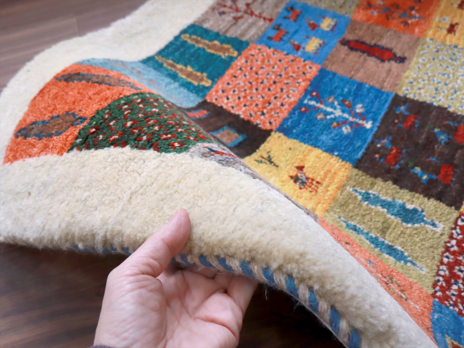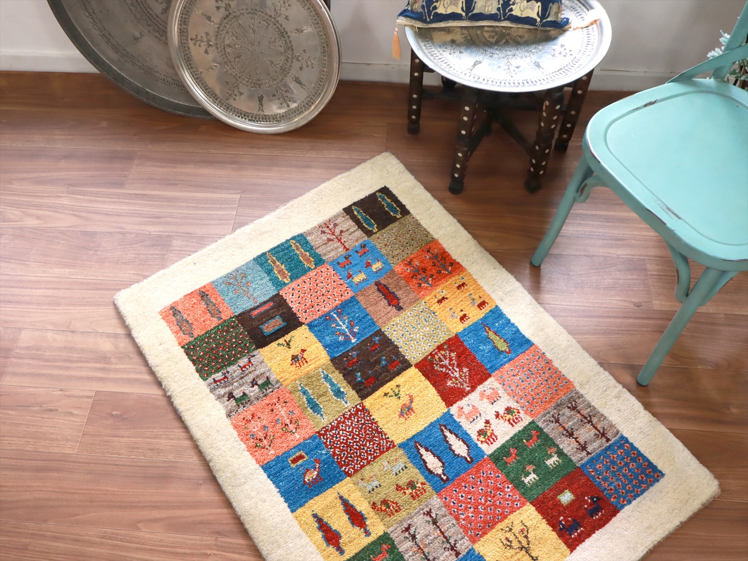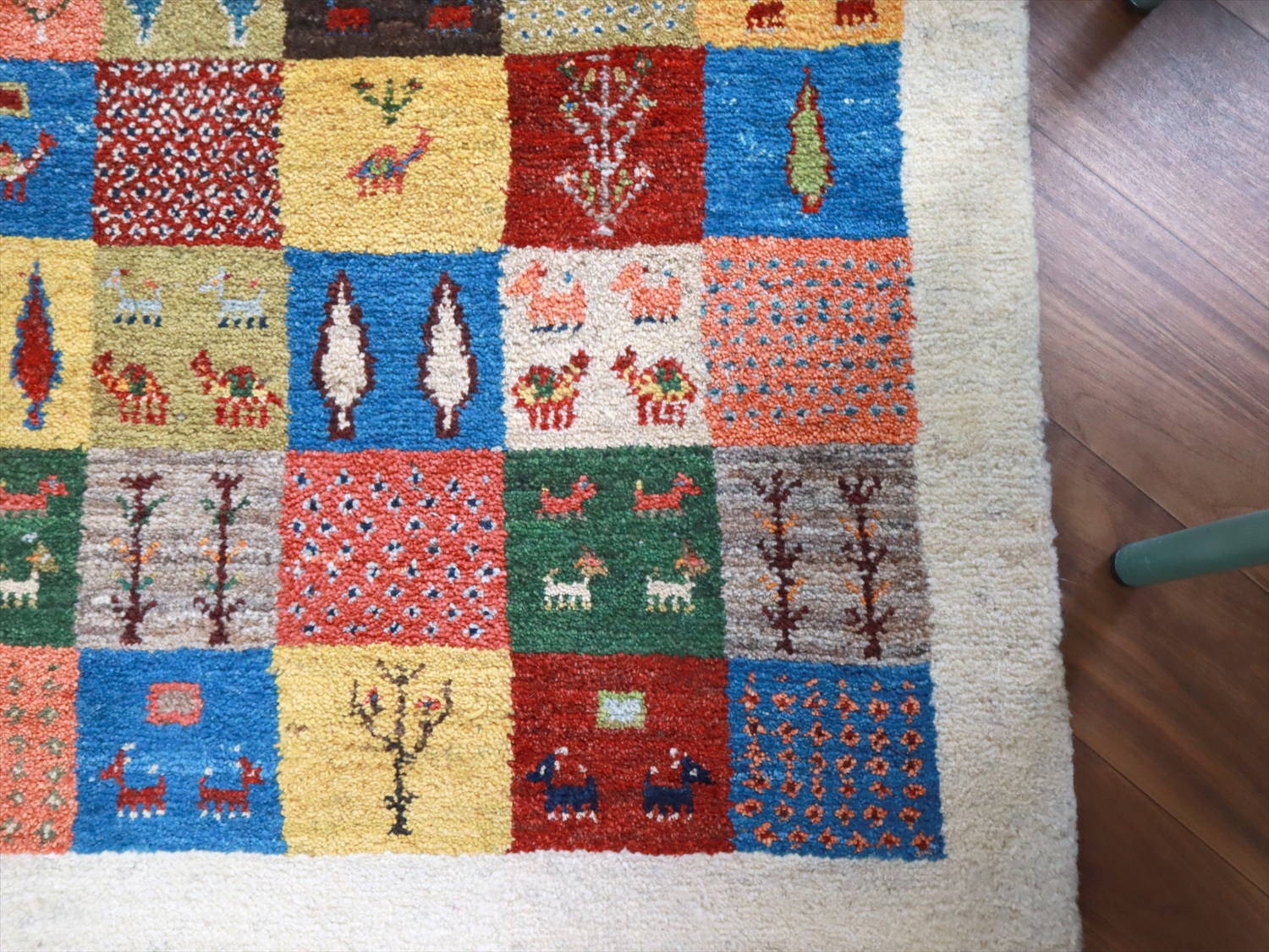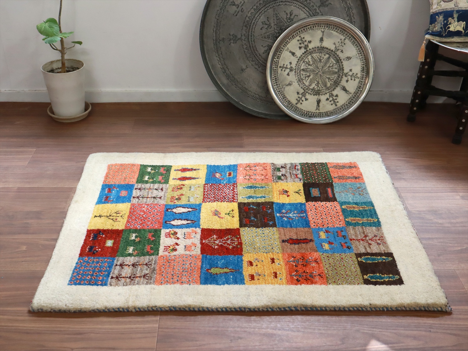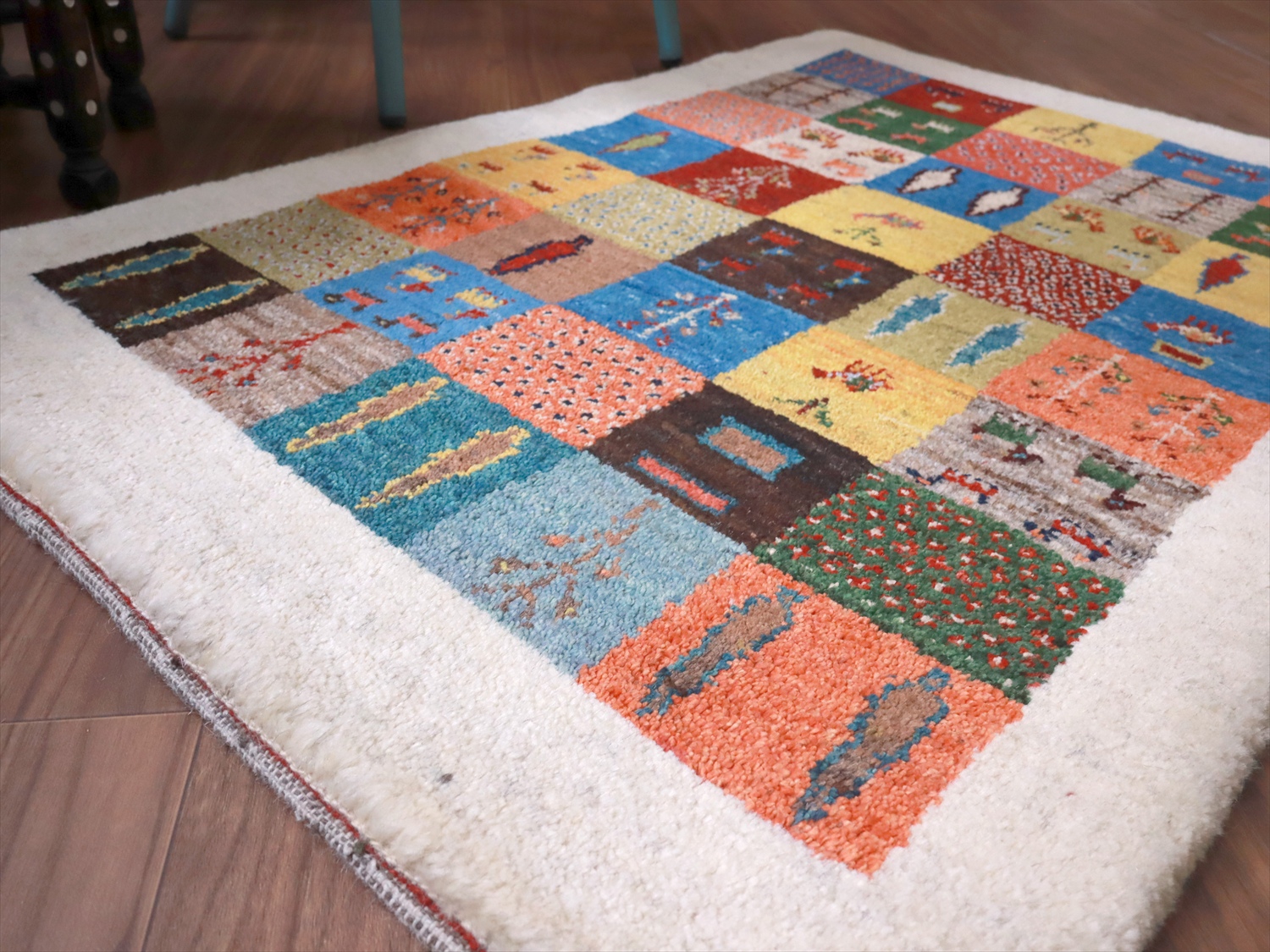 ギャッベ イラン 手織りラグ 120x85cm Gabbeh Nomad カラフルなモザイクのようなタイルデザイン