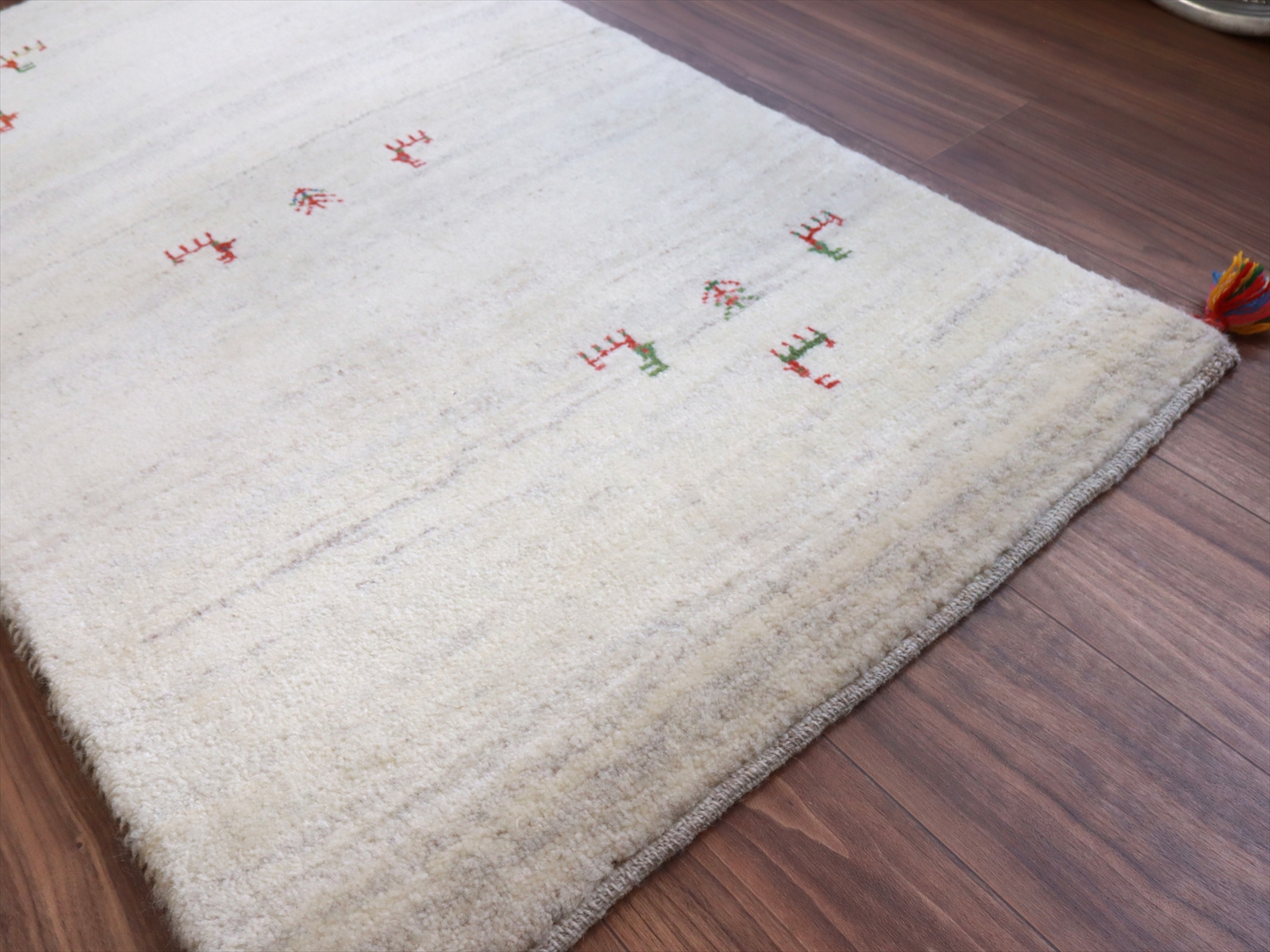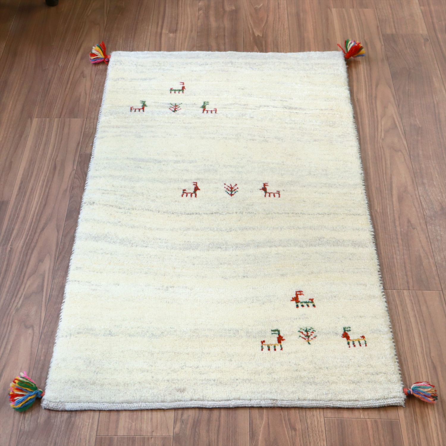 ギャッベ イラン 手織りラグ 127x74cm ナチュラルアイボリー 動物モチーフ