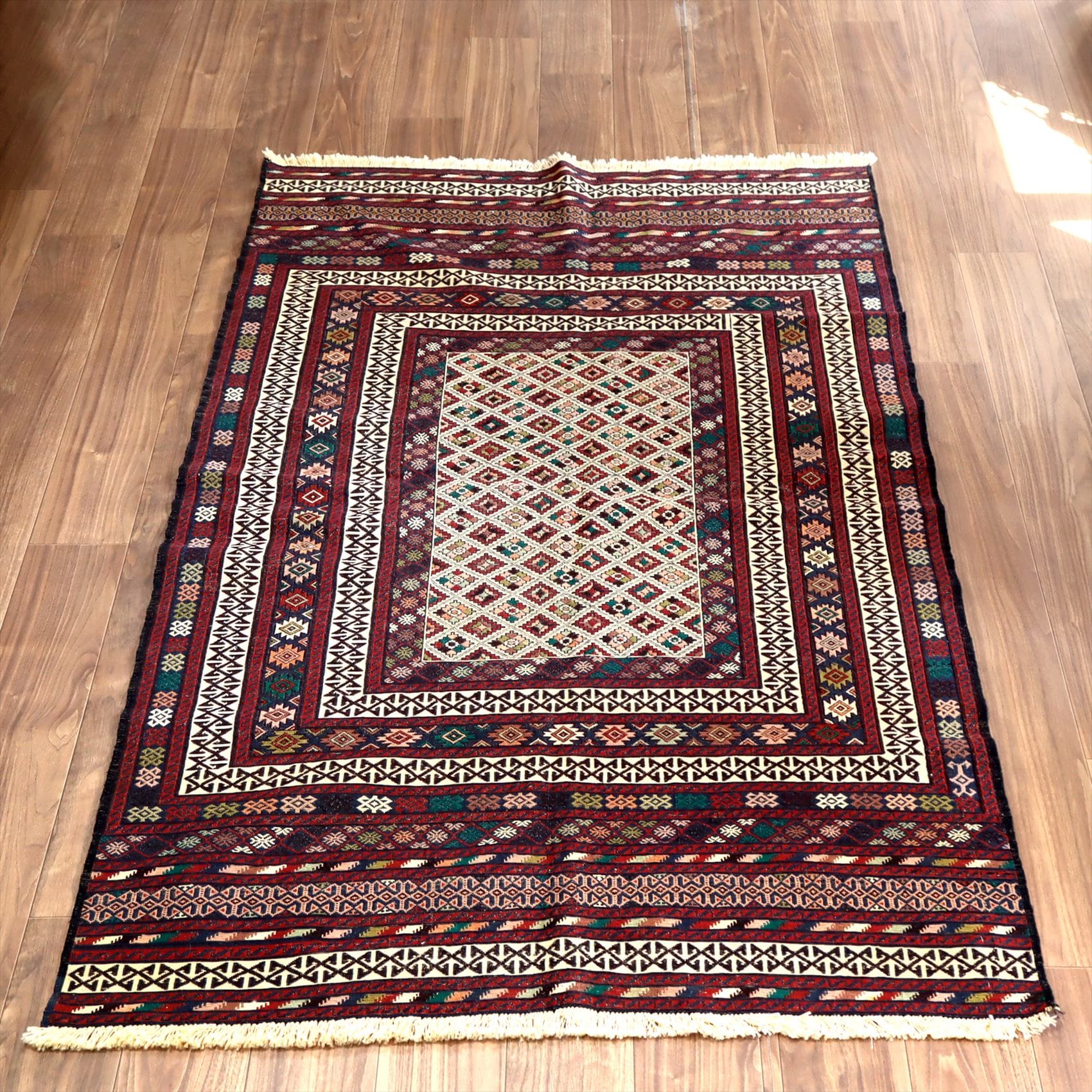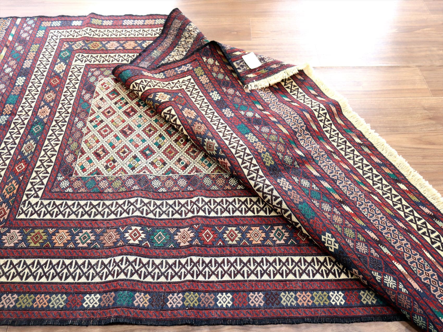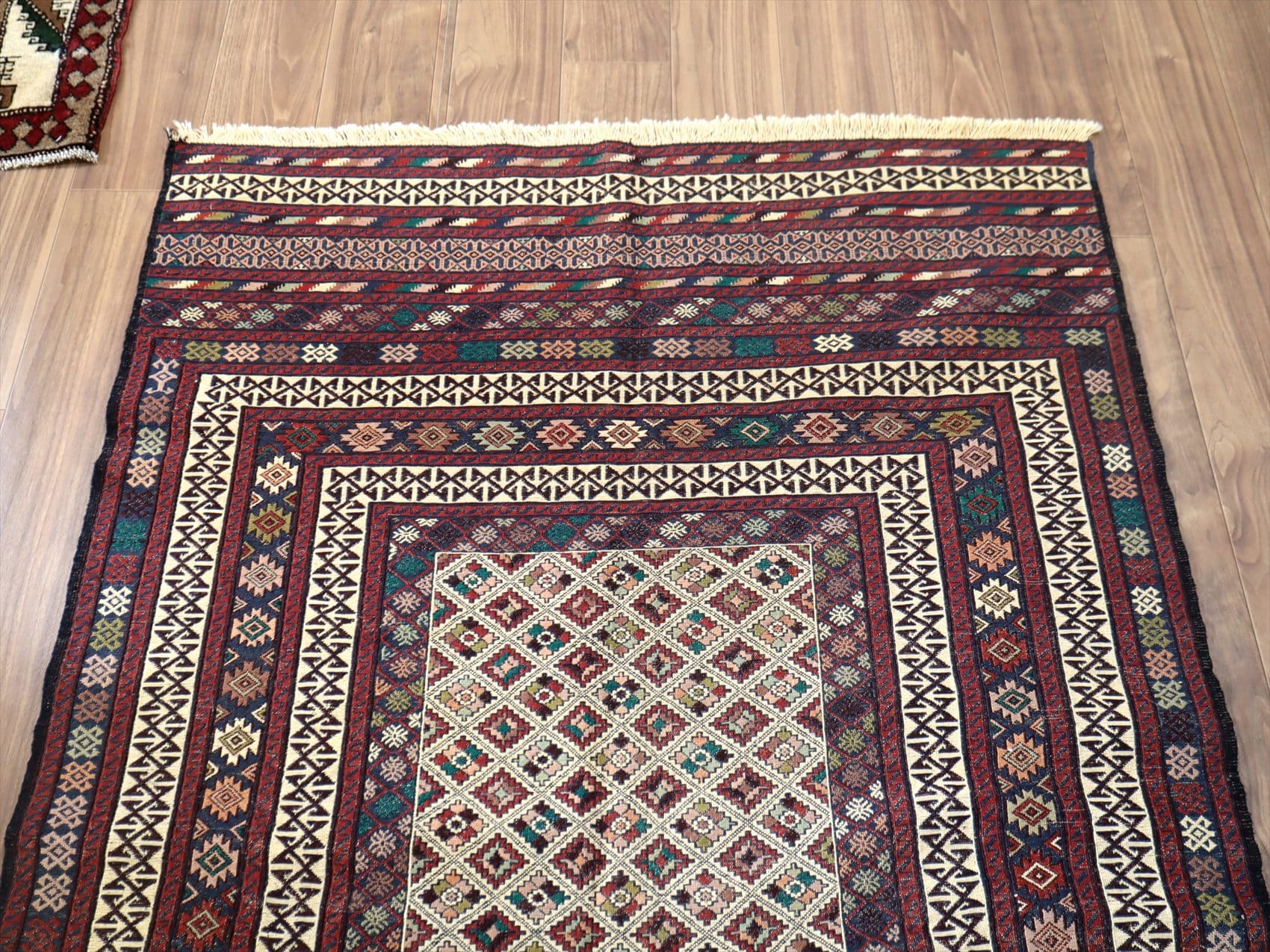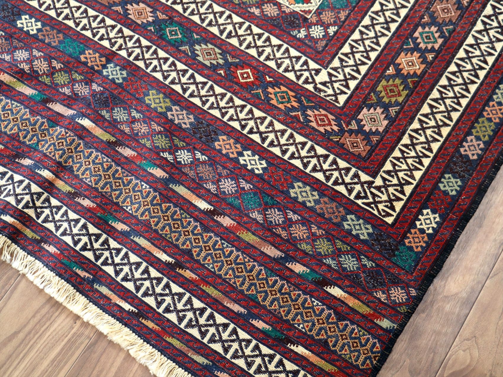 ミシュワニ・アフガンキリム/スーパーファイン200×118cm 細かな織りの幾何学モチーフ