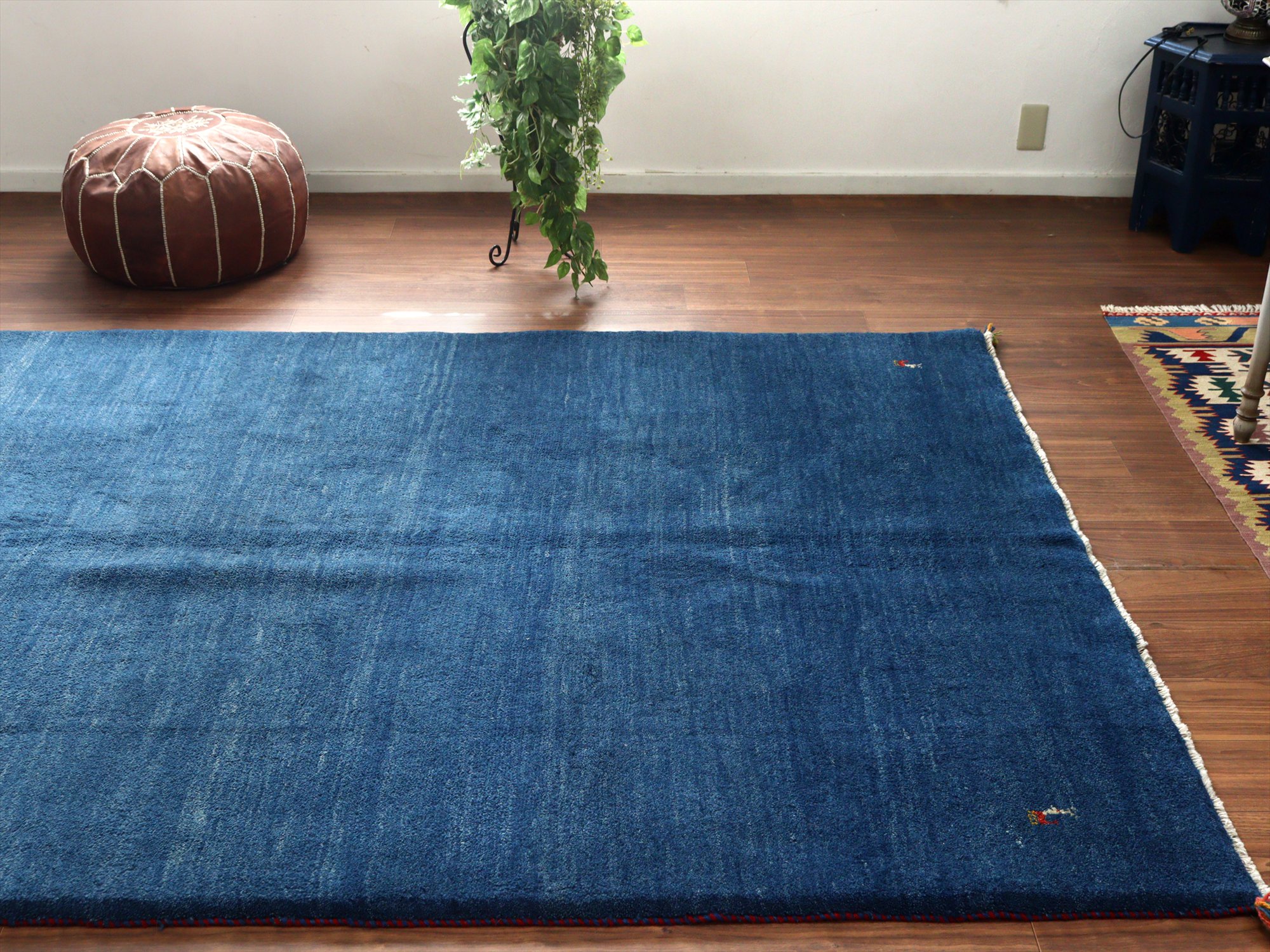 Key:ギャッベ, ギャベ, リビング, 廊下, ベッドサイド, イラン, シラーズ, ペルシャ, バザールギャッベ, ポンポン, 手織り, 一点もの, 青, ブルー, ガラタバザール, 東京中野区