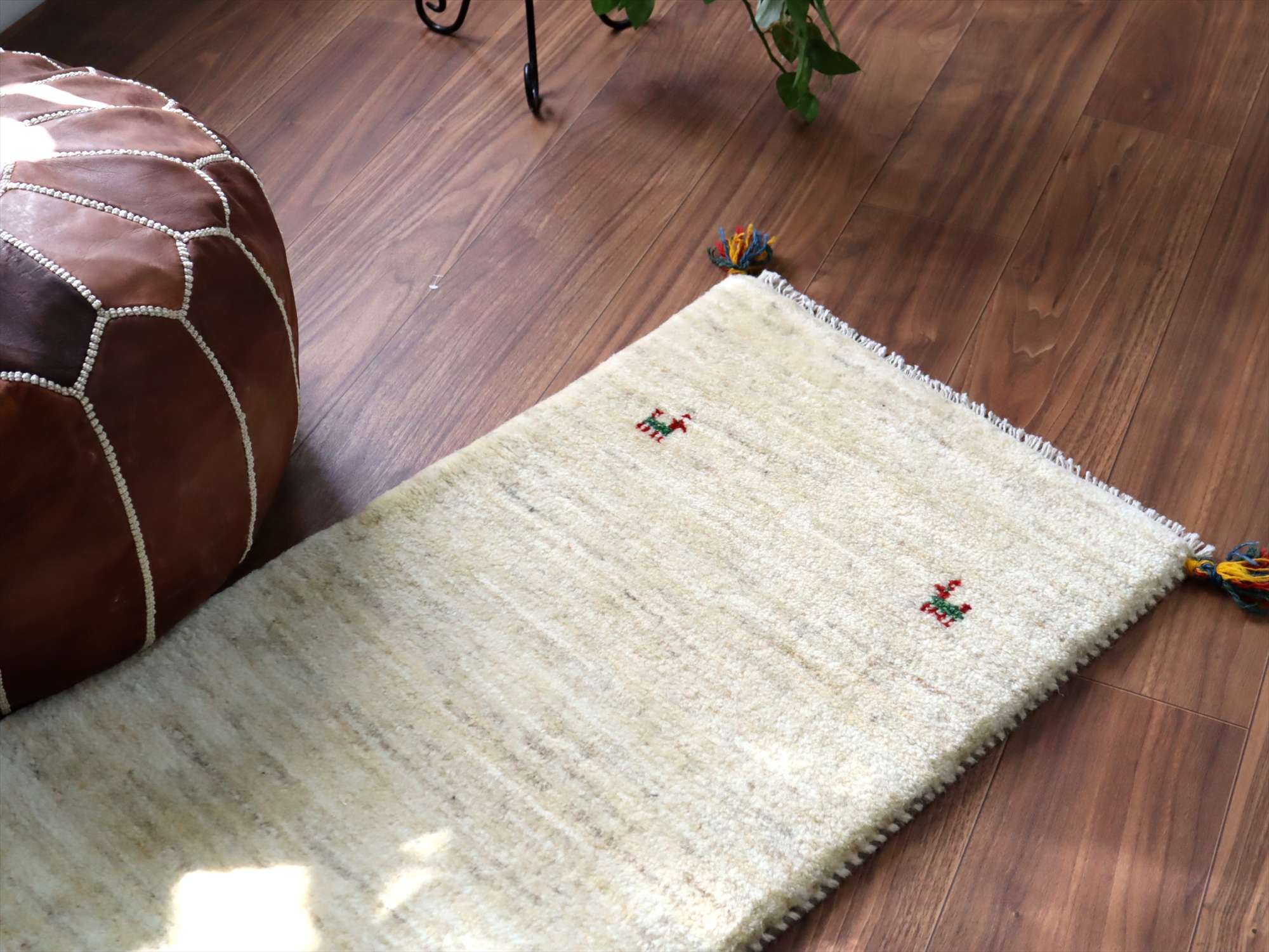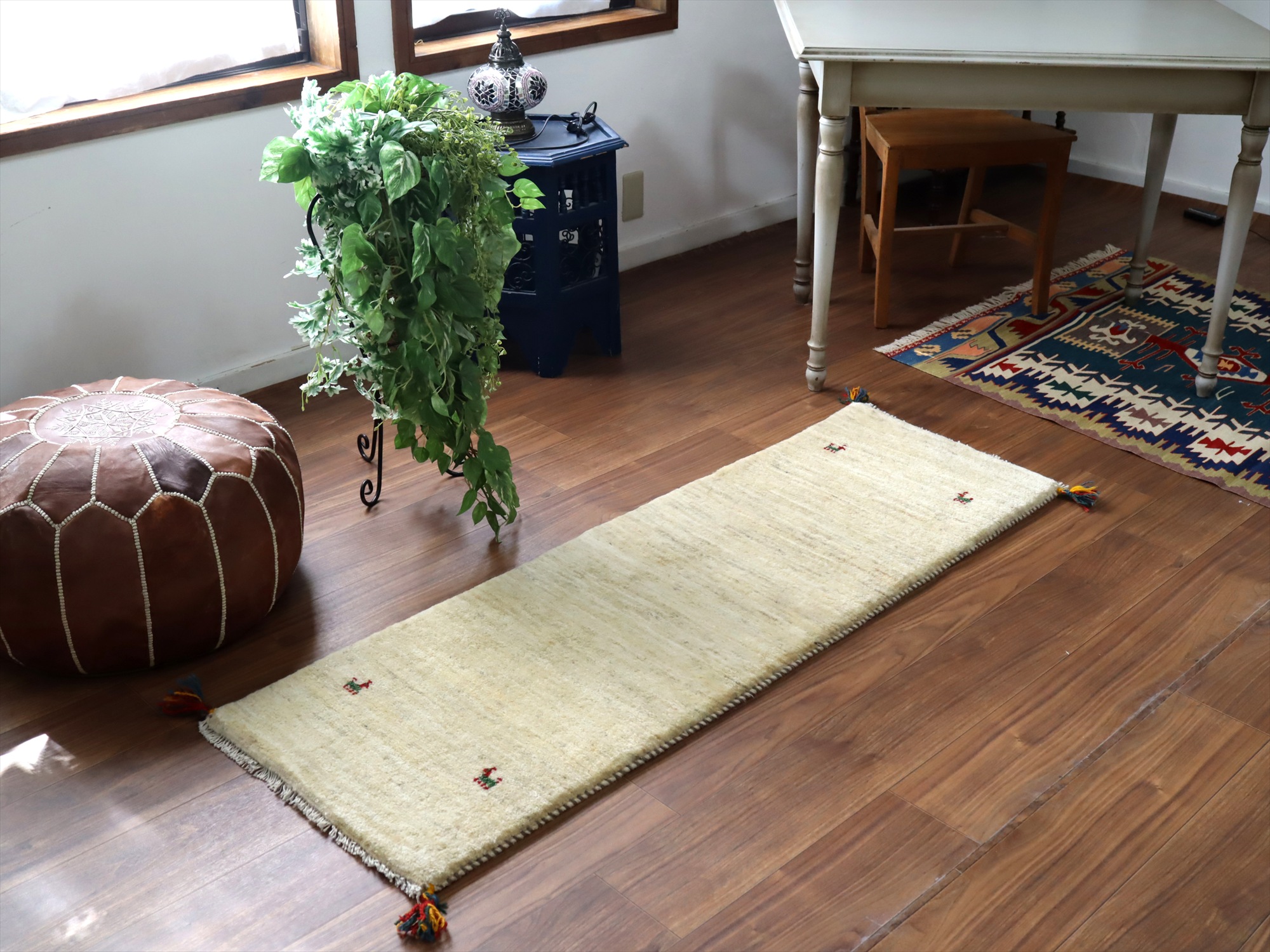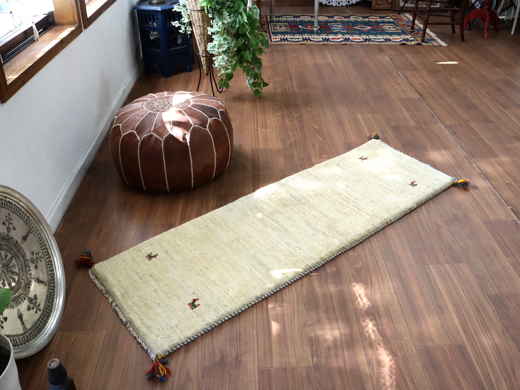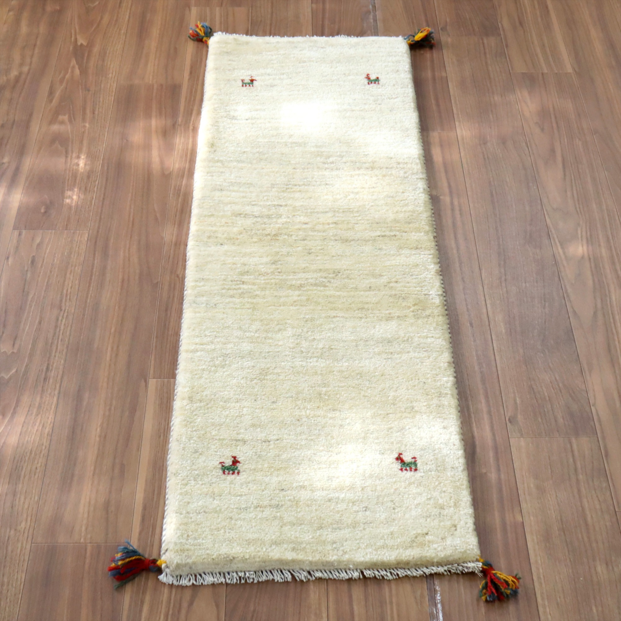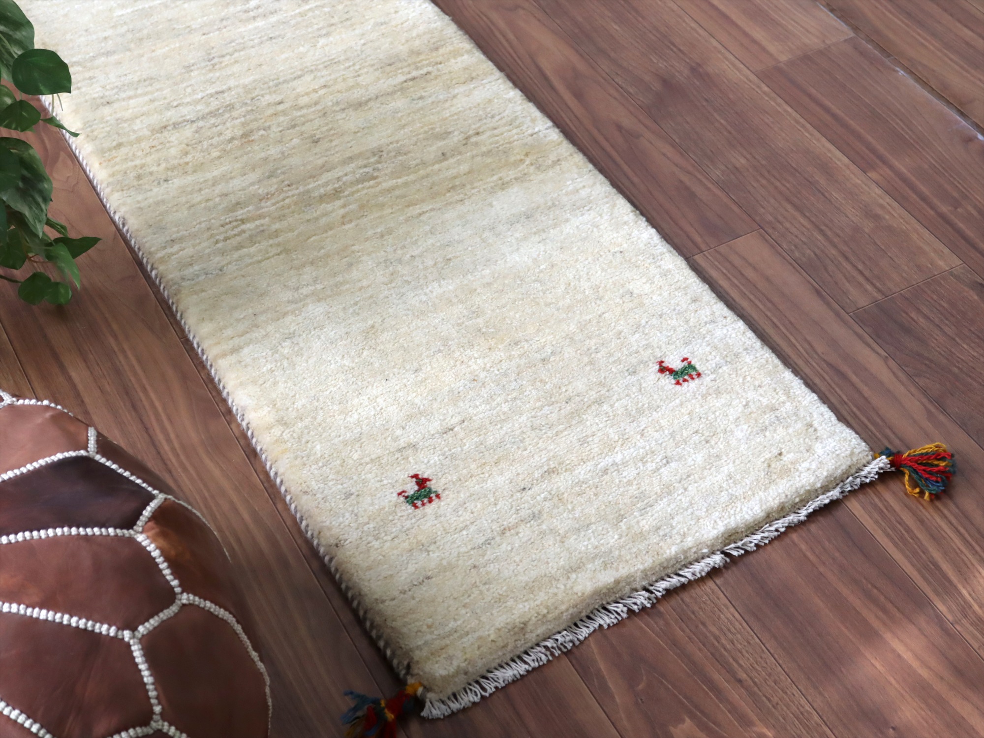 ギャッベ イラン 手織り 細長ランナー 150x50cm ナチュラルアイボリー 羊毛 シンプル 無地