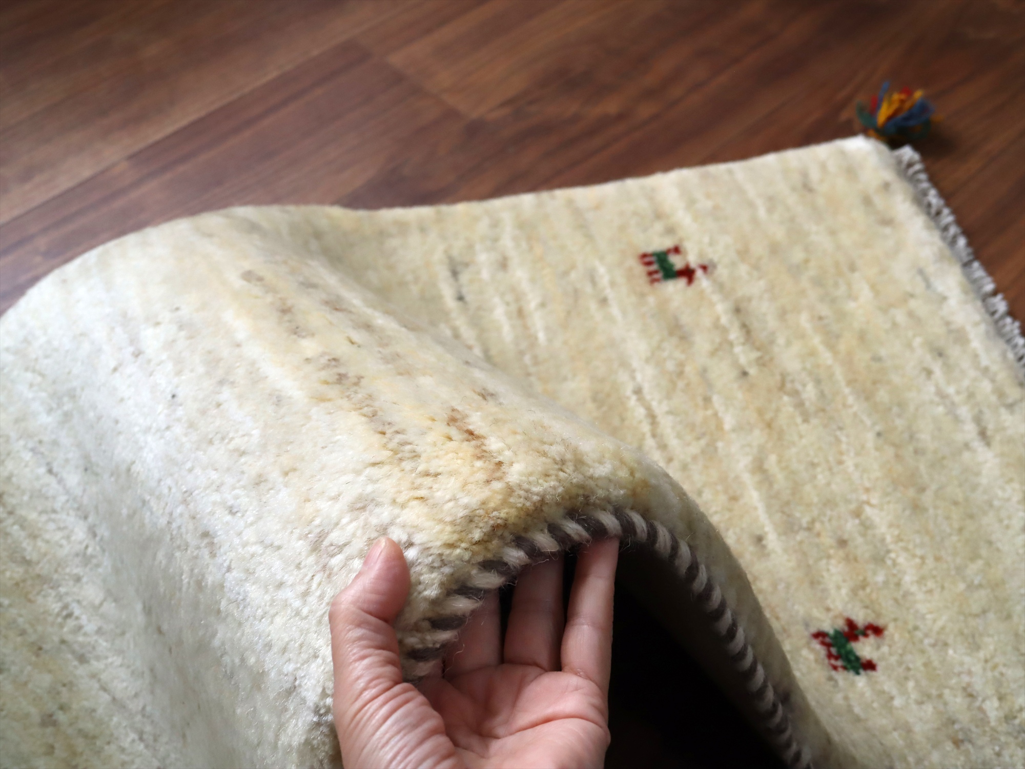 - ギャッベ イラン 手織り 細長ランナー 150x50cm ナチュラルアイボリー 羊毛 シンプル 無地