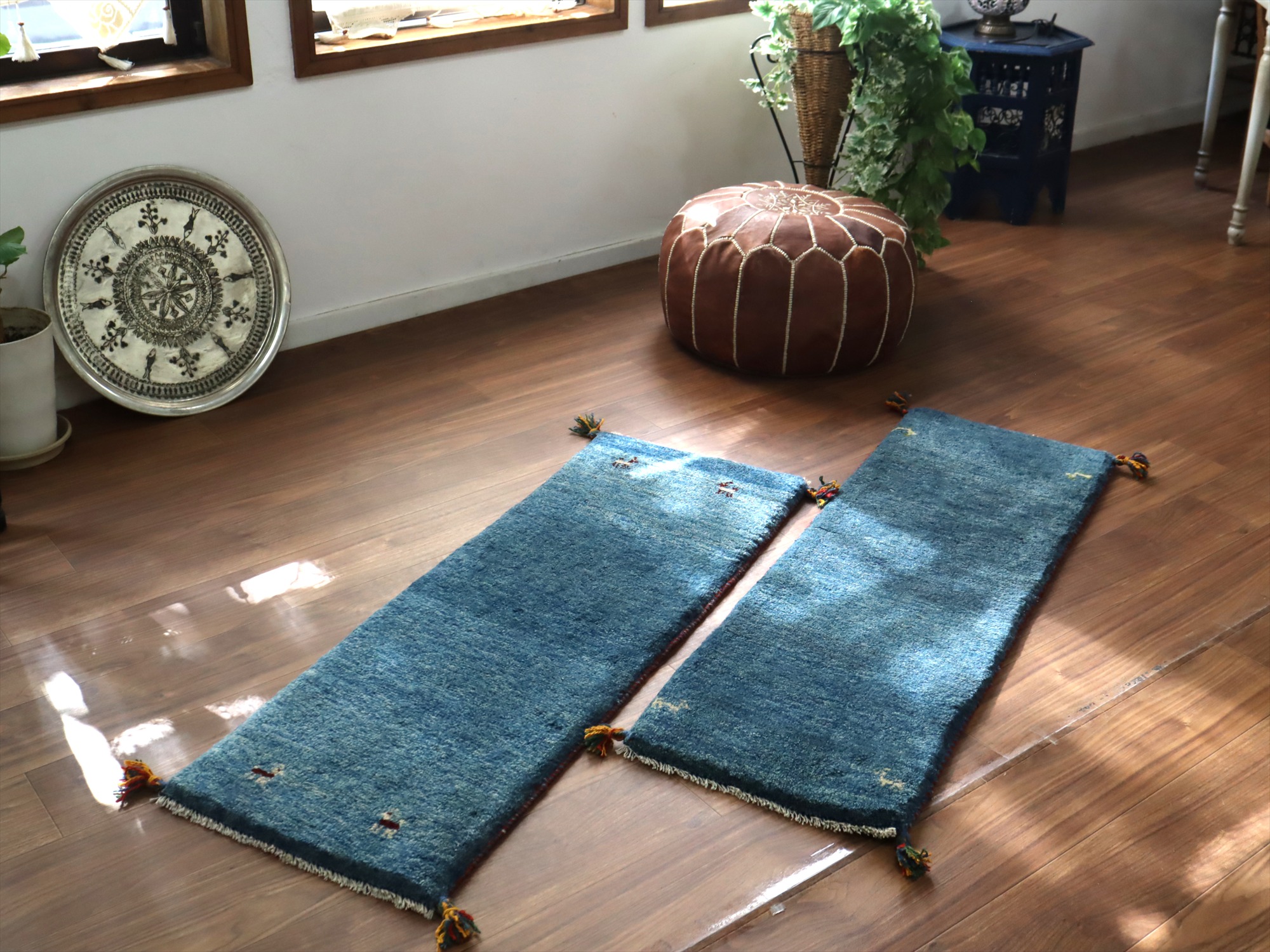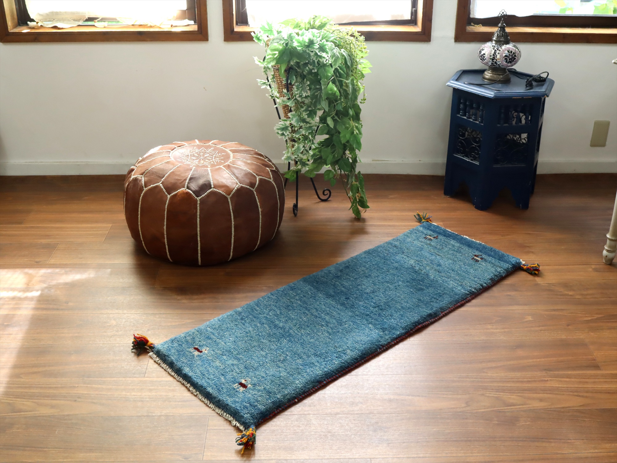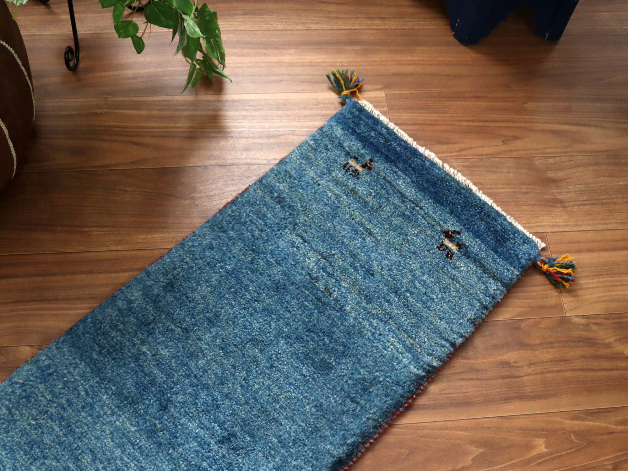 Key:ギャッベ, ギャベ, 細長, ランナー, 廊下, ベッドサイド, キッチン, 廊下, イラン, シラーズ, ペルシャ, バザールギャッベ, ポンポン, 手織り, 一点もの, 青, ブルー, ガラタバザール, 東京中野区