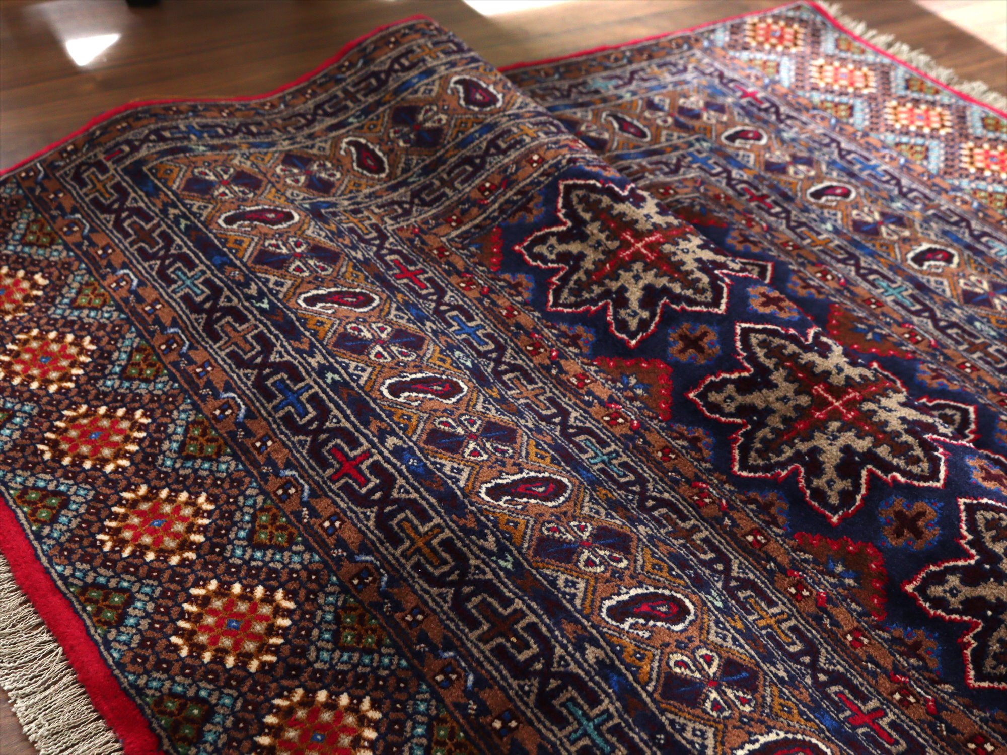 イランの手織り絨毯 マシュハド175×125cm 連なる幾何学模様