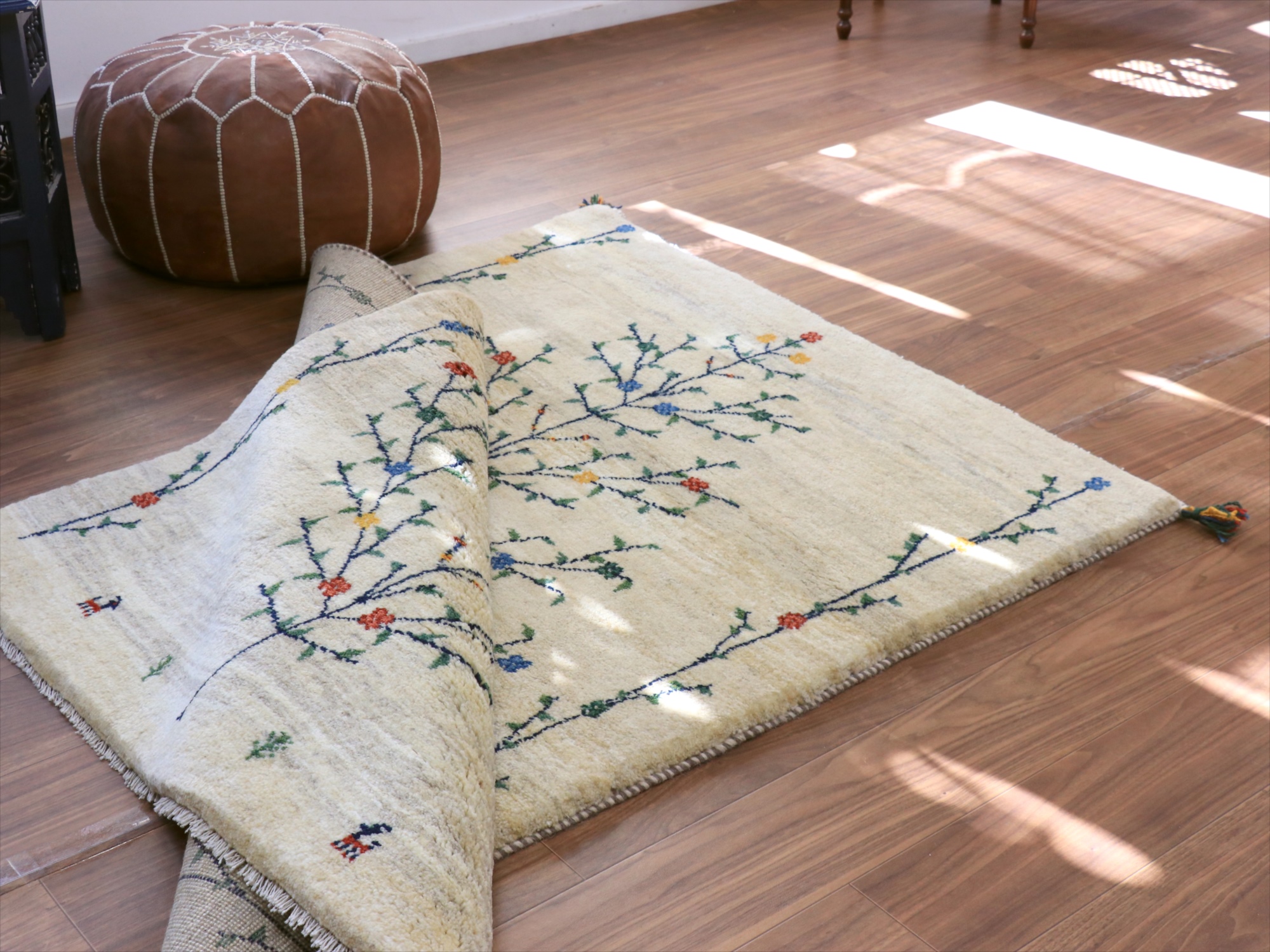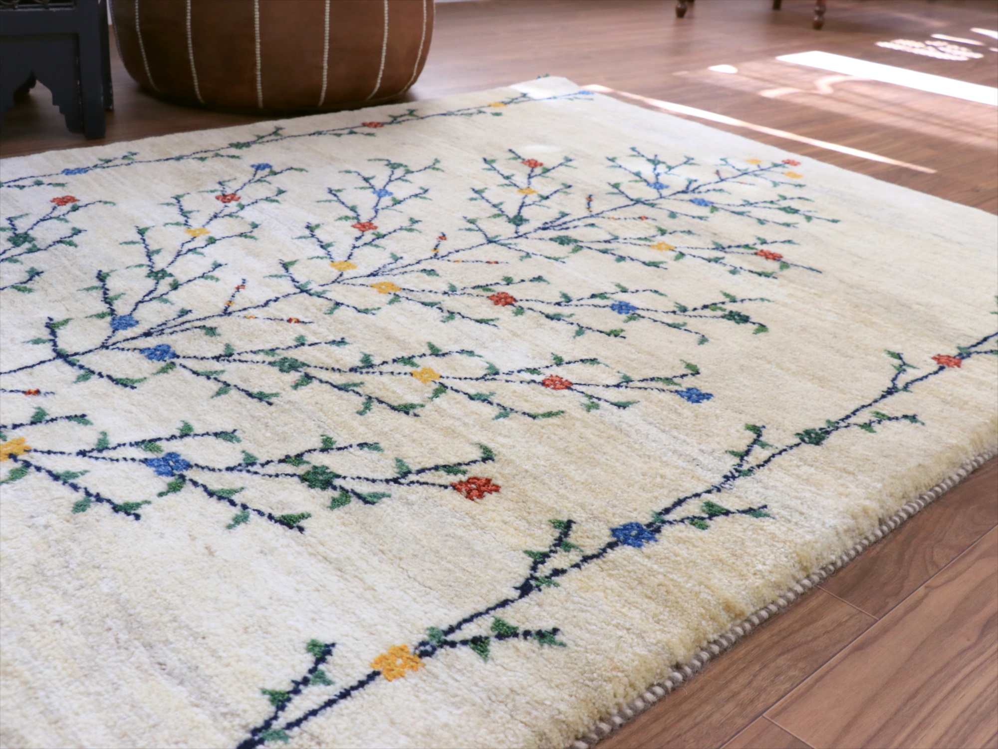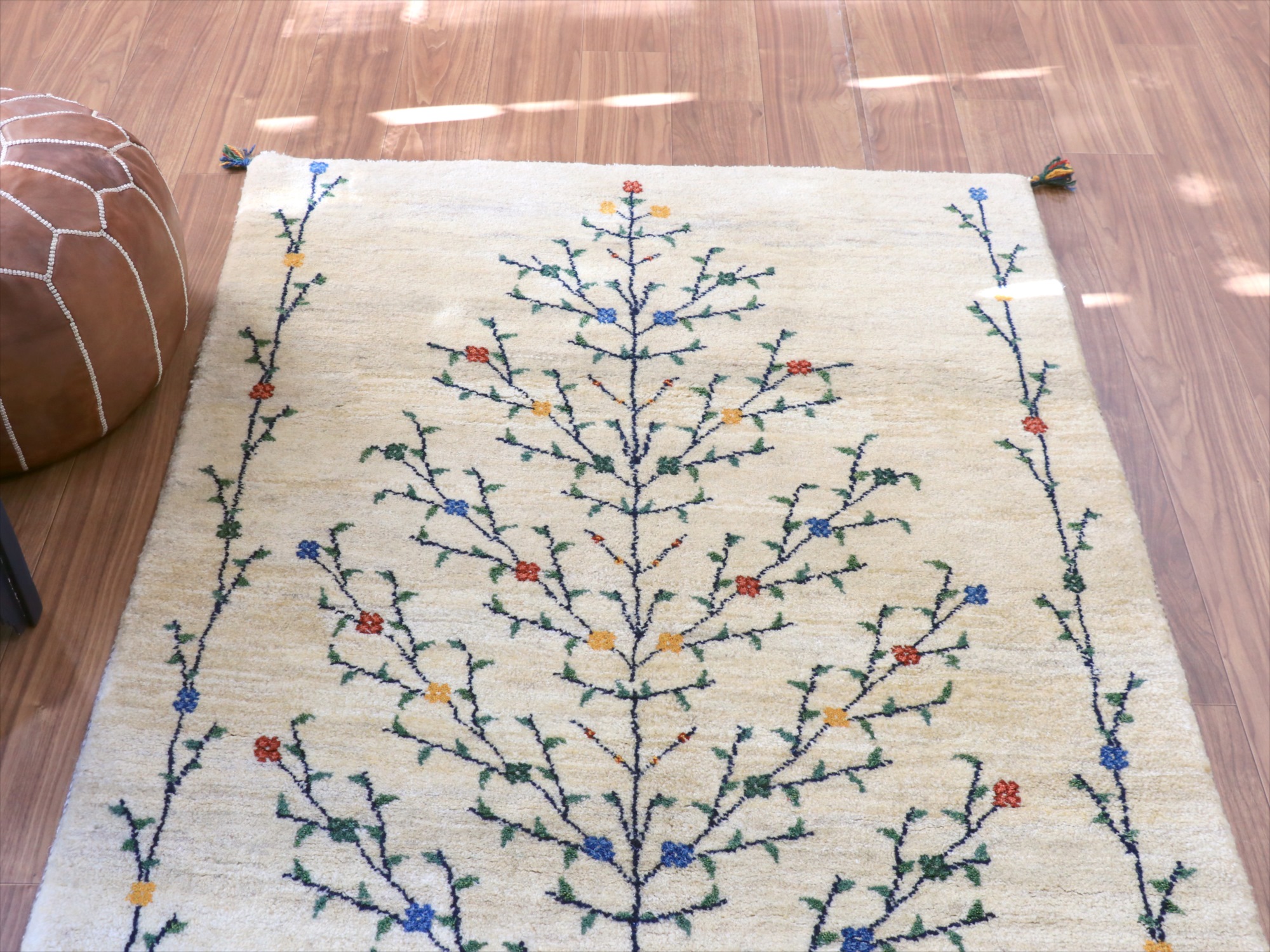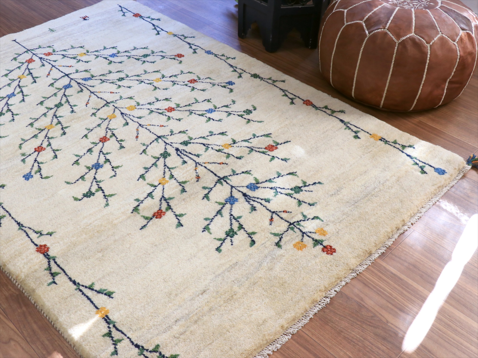 - ギャッベ ナチュラル 生命の木 174x120cm ナチュラルアイボリー イラン産 手織りラグ