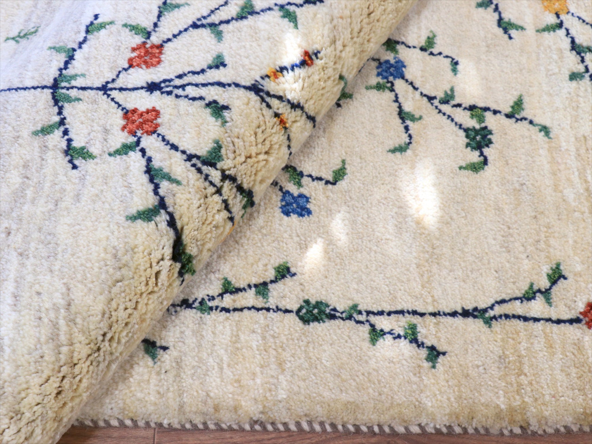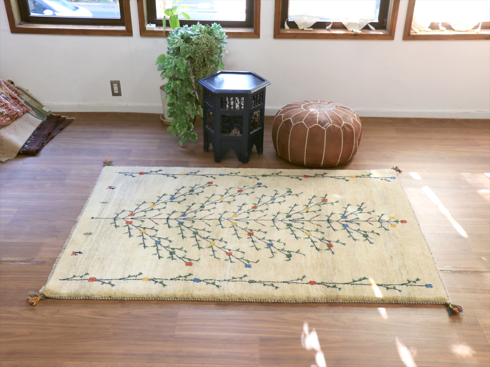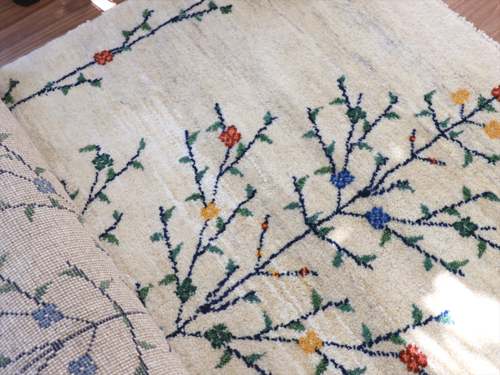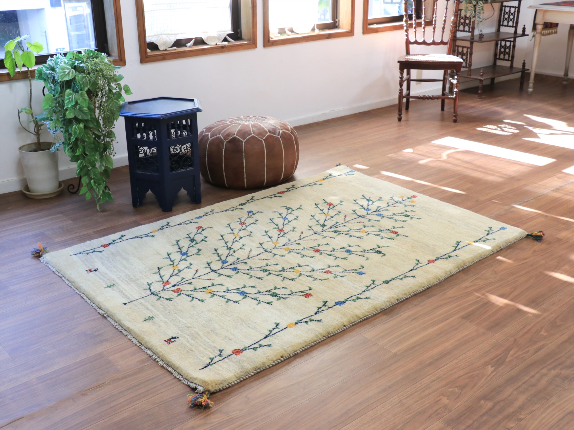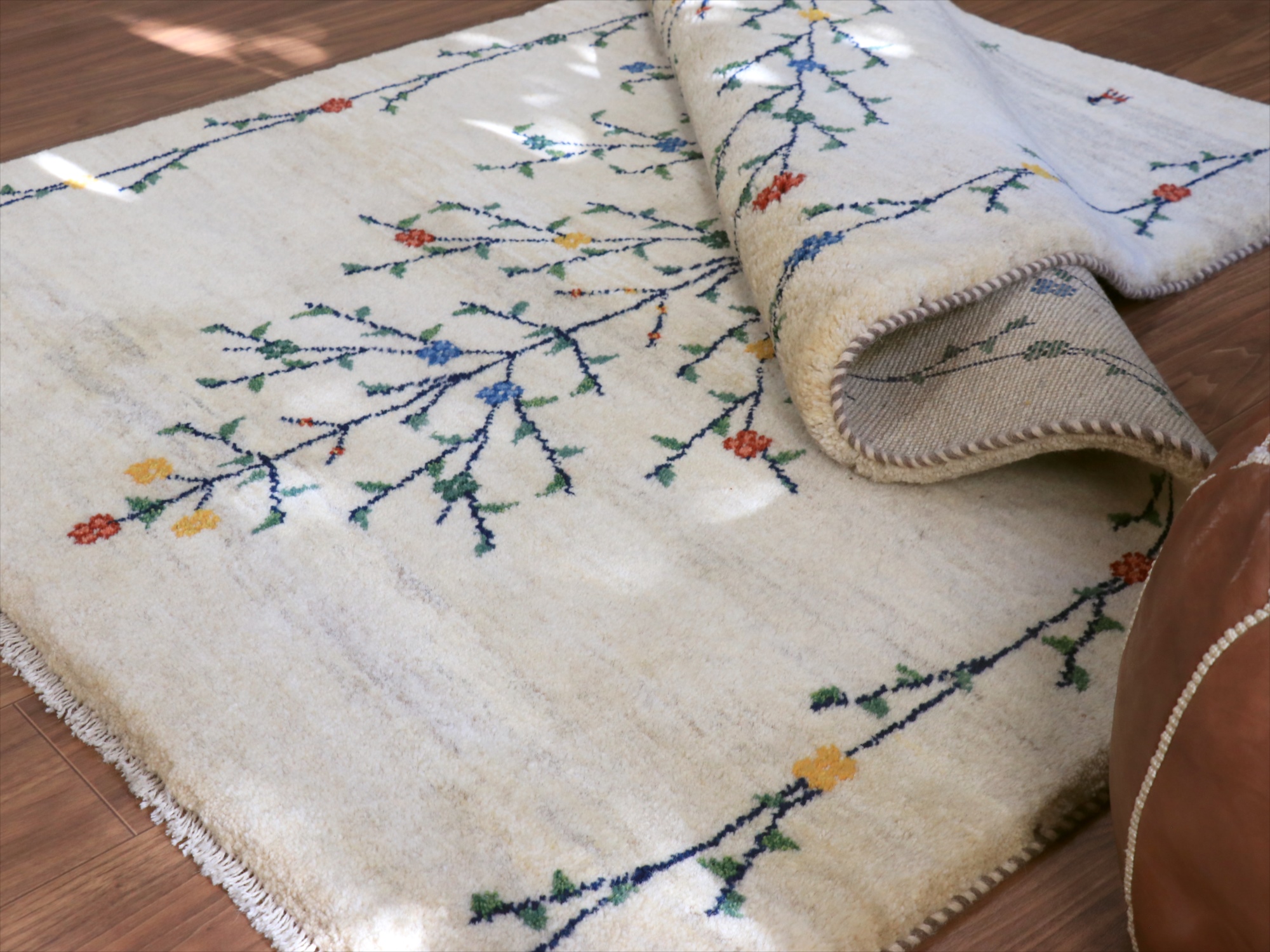 - ギャッベ ナチュラル 生命の木 174x120cm ナチュラルアイボリー イラン産 手織りラグ