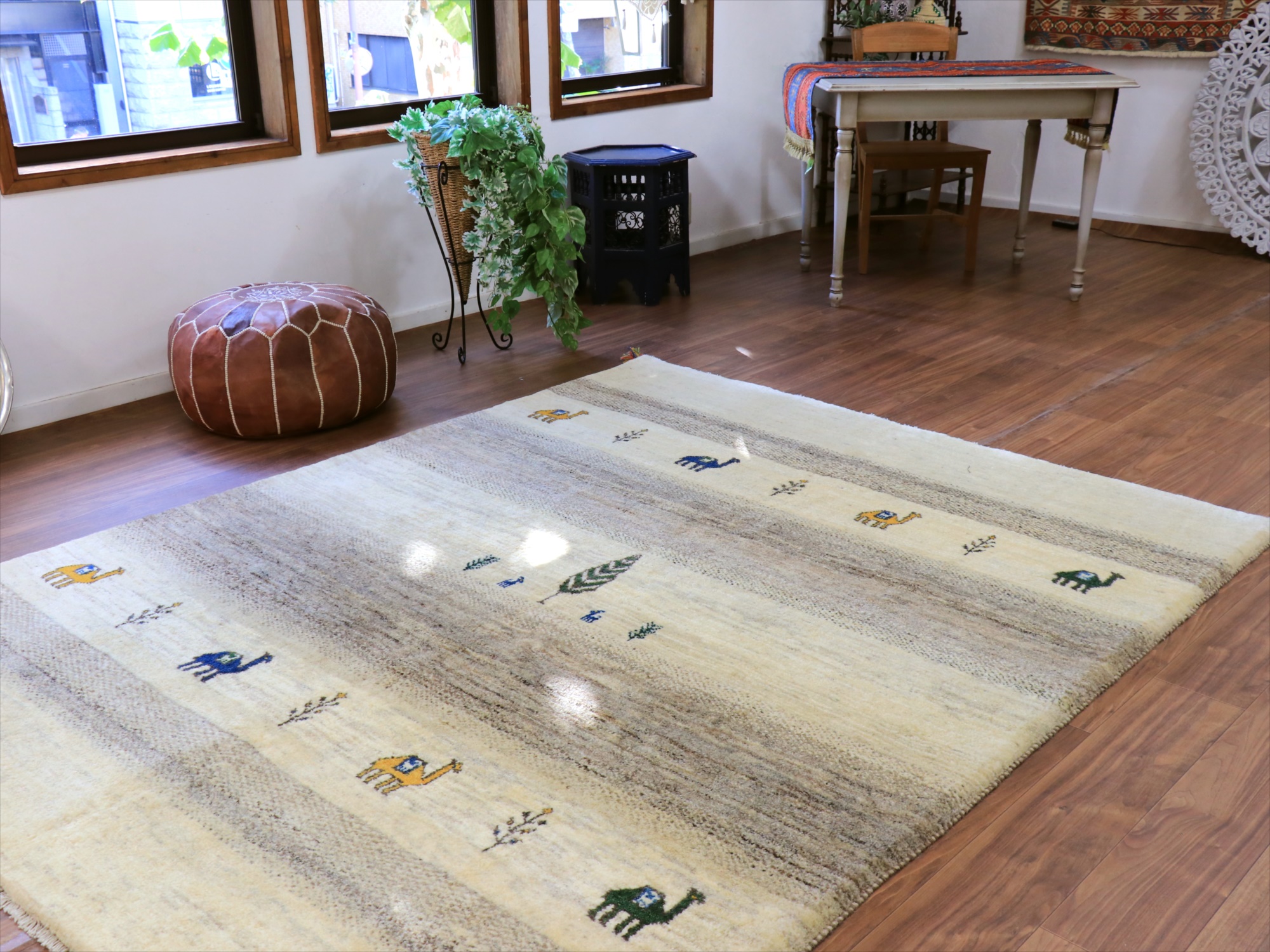 Key:ギャベ, ギャッベ, ラグ, イラン製, 手織り絨毯, 部族絨毯, カシュカイ族, ウール100%, ベージュ, ホワイト, 白, シンプル, リビング, ダイニング, ソファ前, 厚手, 東京,中野区, ガラタバザール, Gabbeh, Tribal Rug, Hand knotted, wool, Shiraz, Fars, Quashkai