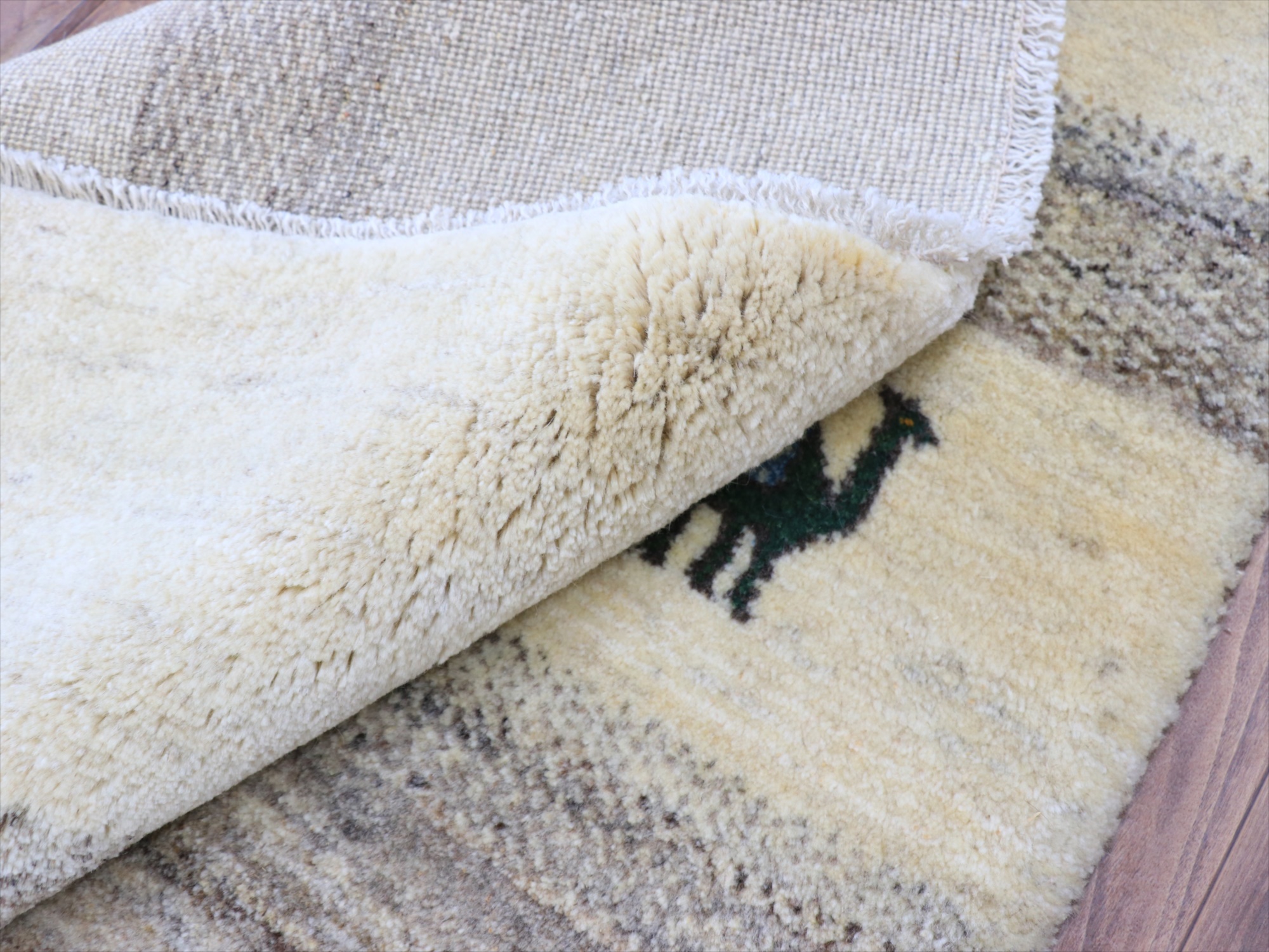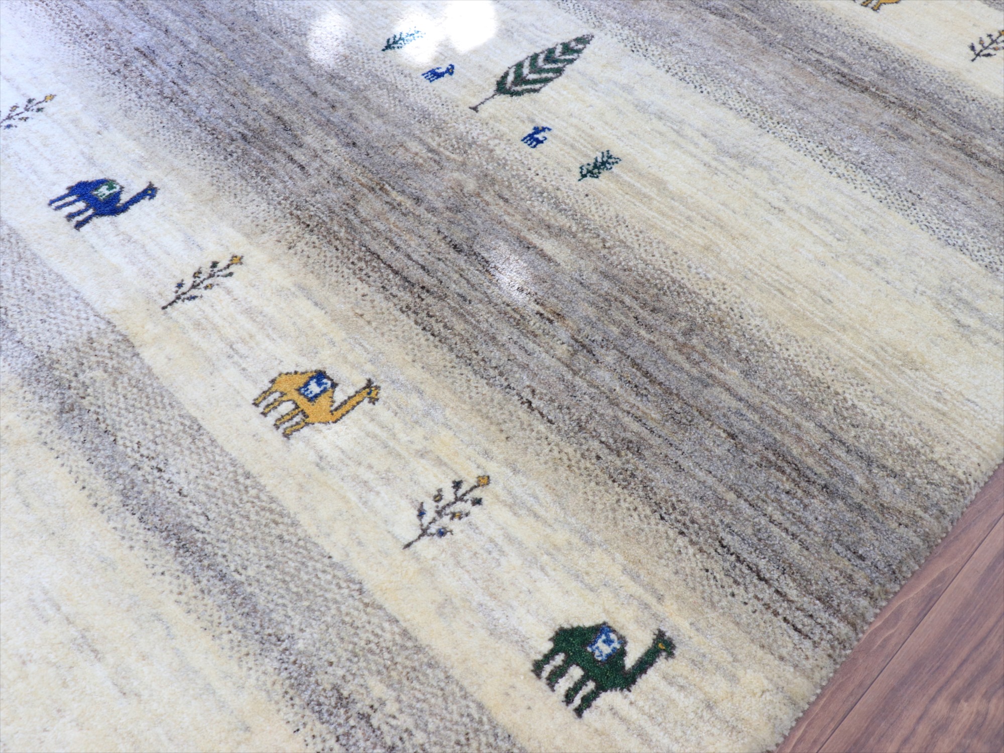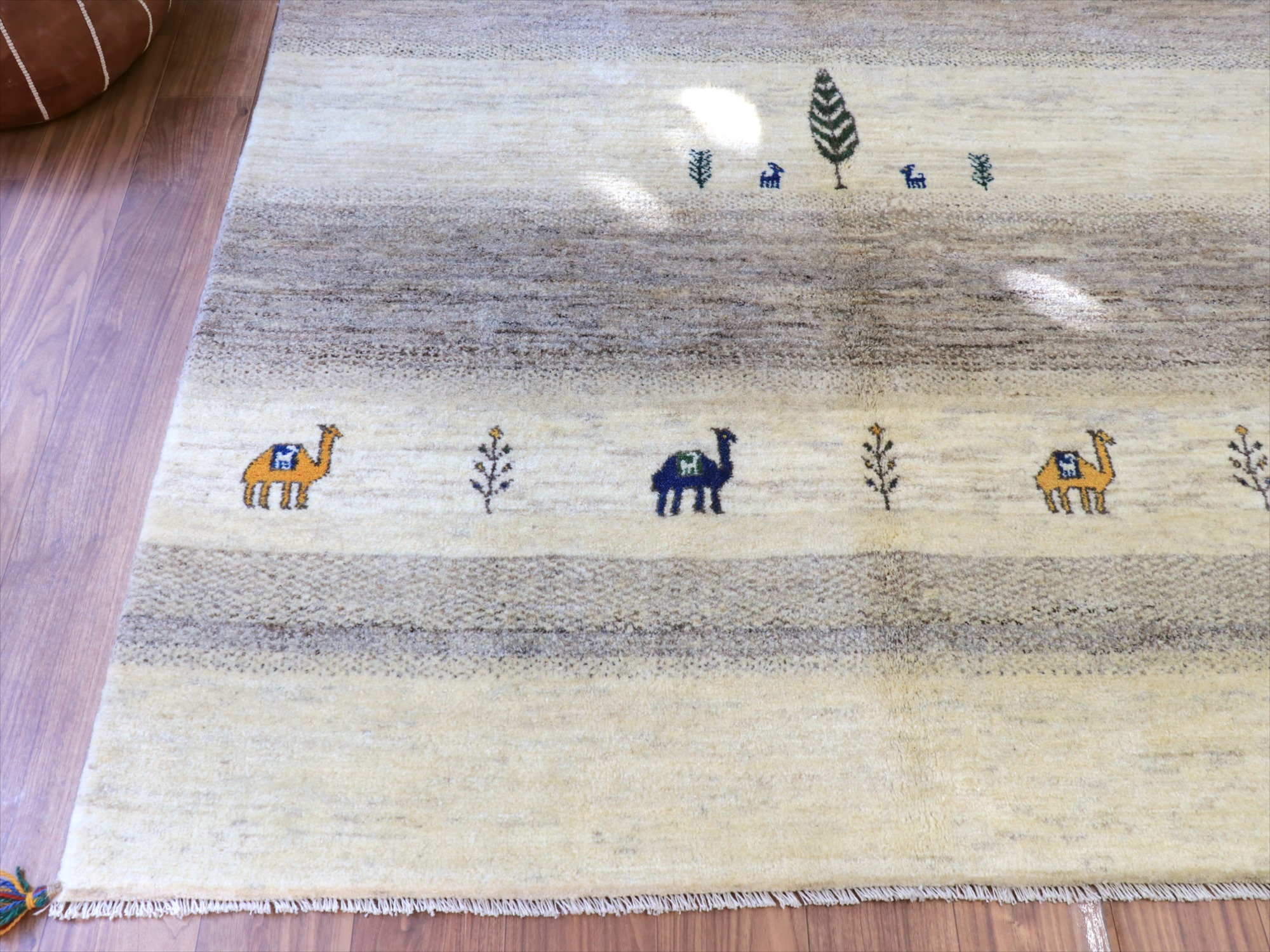 ギャッベ 手織りラグ イラン産 233x180cm 天然羊毛のアイボリー&グレー ラクダ