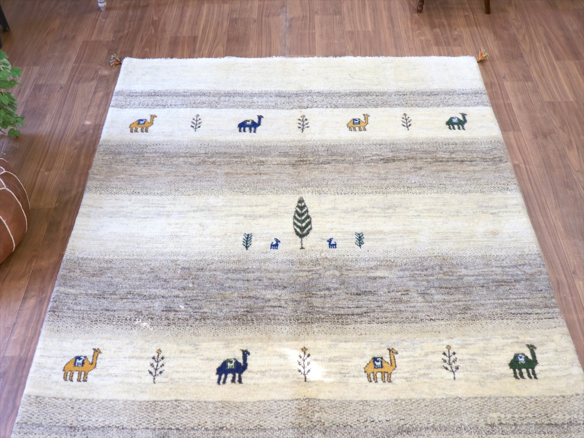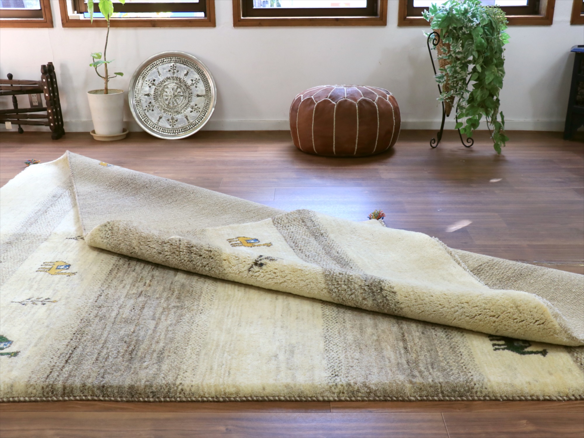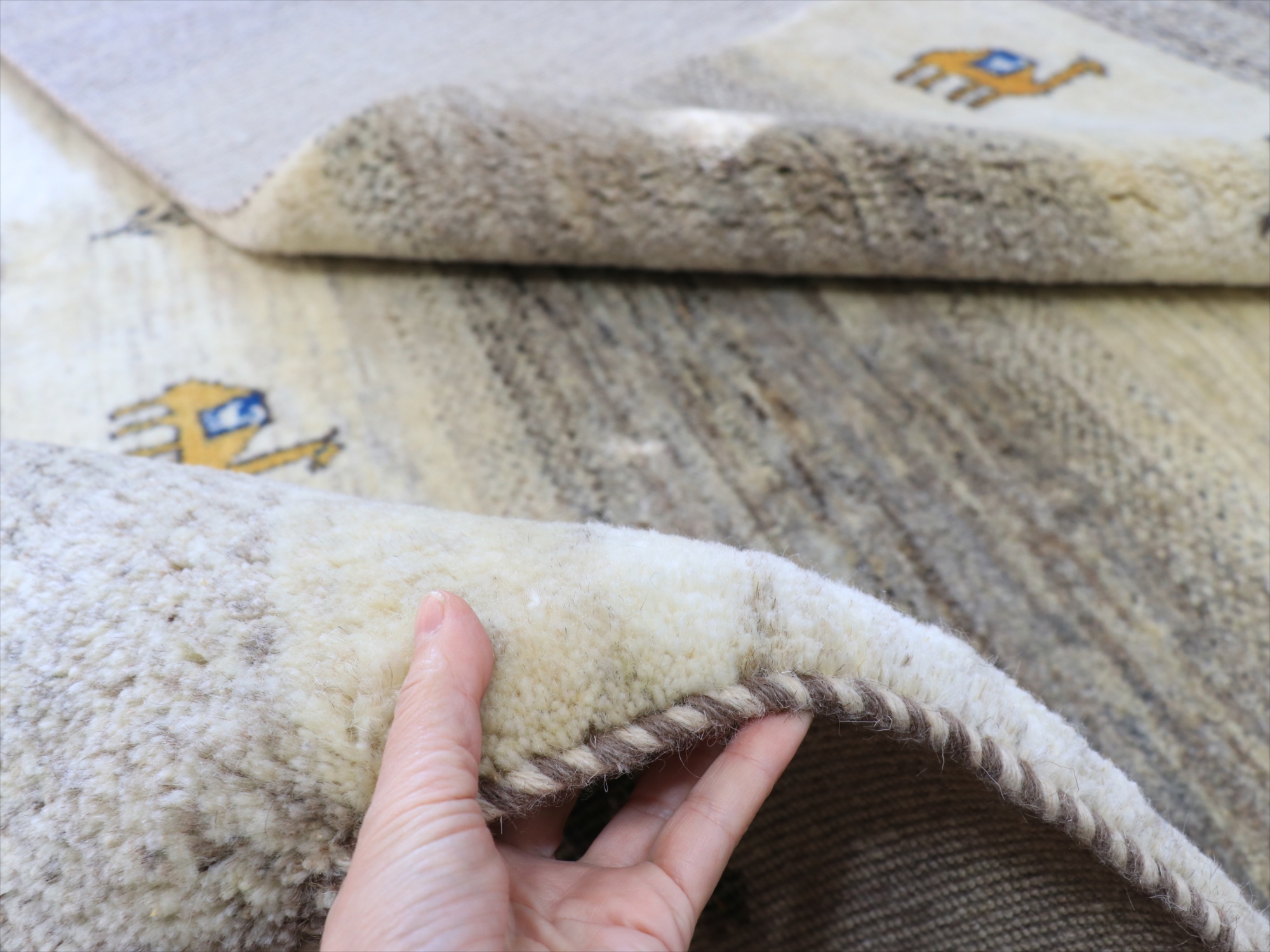 ギャッベ 手織りラグ イラン産 233x180cm 天然羊毛のアイボリー&グレー ラクダ