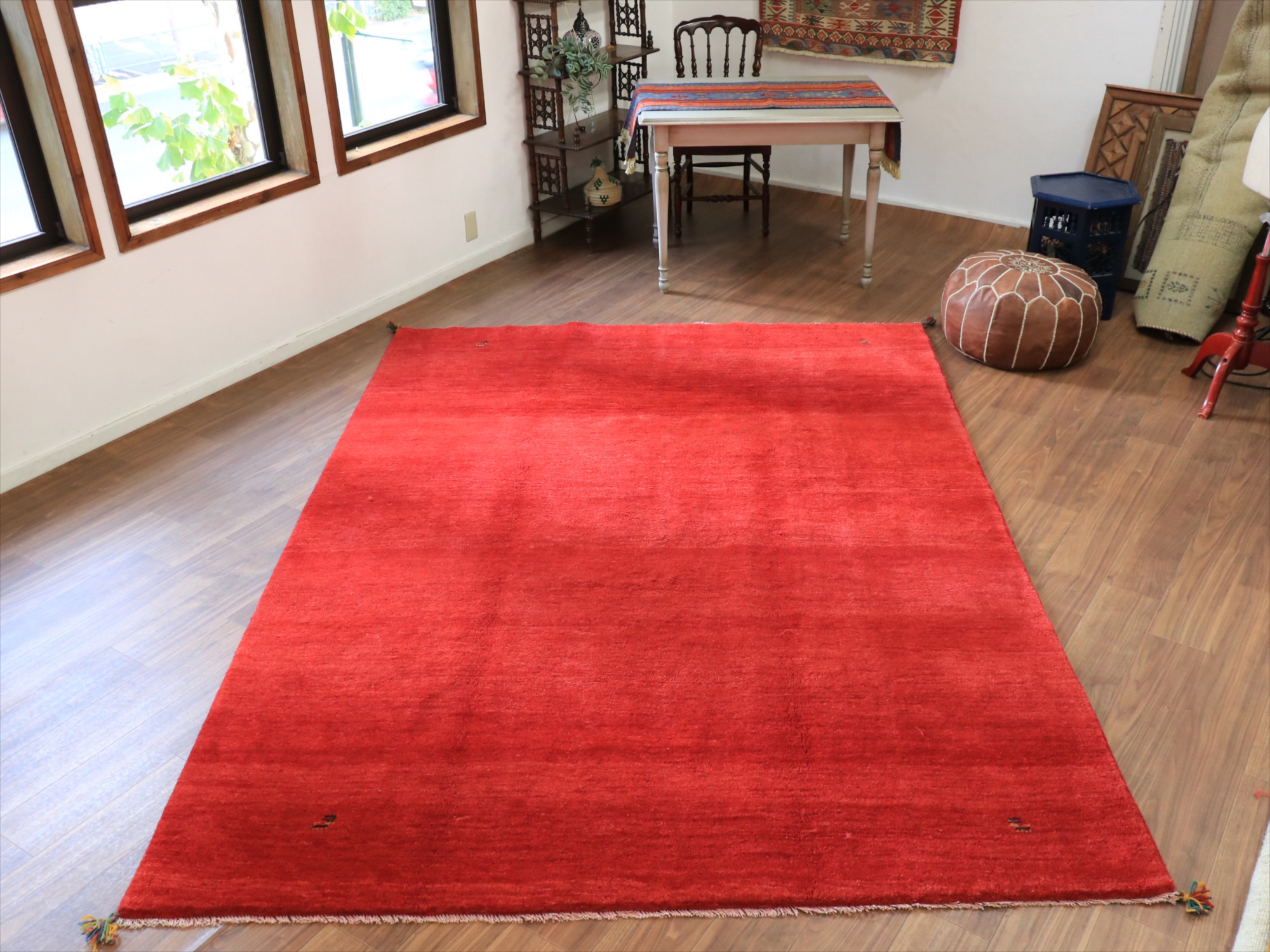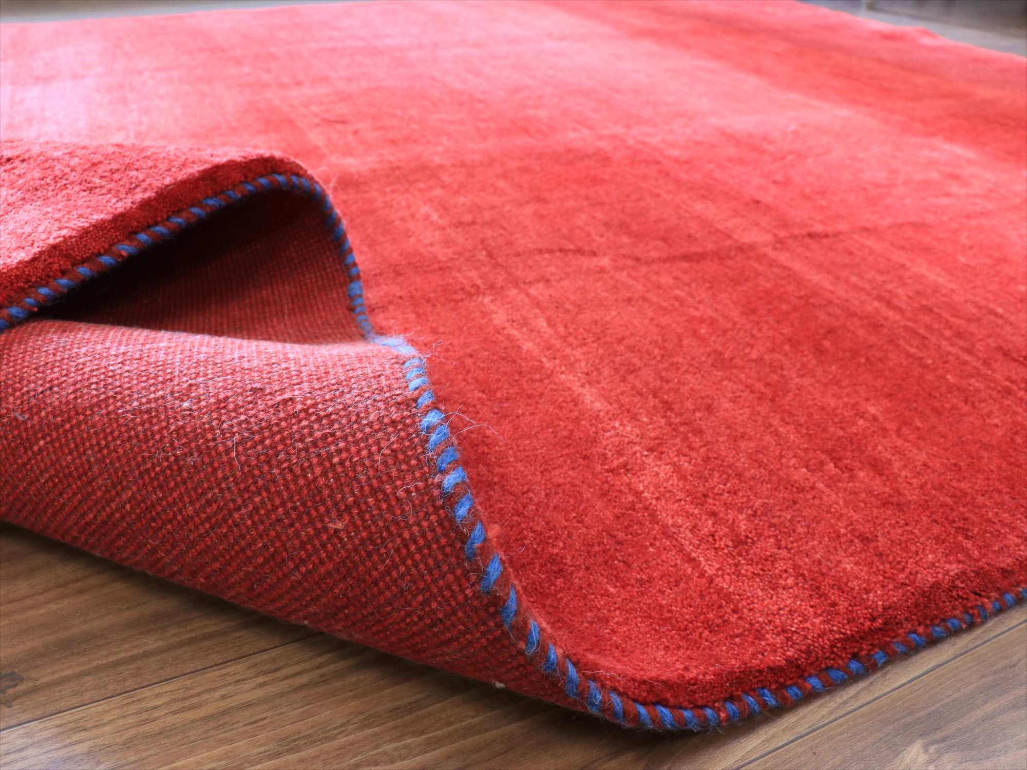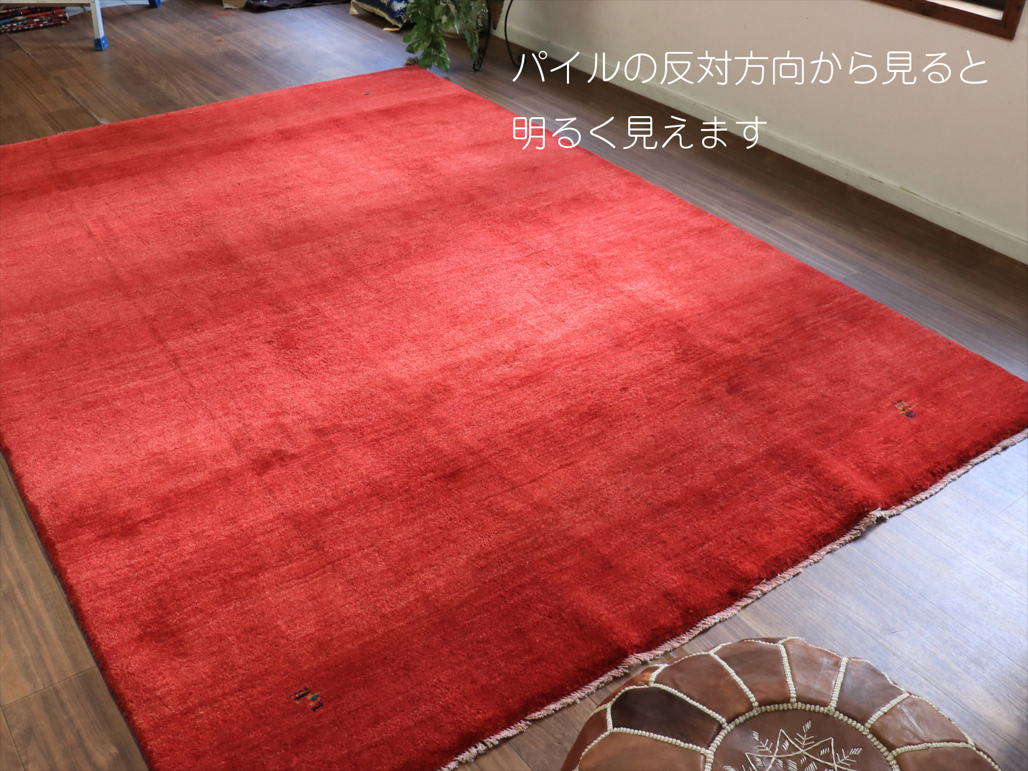 - ギャッベ イラン産手織りラグ 283x200cm レッド シンプル 無地