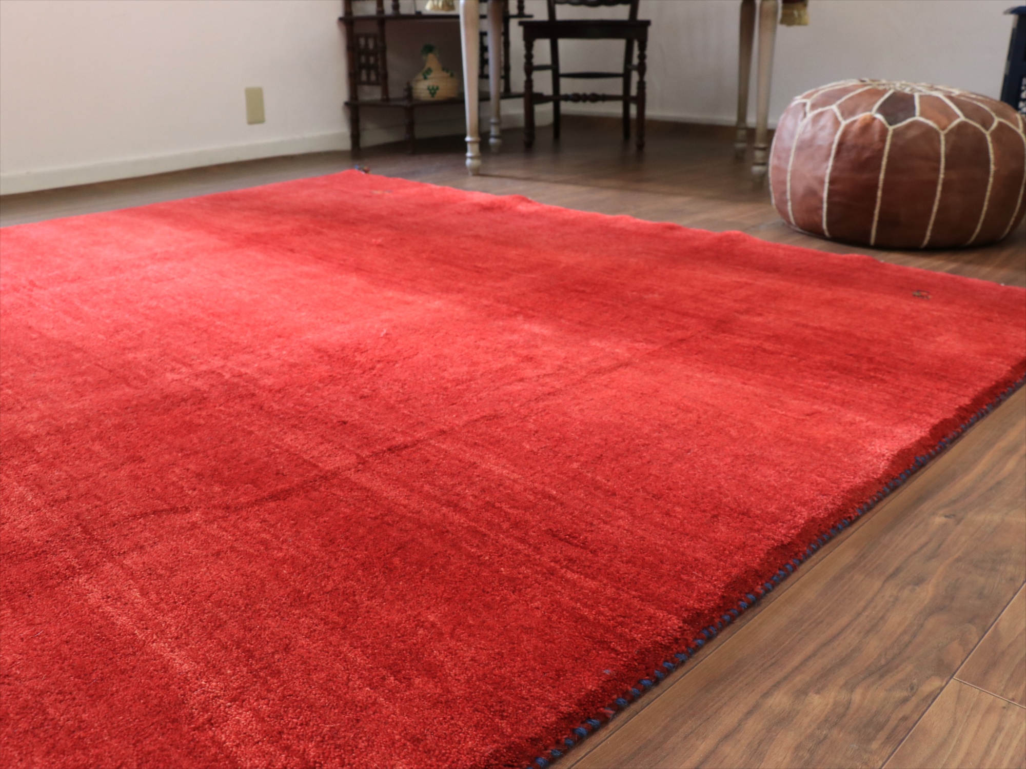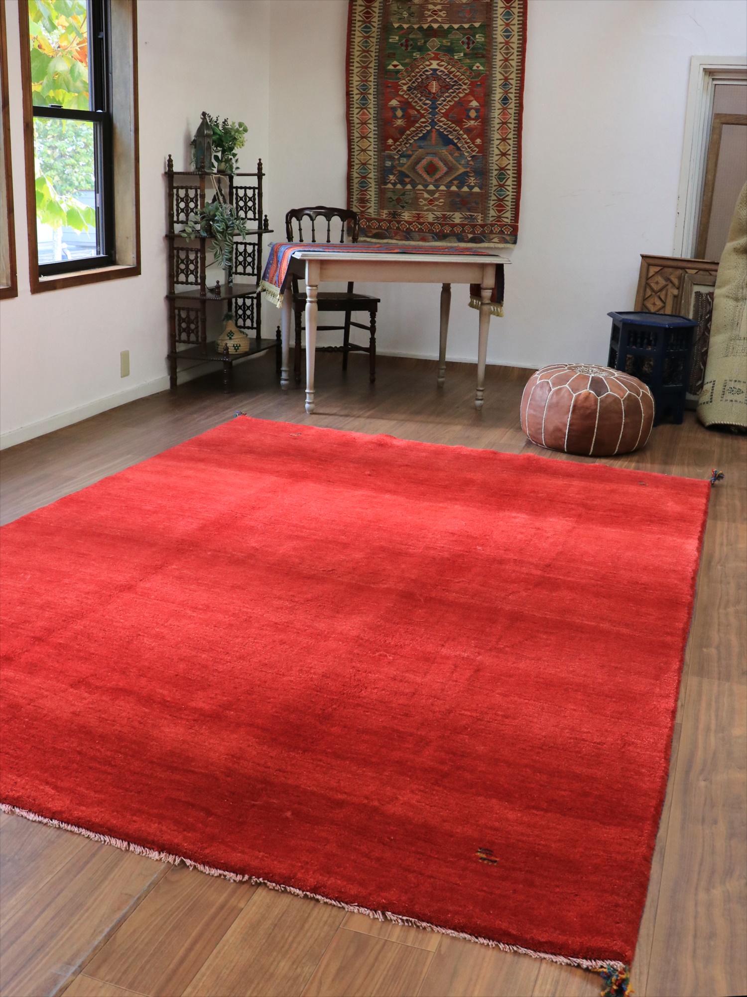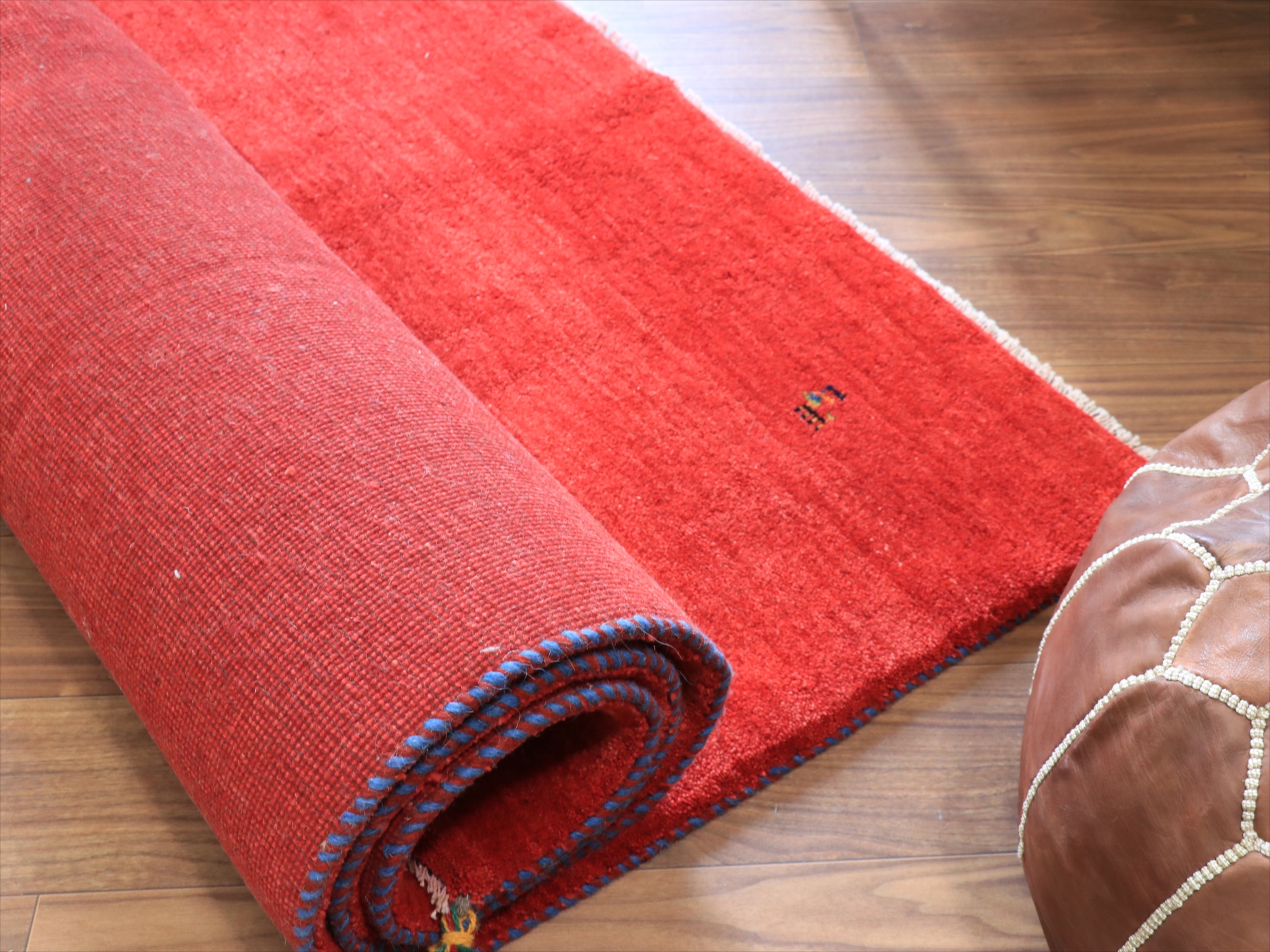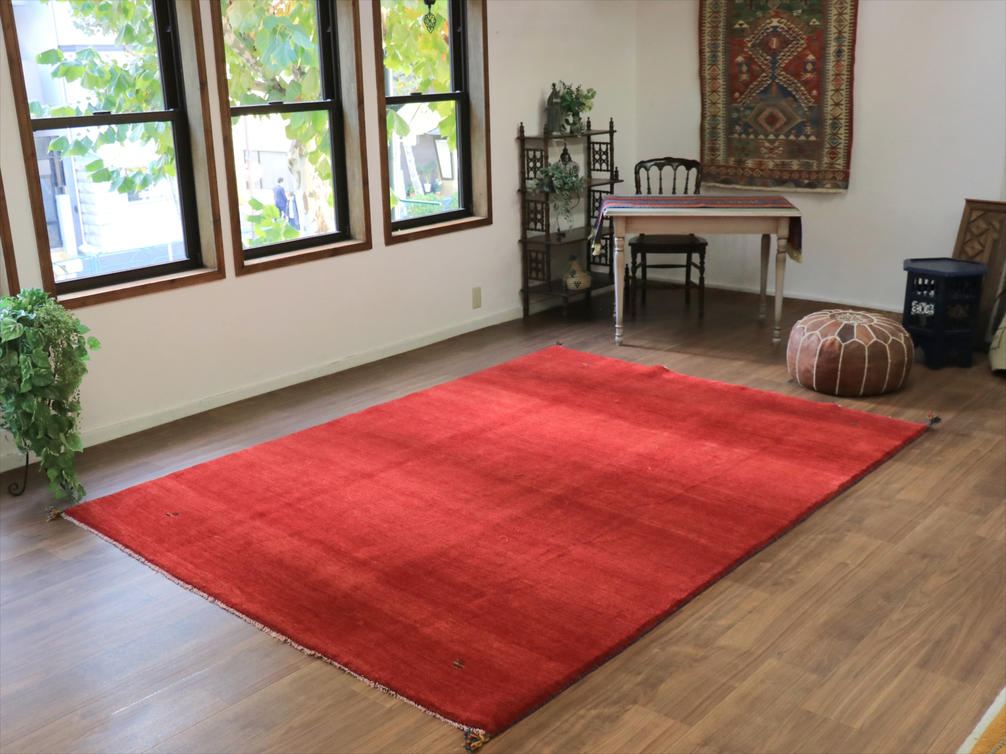 - ギャッベ イラン産手織りラグ 283x200cm レッド シンプル 無地