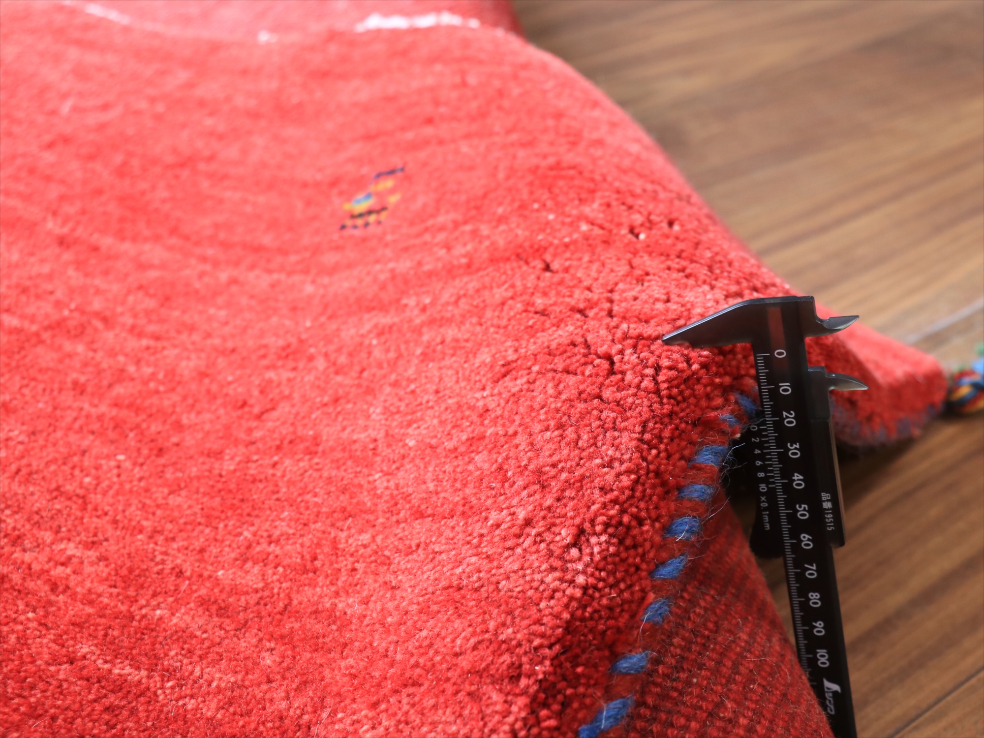 | 毛足(パイル)が長く、ふかふかとしたボリュームのある織りのギャッベです。ベースを含めたラグ全体の厚みは2.0-2.2cm程度。 手で紡いだ毛糸を、天然の染料で染め上げ、丁寧に織り込まれた伝統的なギャッベです。赤の色は、多年草の西洋アカネ(西洋茜)の根を使って染められています。定着材(触媒)は染めの工房によって秘伝のレシピがあるそうです。 |