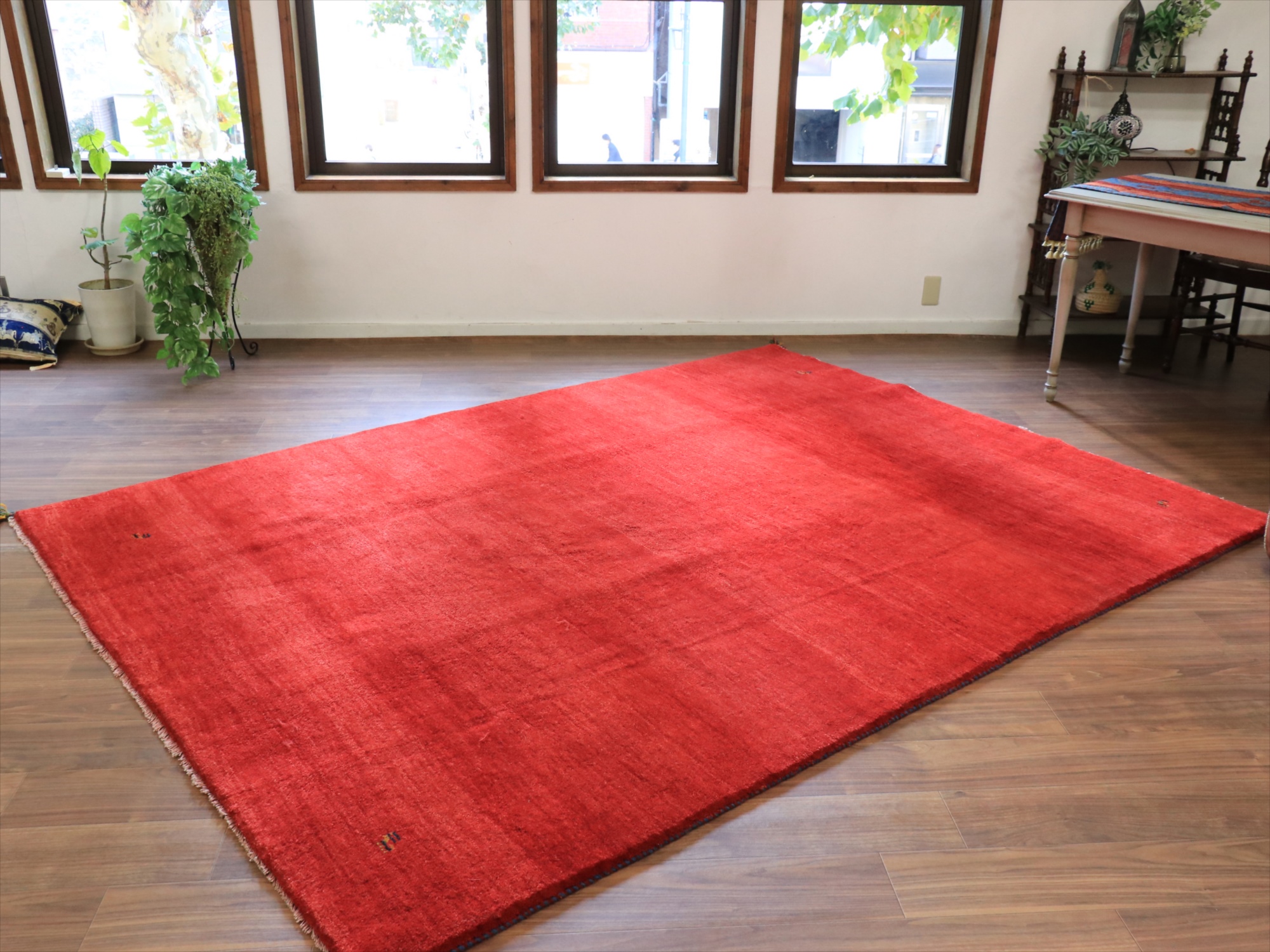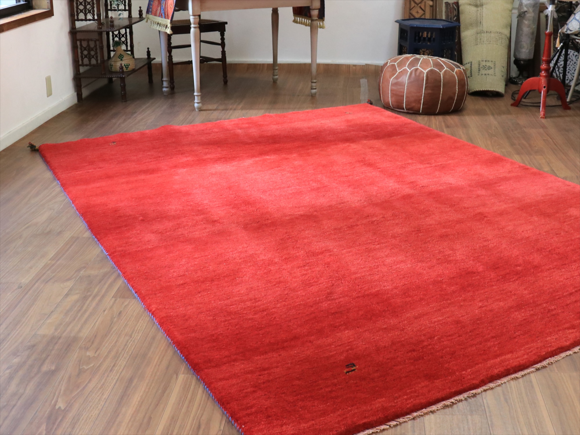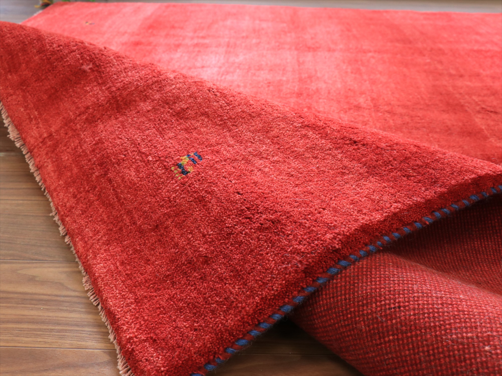ギャッベ イラン産手織りラグ 283x200cm レッド シンプル 無地