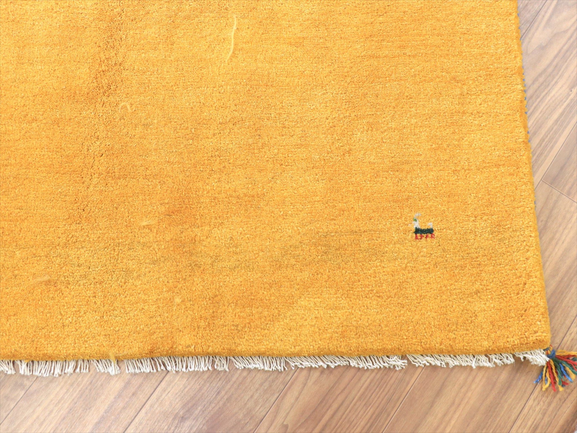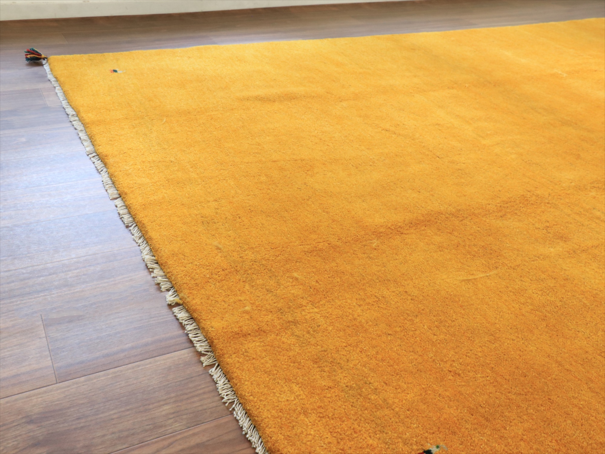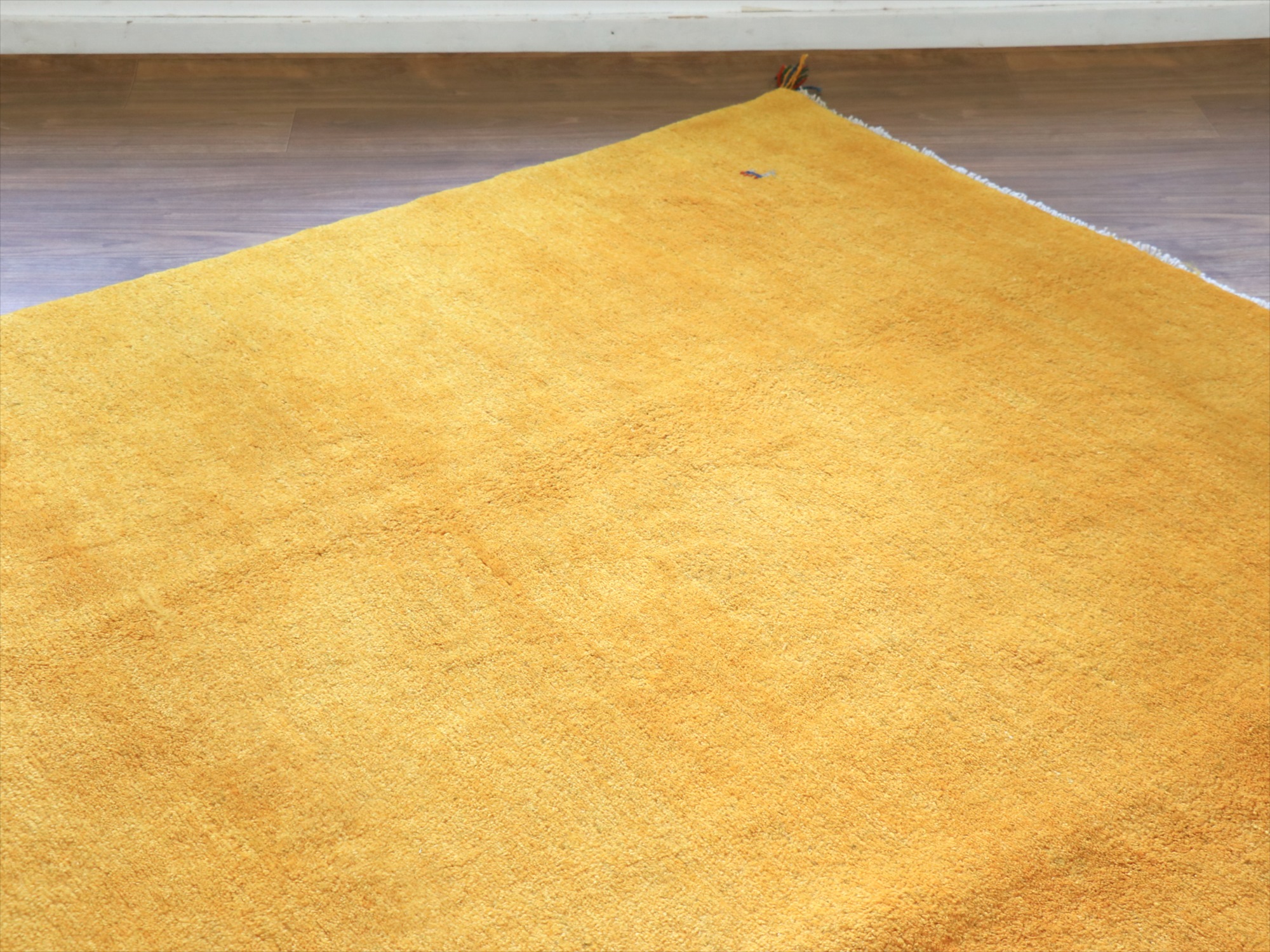 - ギャッベ イエロー イラン手織りラグ 290x198cm 無地 イラン産 カシュカイ族の手織りラグ