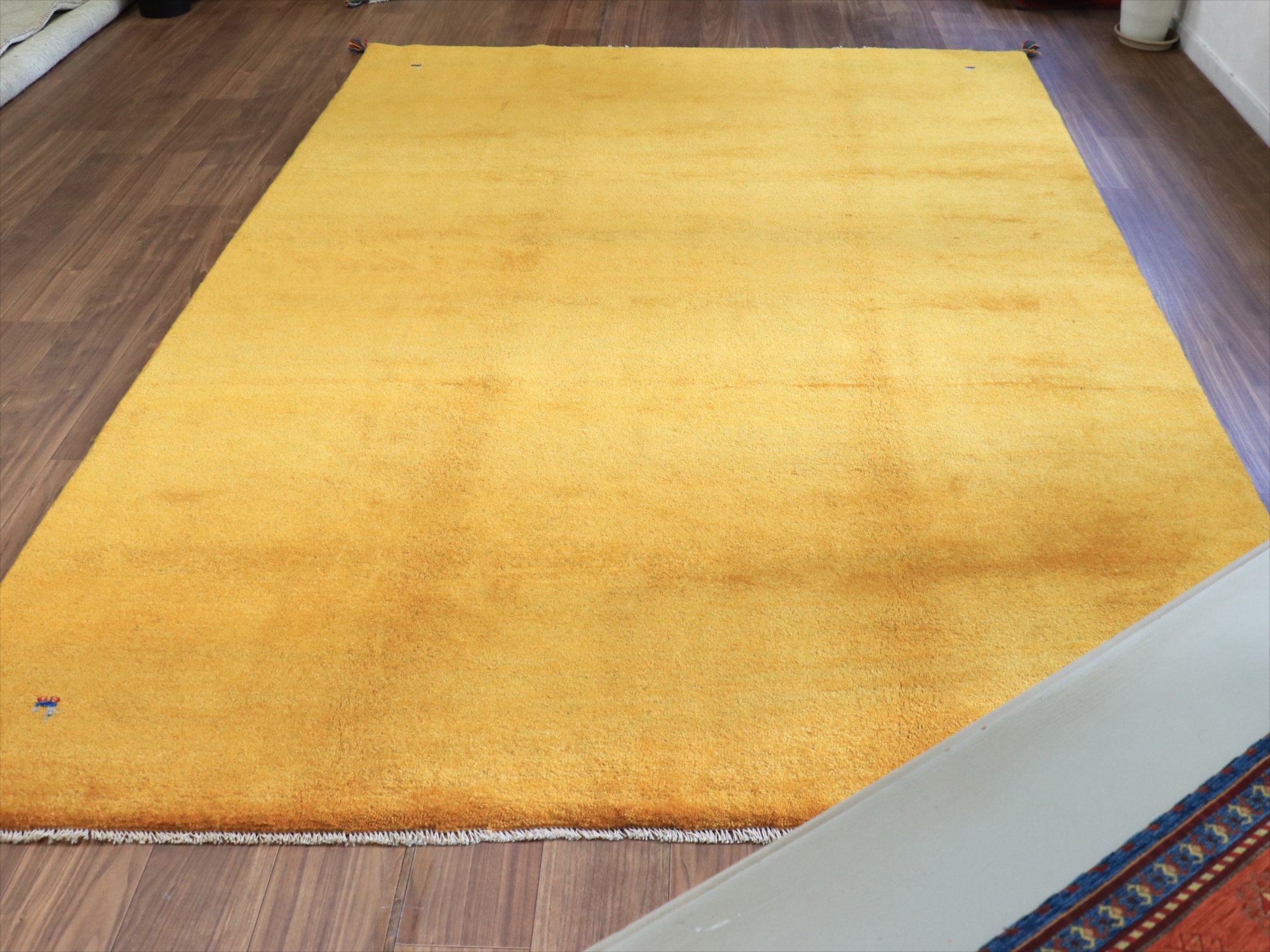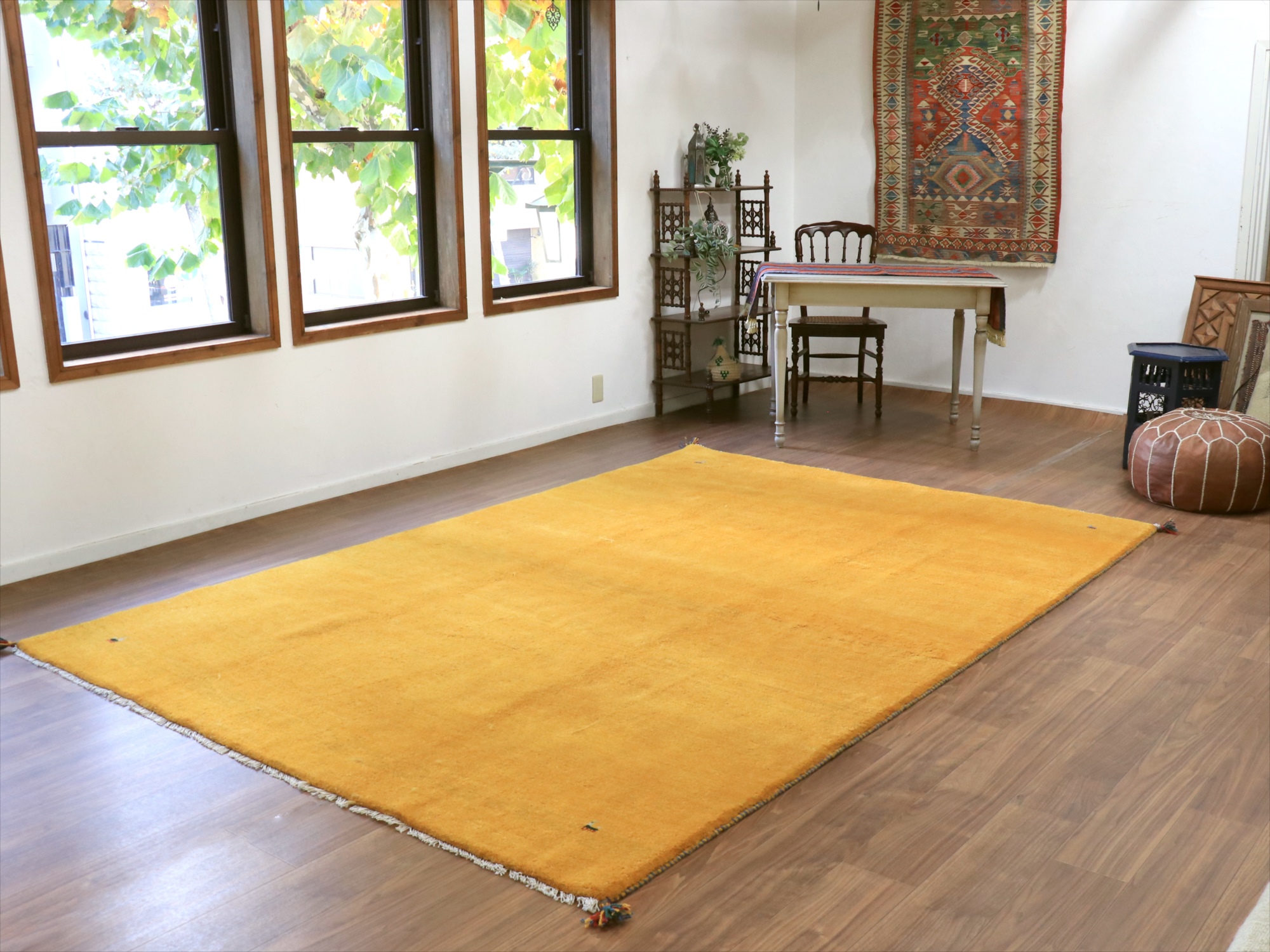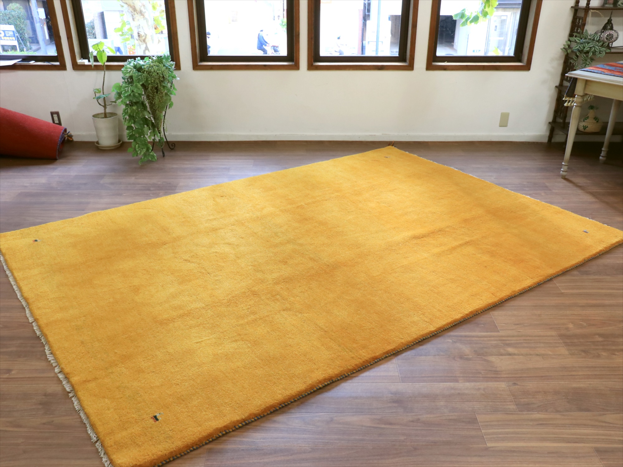 - ギャッベ イエロー イラン手織りラグ 290x198cm 無地 イラン産 カシュカイ族の手織りラグ