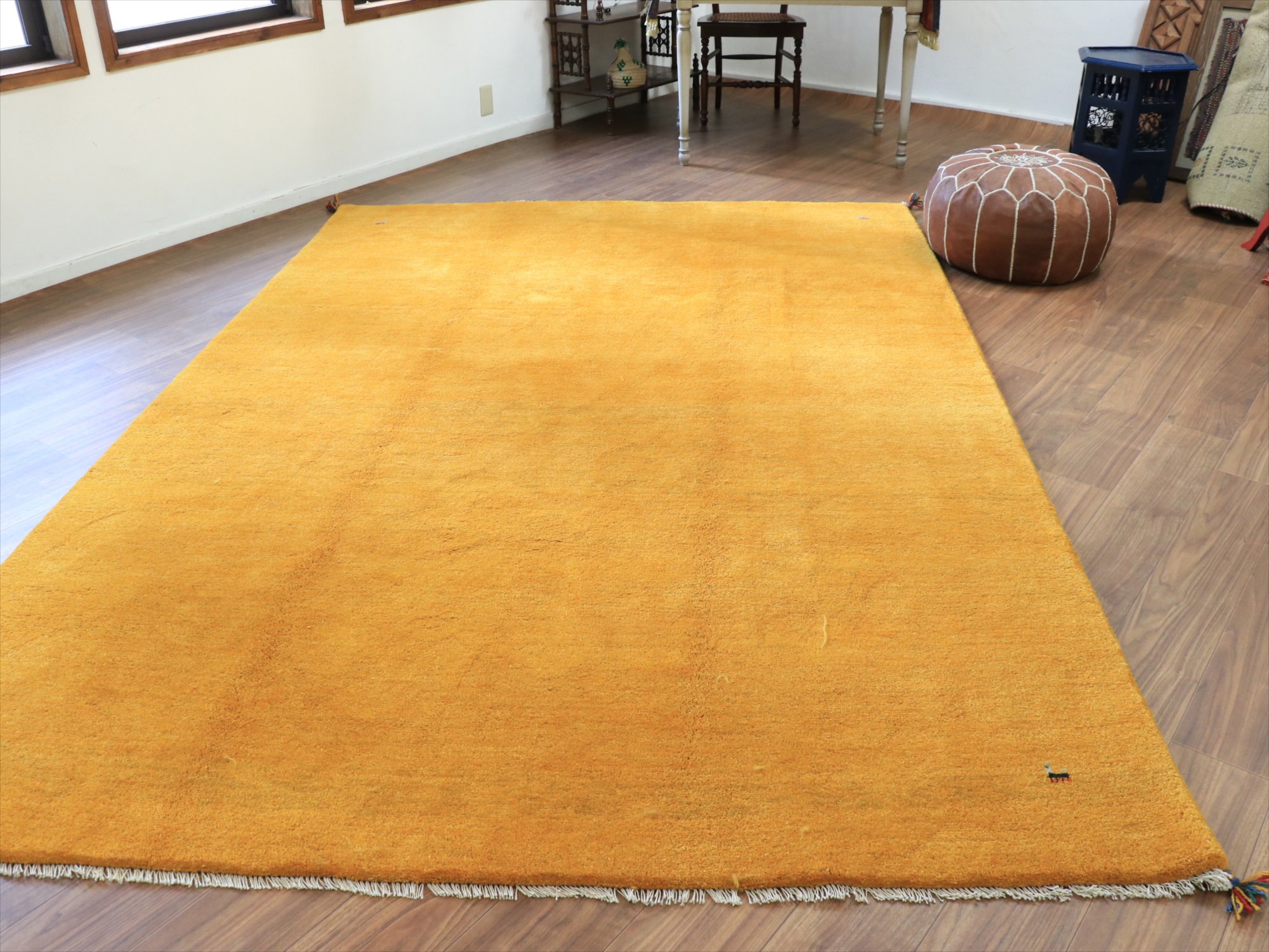 Key:ギャベ, ギャッベ, ラグ, イラン製, 手織り絨毯, 部族絨毯, カシュカイ族, ウール100%, オレンジ, イエロー, シンプル, リビング, ダイニング, ソファ前, 厚手, 東京,中野区, ガラタバザール, Gabbeh, Tribal Rug, Hand knotted, wool, Shiraz, Fars, Quashkai
