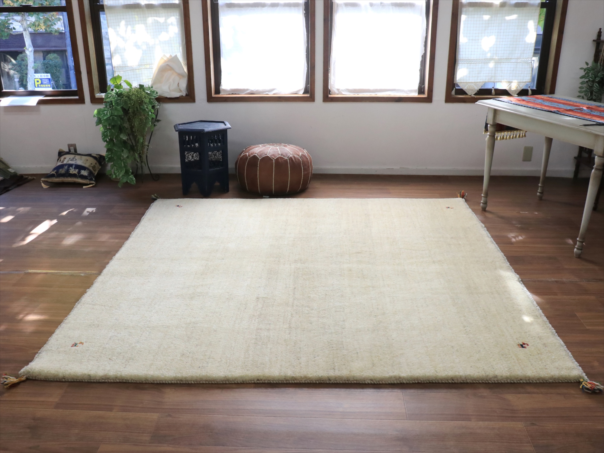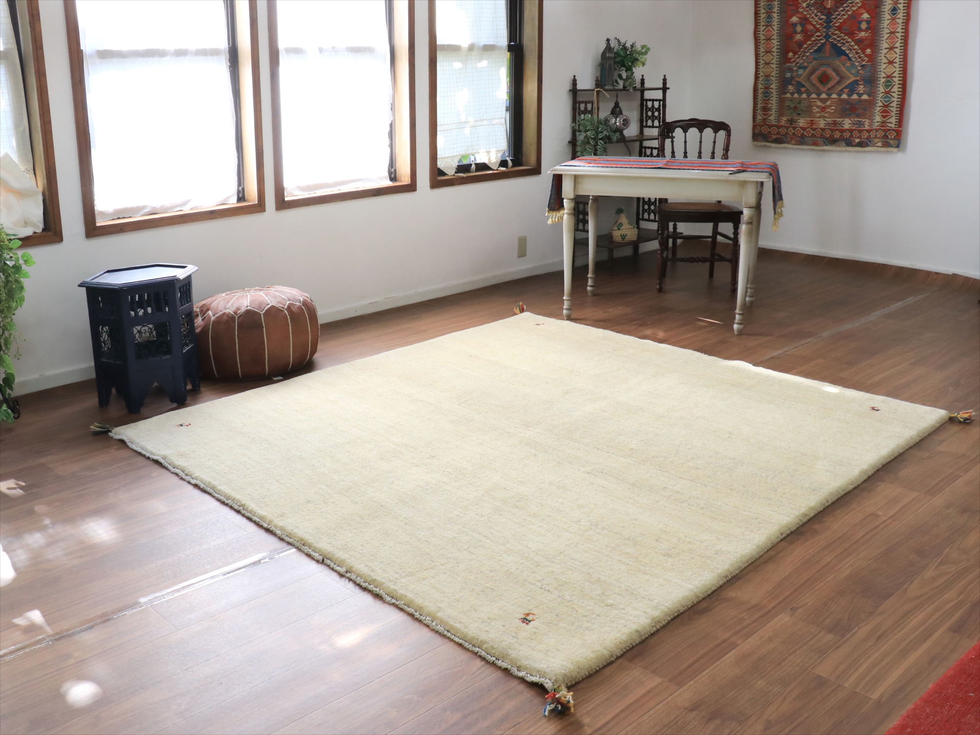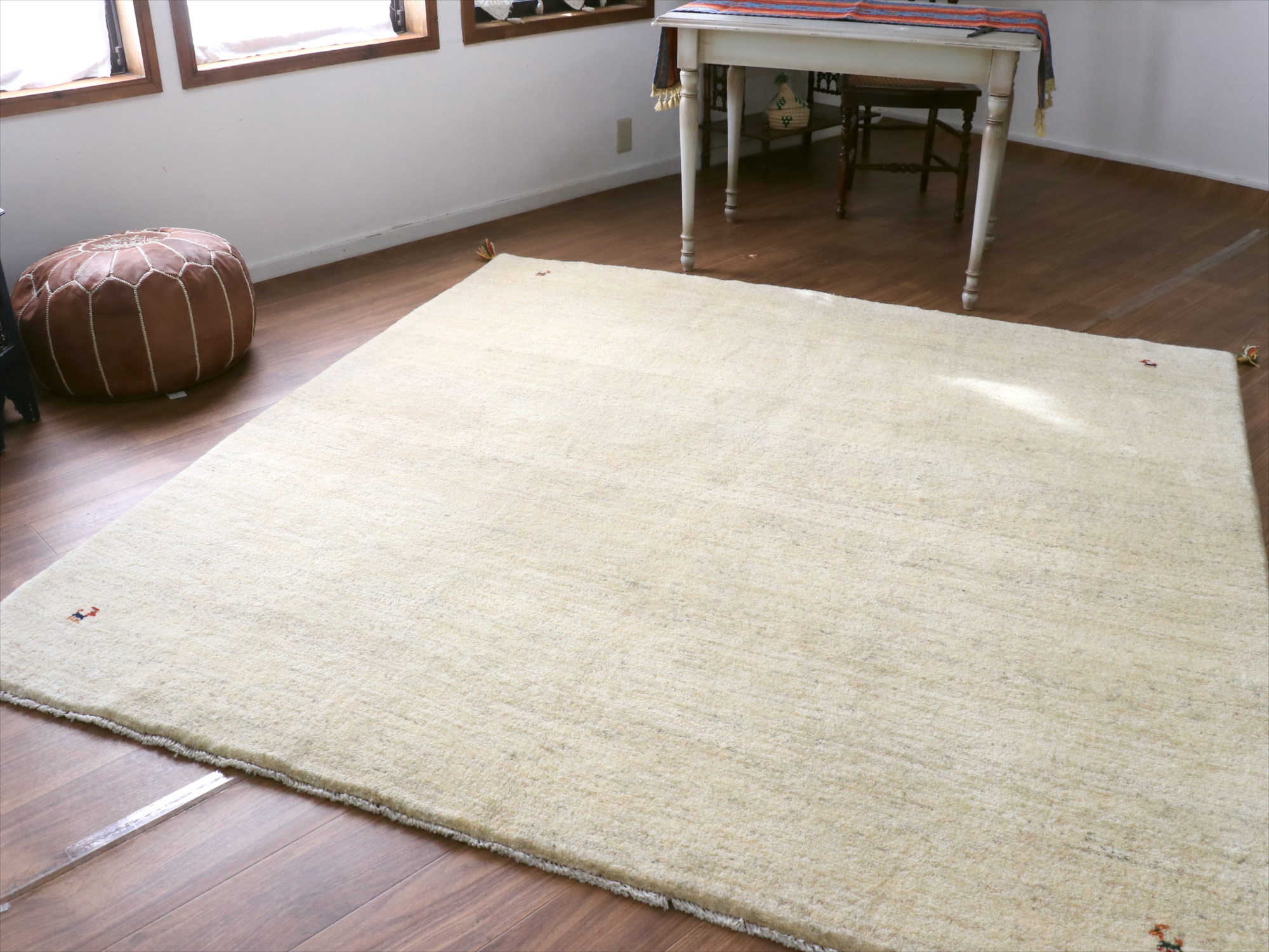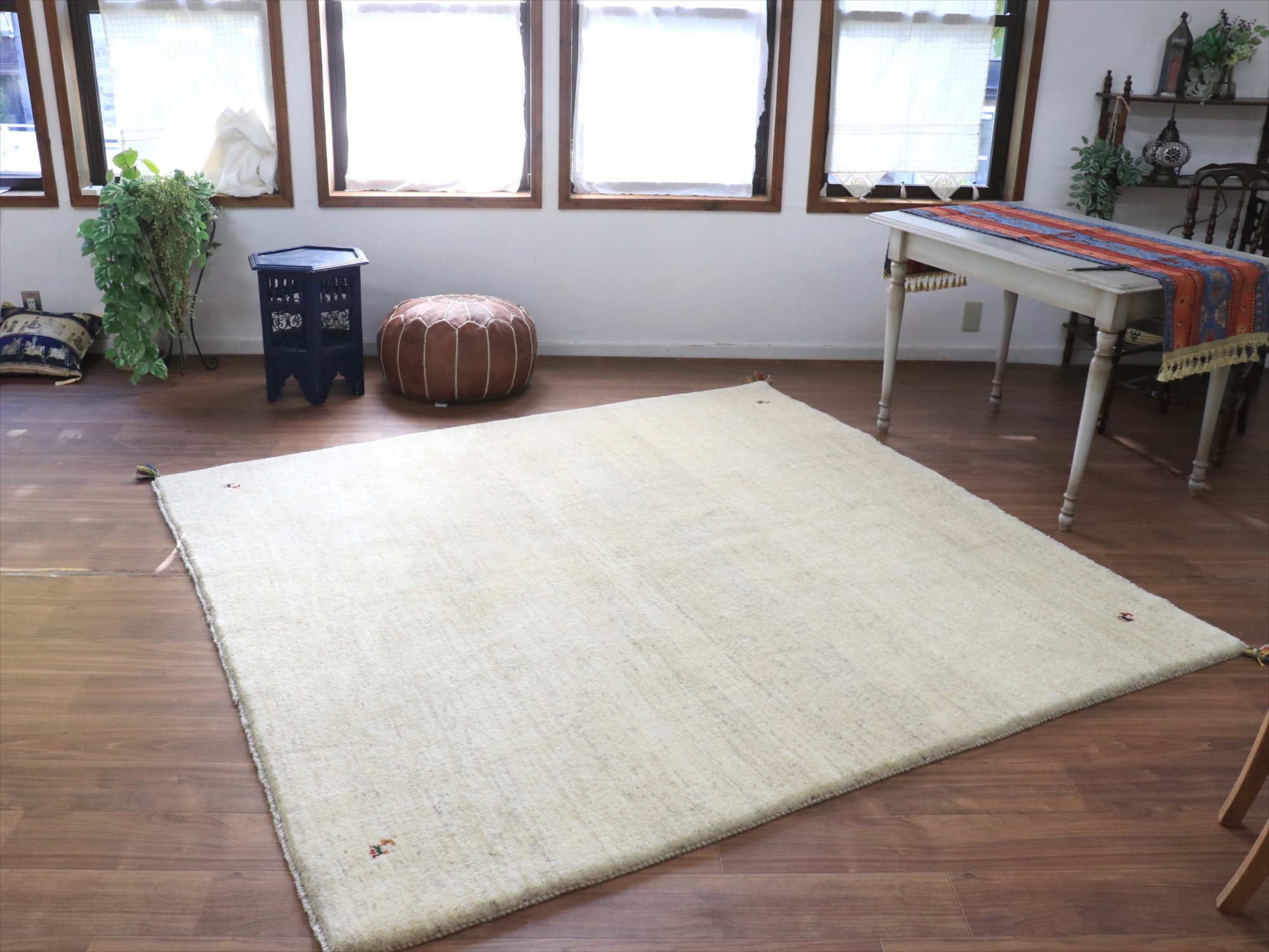 - ギャッベ 正方形 イラン産手織りラグ 215x206cm シンプル 無地 ナチュラルアイボリー ベージュ