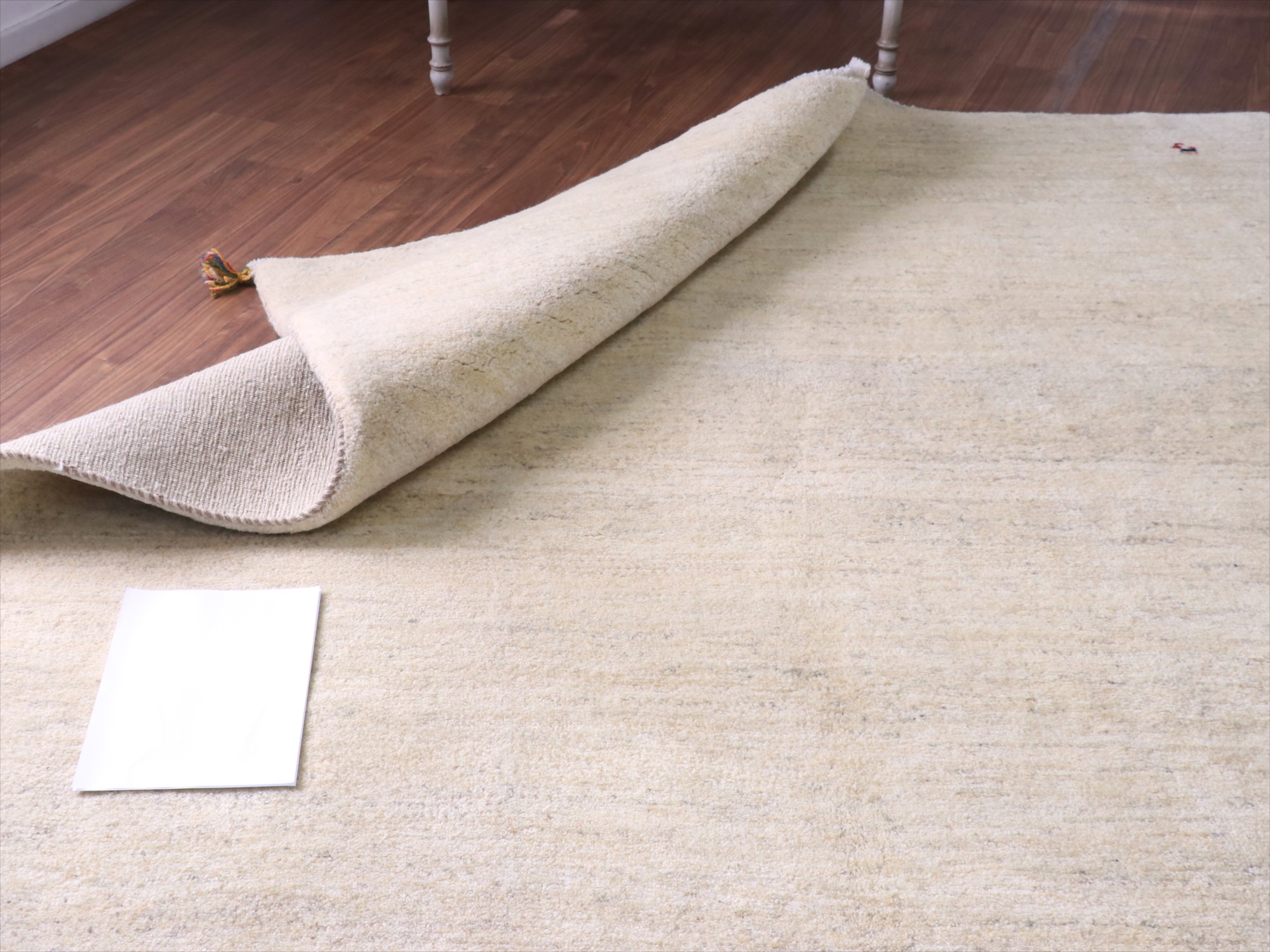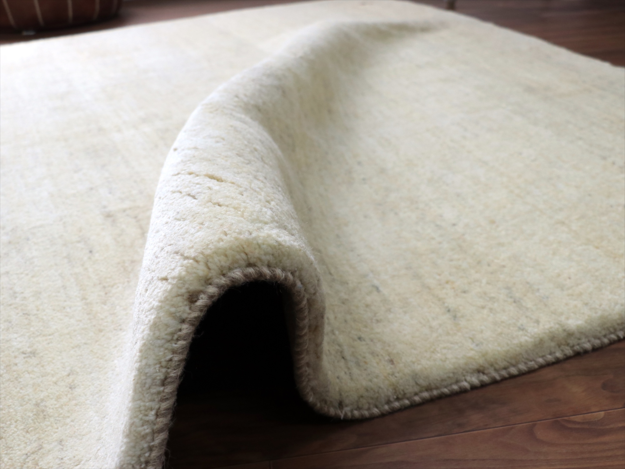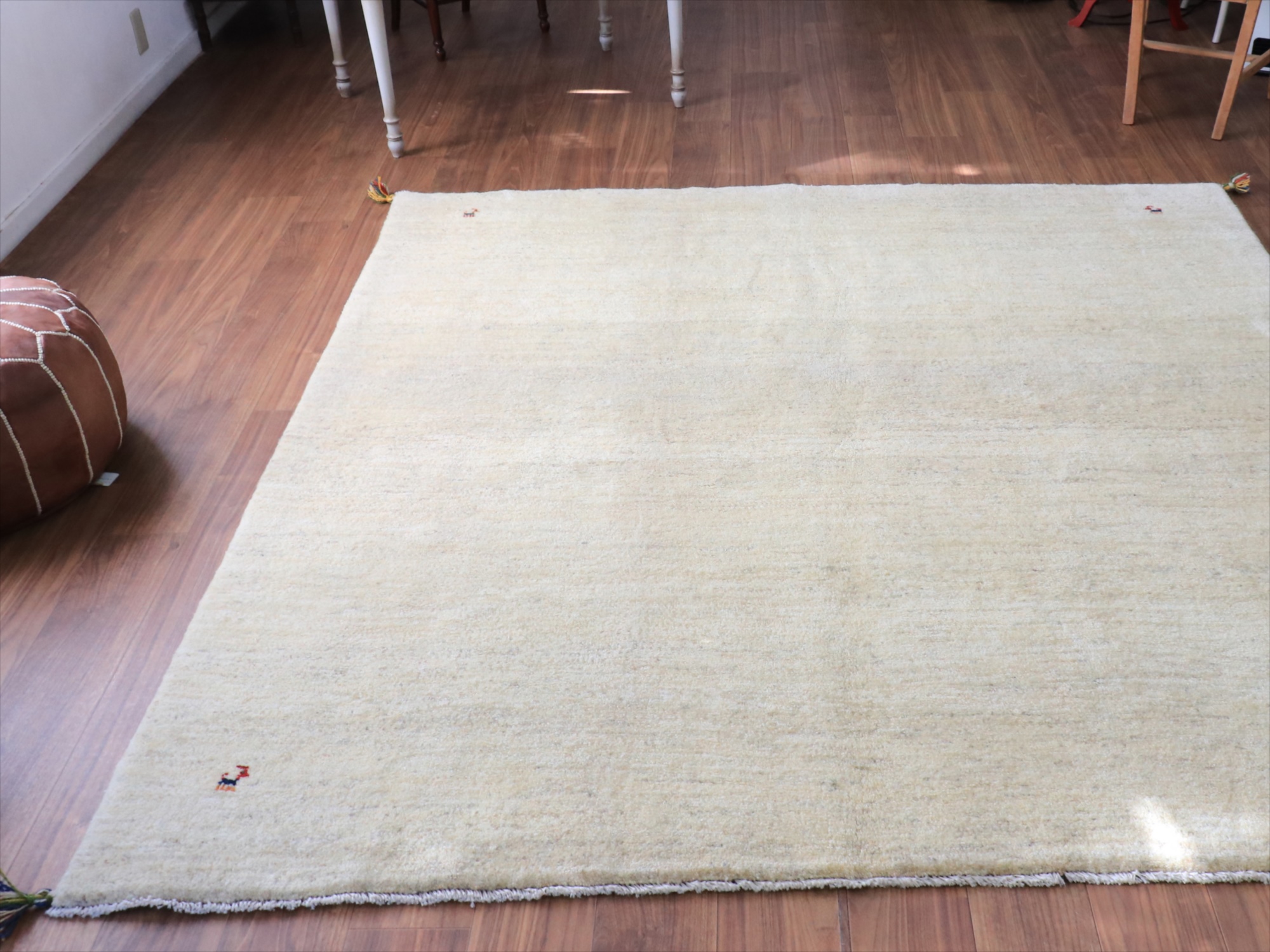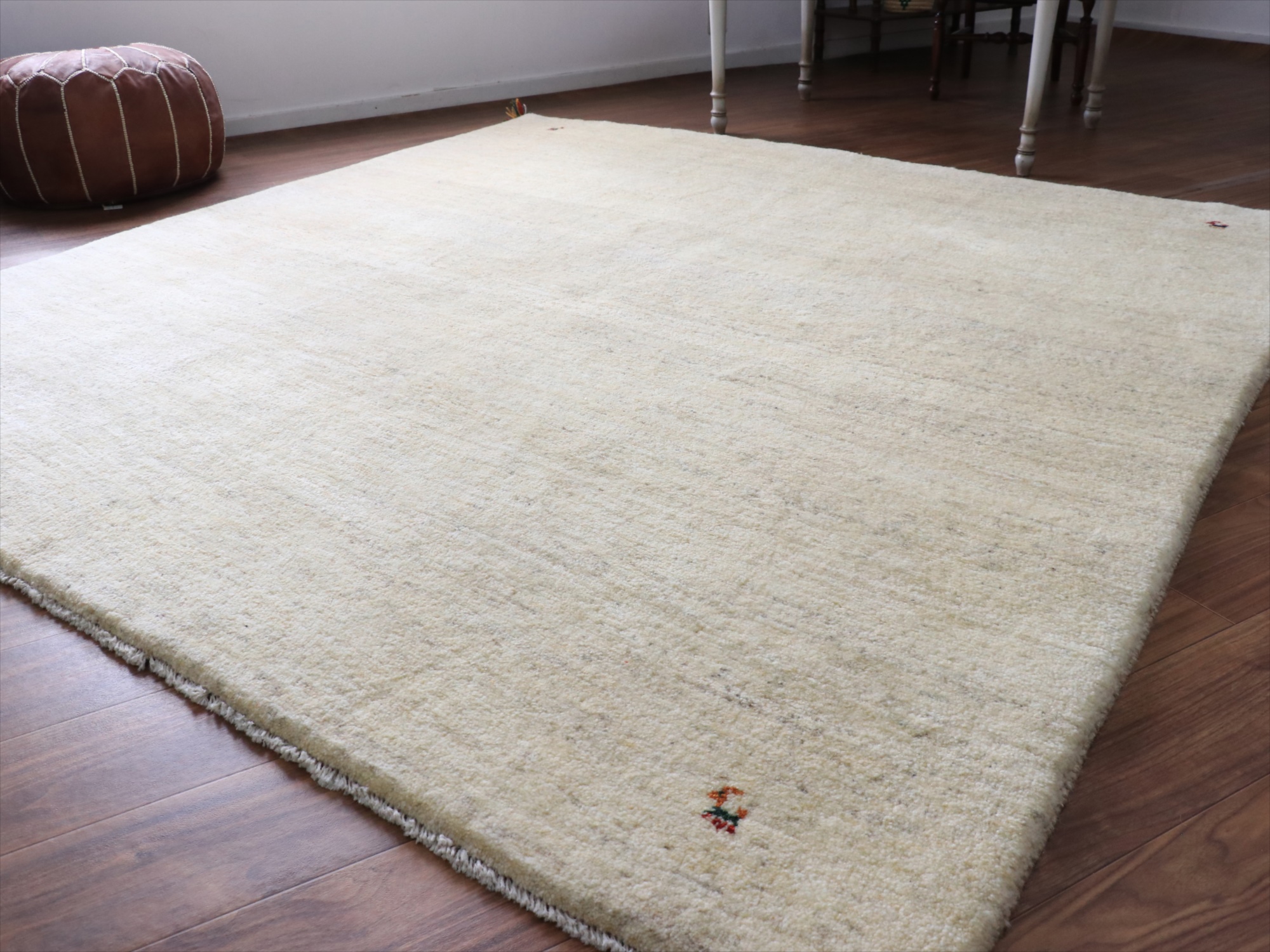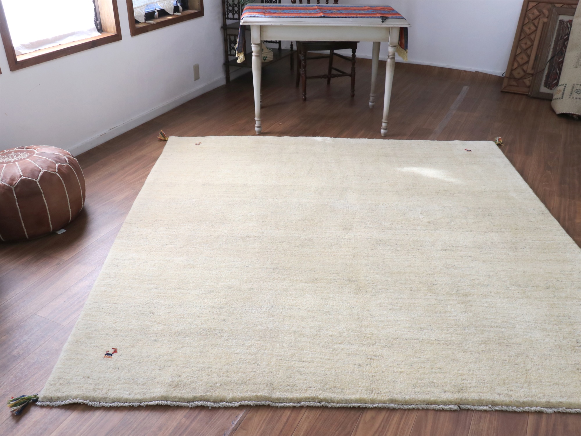 - ギャッベ 正方形 イラン産手織りラグ 215x206cm シンプル 無地 ナチュラルアイボリー ベージュ