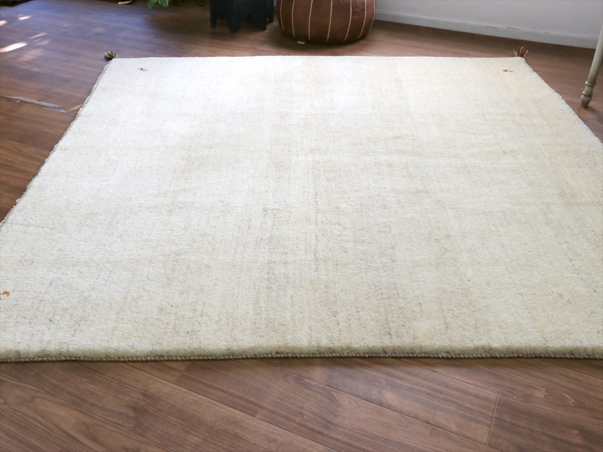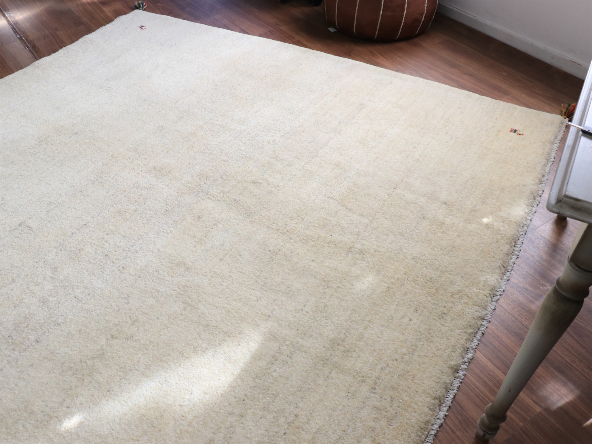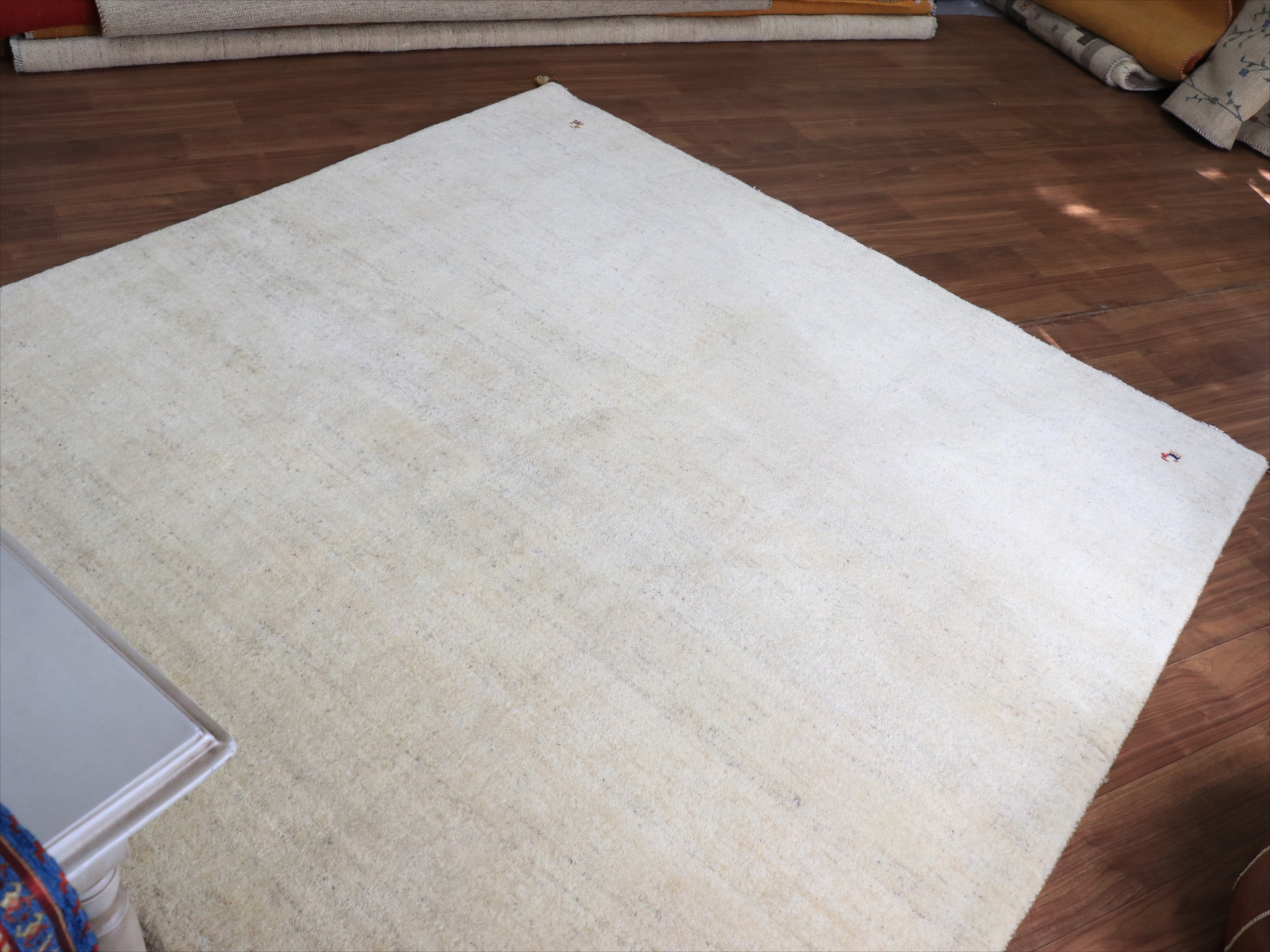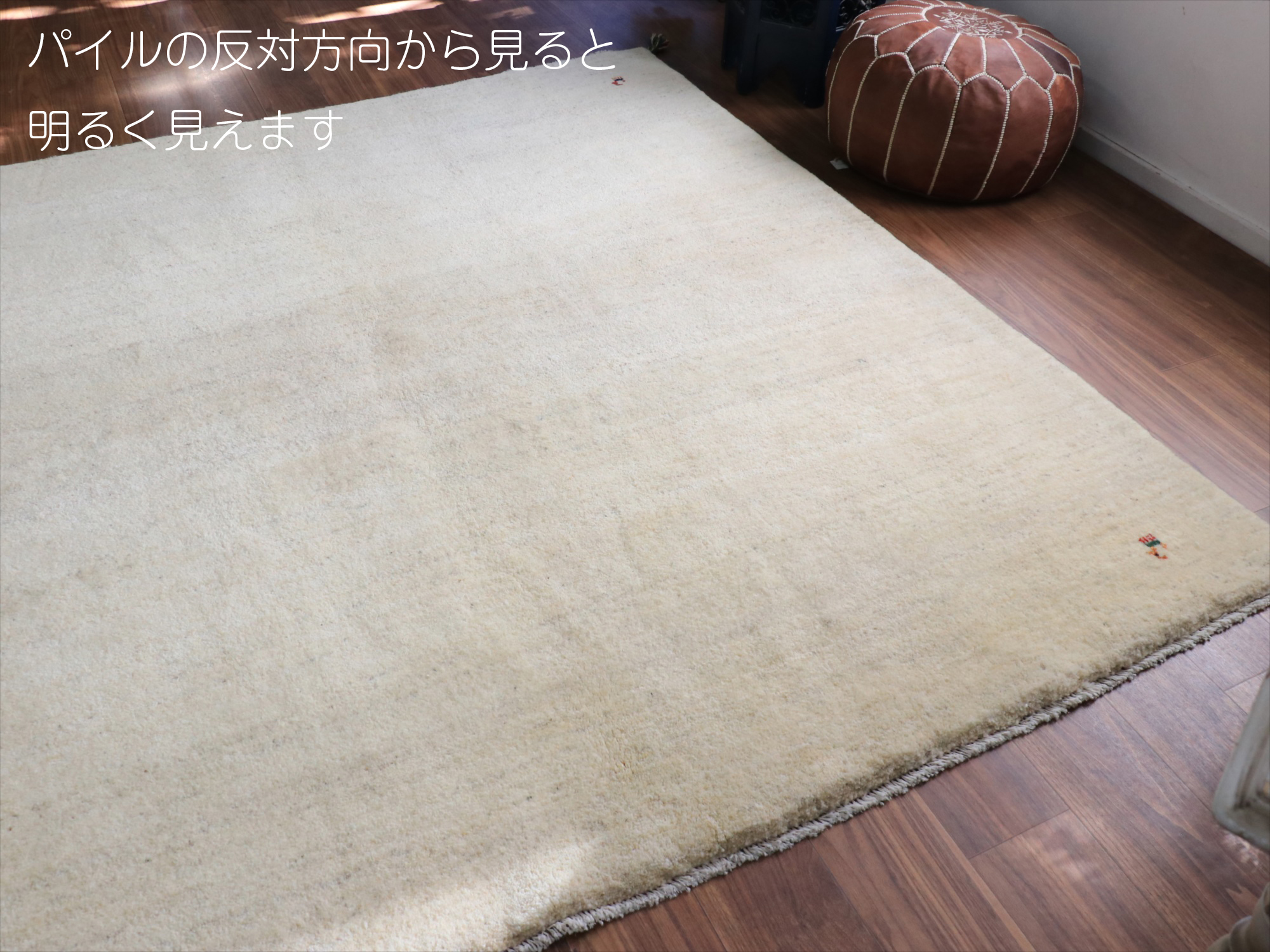 - ギャッベ 正方形 イラン産手織りラグ 215x206cm シンプル 無地 ナチュラルアイボリー ベージュ