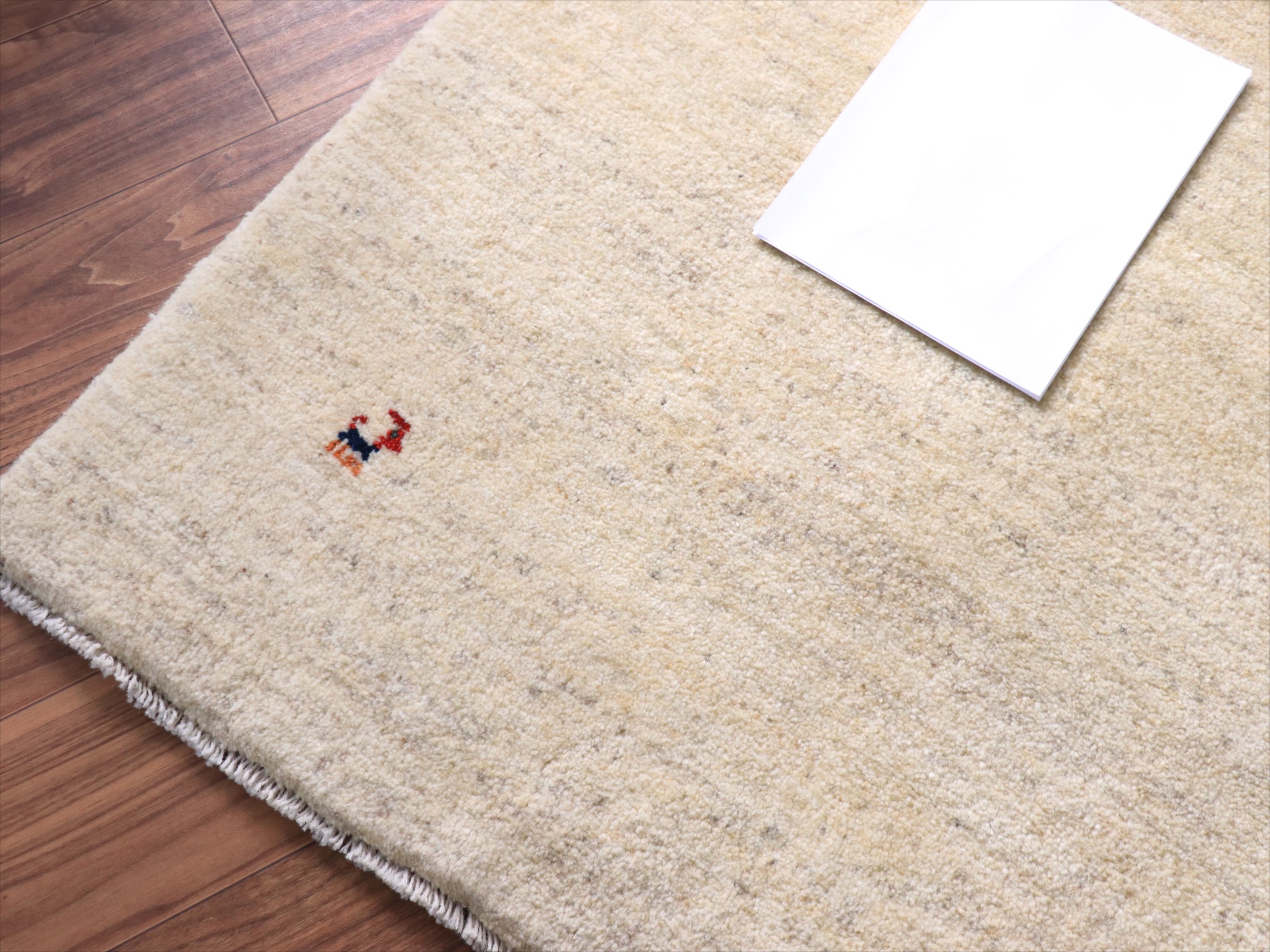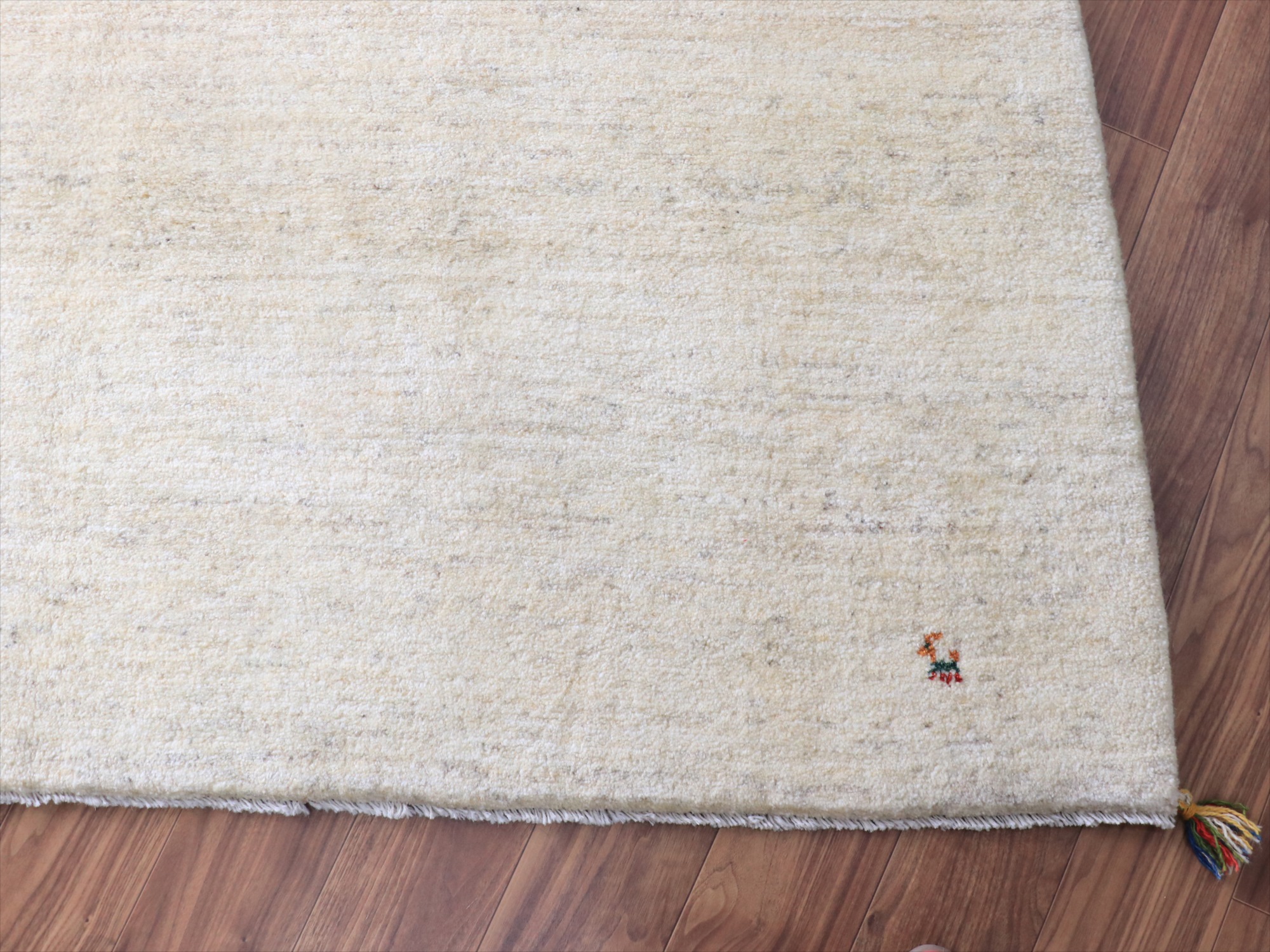 ギャッベ 正方形 イラン産手織りラグ 215x206cm シンプル 無地 ナチュラルアイボリー ベージュ