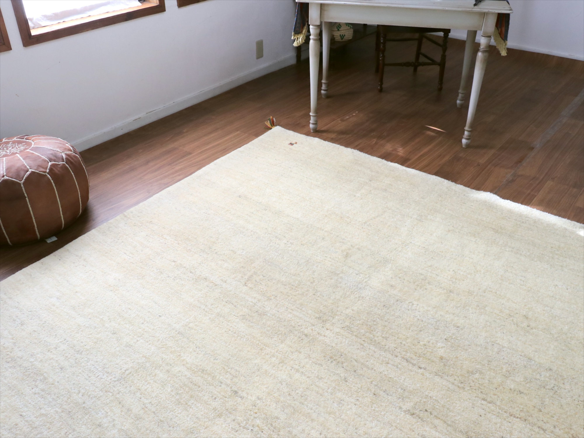 | 羊毛の自然な色味を活かして織られたシンプルデザインのギャッベ。全体的に、羊毛のグレーやベージュが混ざっていて、自然な感じの色ムラができています。 縦横ともに200cmを超える正方形に近いサイズで、ホットカーペットの上などにも使いやすいサイズです。 |