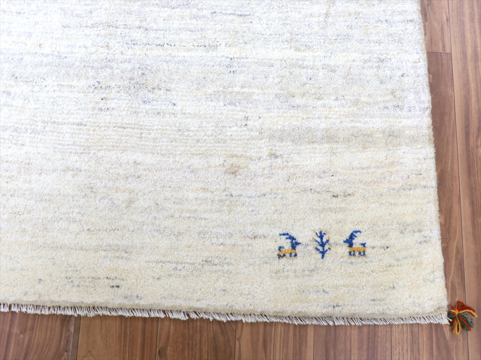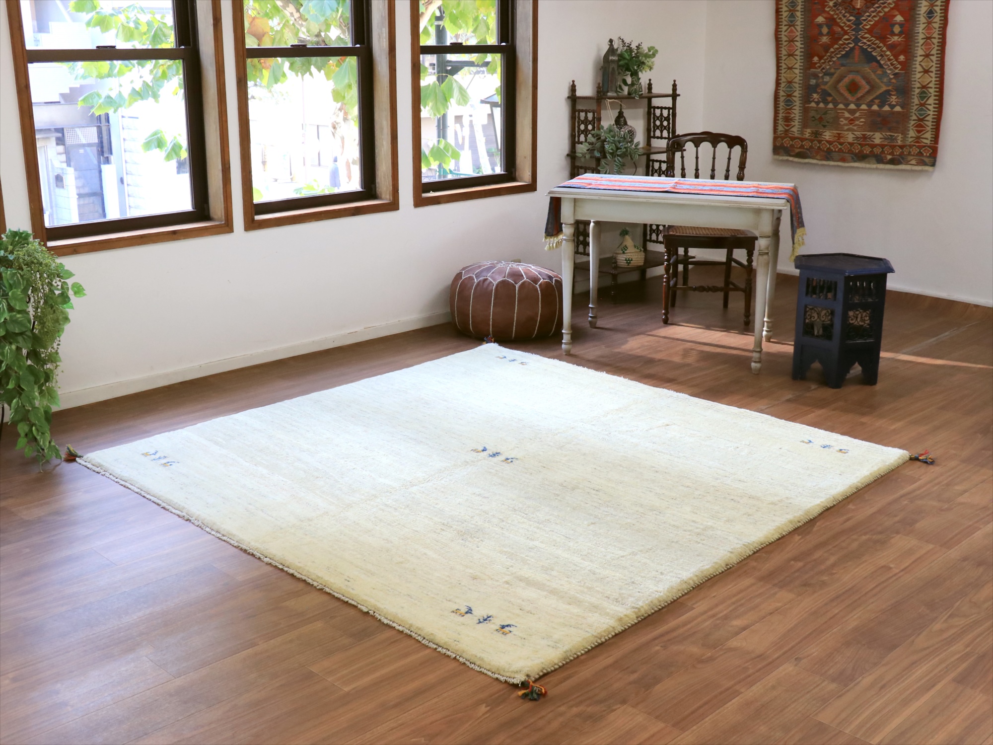 ギャッベ 正方形 イラン産 198x200cm シンプル 無地 ナチュラルアイボリー ベージュ