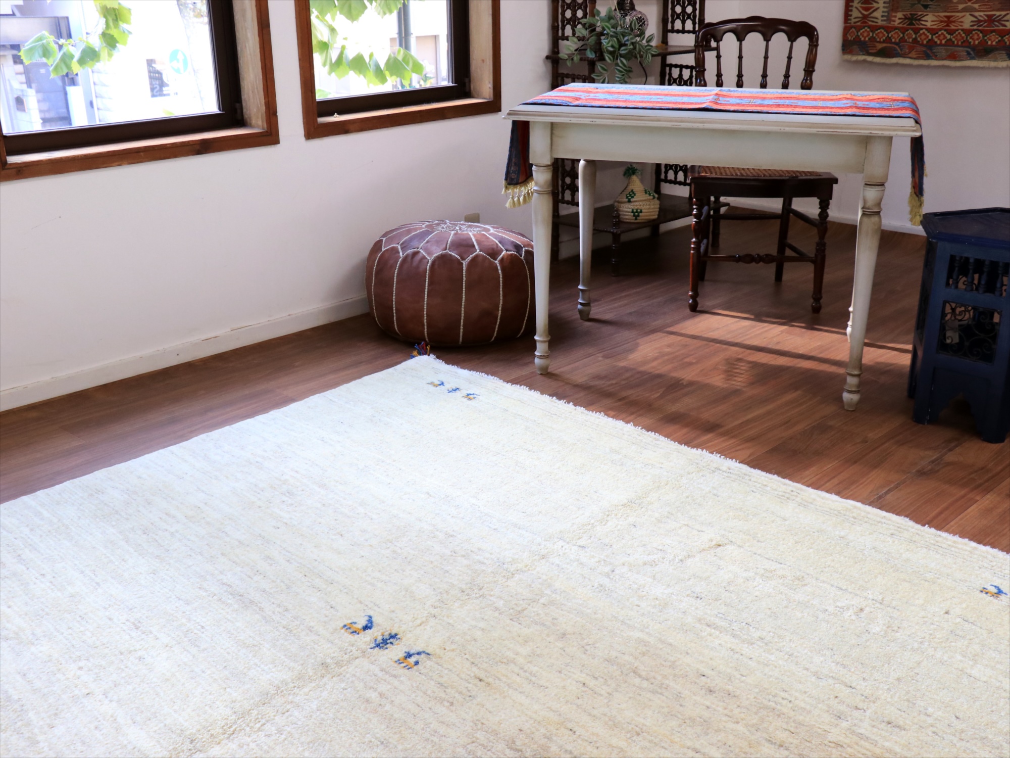 Key:ギャベ, ラグ, 手織り絨毯, 部族絨毯, 草木染, カシュカイ族, ウール製, リビングサイズ, アイボリー, ベージュ, ナチュラル, 正方形, スクエアサイズ, ホットカーペット対応, グラデーション, 遊牧民, カシュカイ族,東京,中野区, ガラタバザール, Gabbeh, Tribal Rug, Hand knotted, wool, Natural dye, Shiraz, Fars, Quashkai