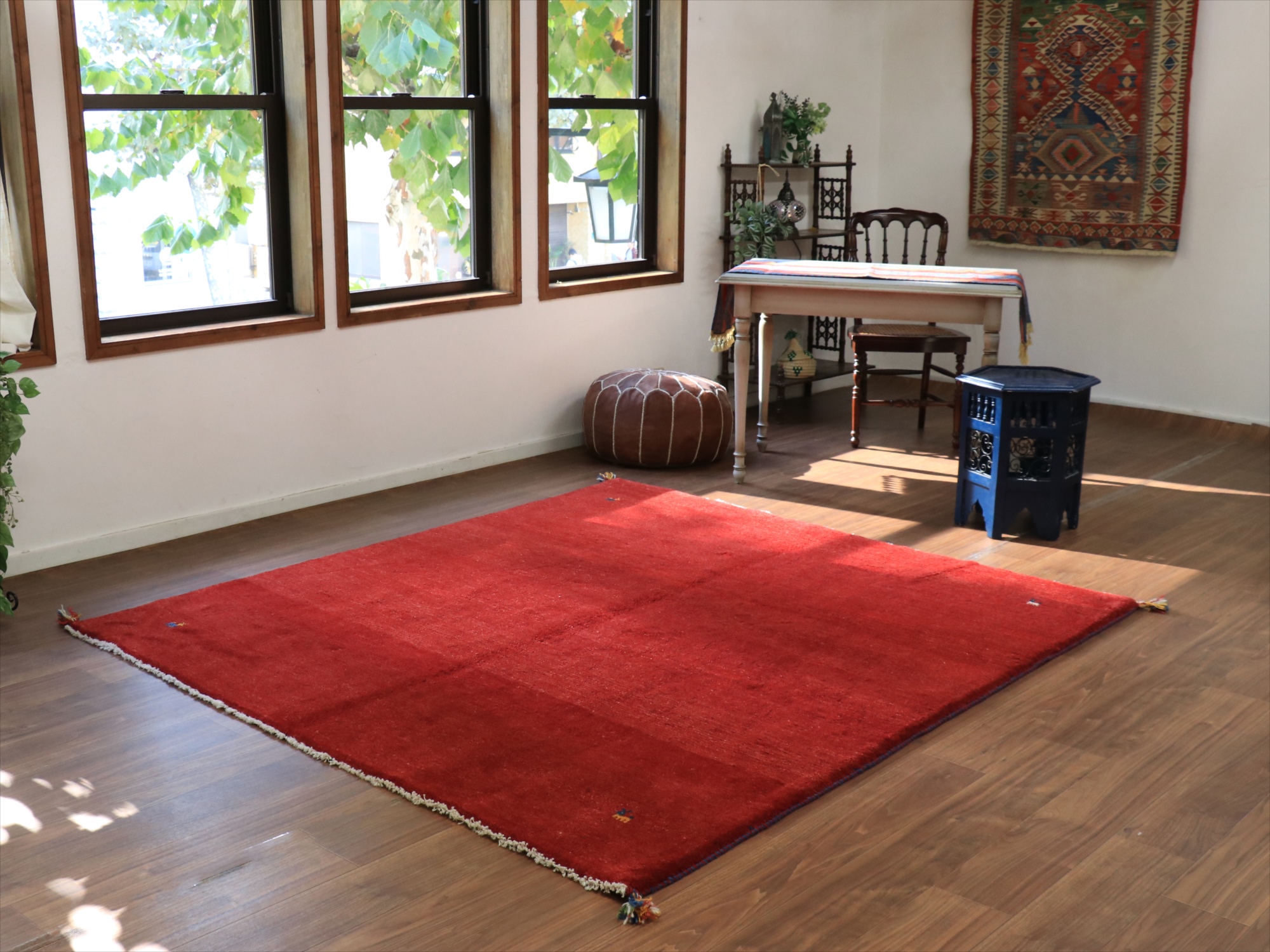 Key:ギャベ, ギャッベ, ラグ, イラン製, 手織り絨毯, 部族絨毯, カシュカイ族, 草木染, ウール100%, レッド, 赤, シンプル, 正方形, スクエア, ホットカーペット対応, リビング, ダイニング, ソファ前, 厚手, 東京,中野区, ガラタバザール, Gabbeh, Tribal Rug, Hand knotted, wool, Shiraz, Fars, Quashkai