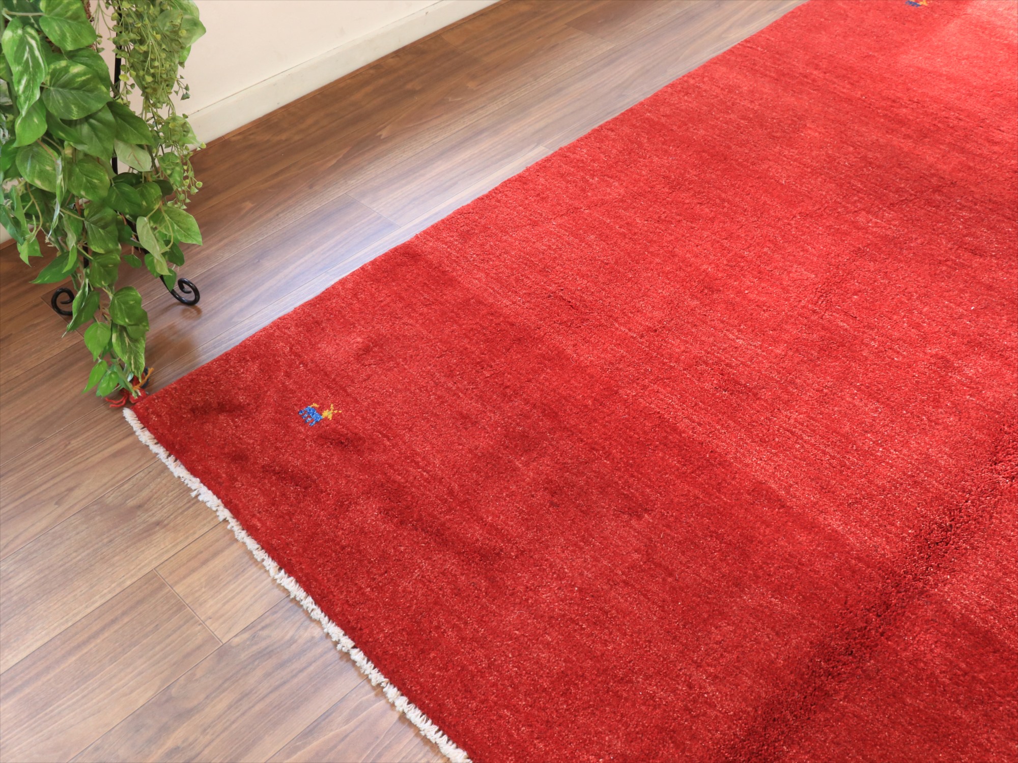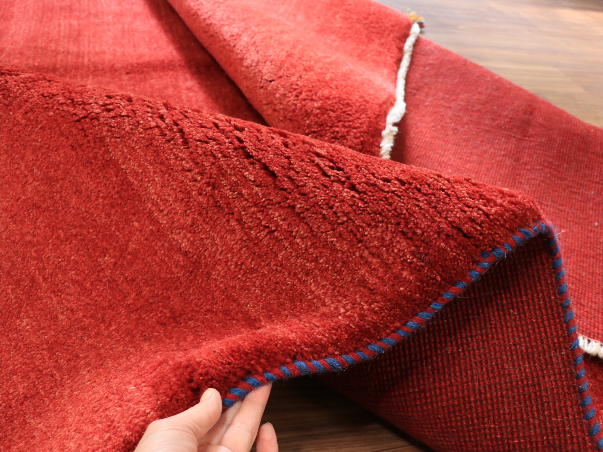 - ギャッベ 正方形 イラン産 208x190cm レッド グラデーション 無地 シンプル