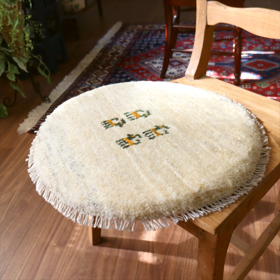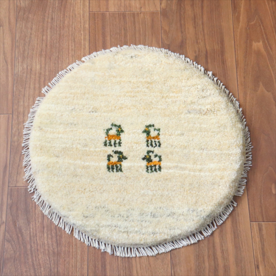 ギャッベ 円形座布団サイズ φ42cm ナチュラルアイボリー ベージュ
