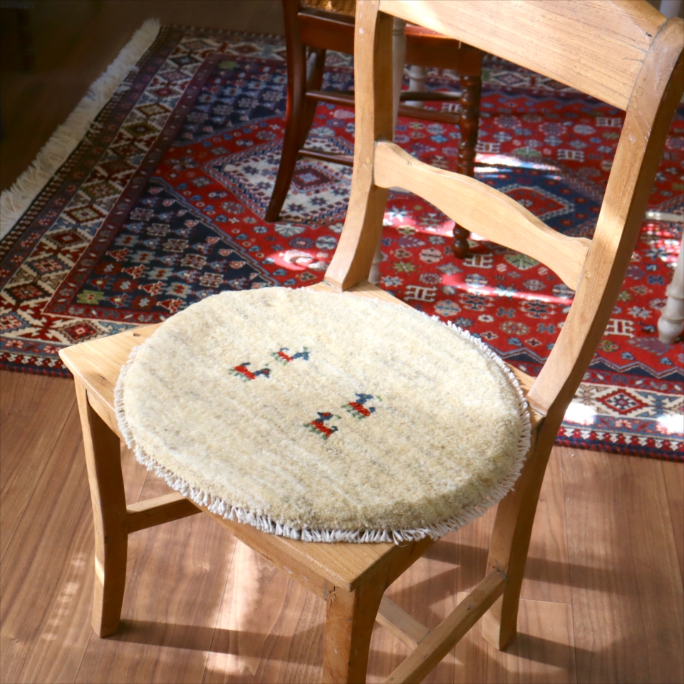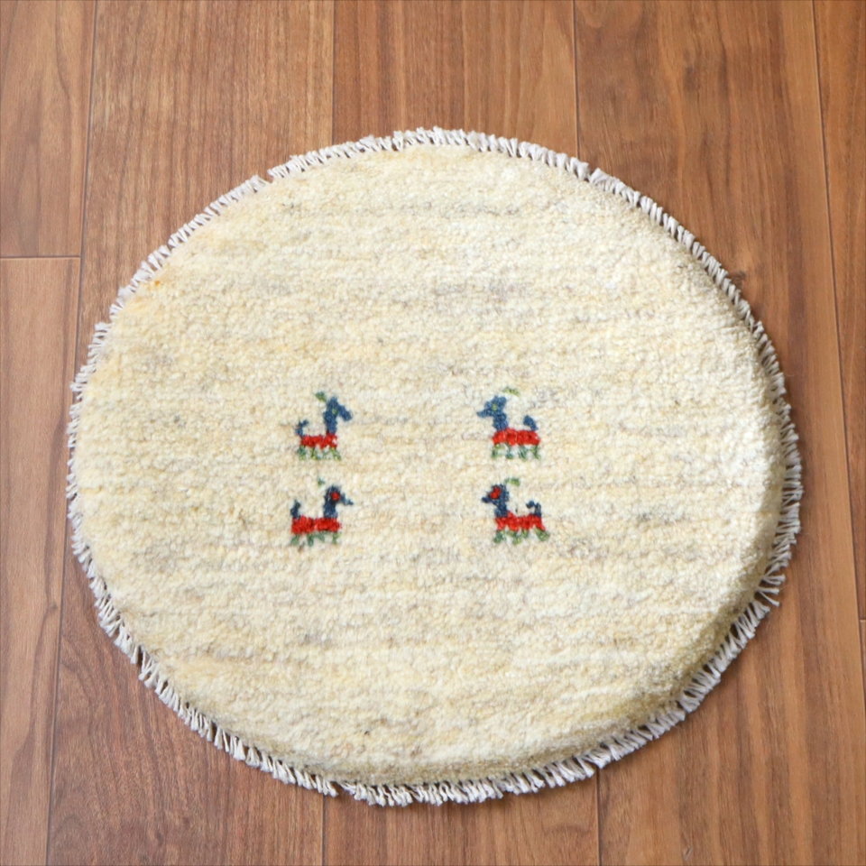 ギャッベ 円形座布団サイズ φ41cm ナチュラルアイボリー ベージュ