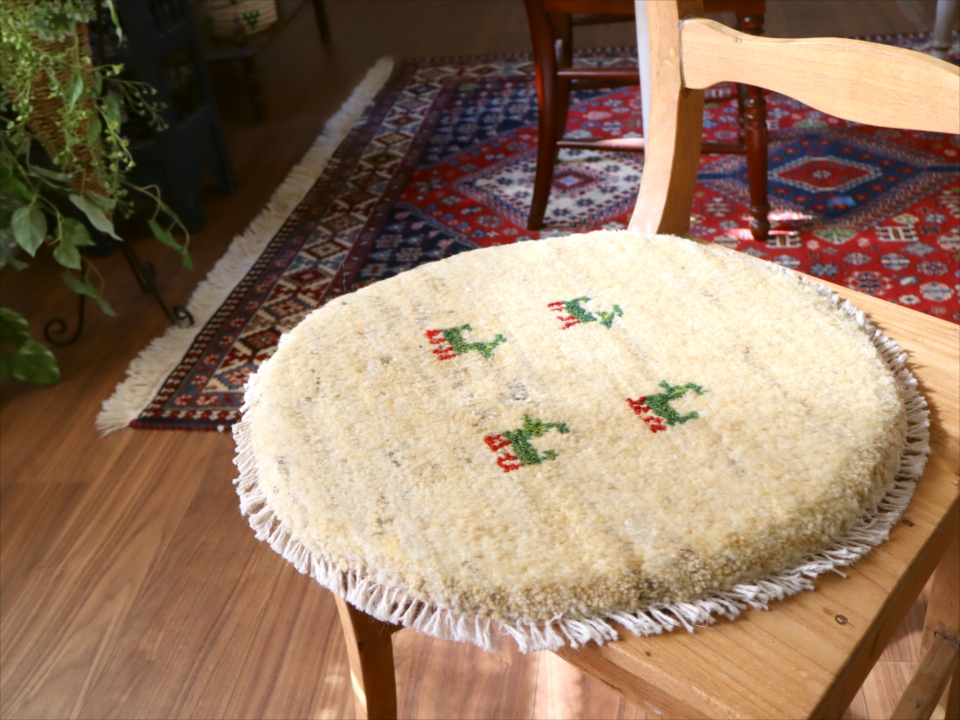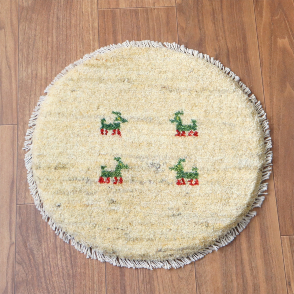 ギャッベ 円形座布団サイズ φ42cm ナチュラルアイボリー ベージュ