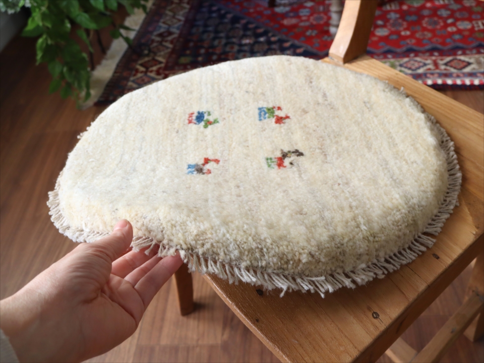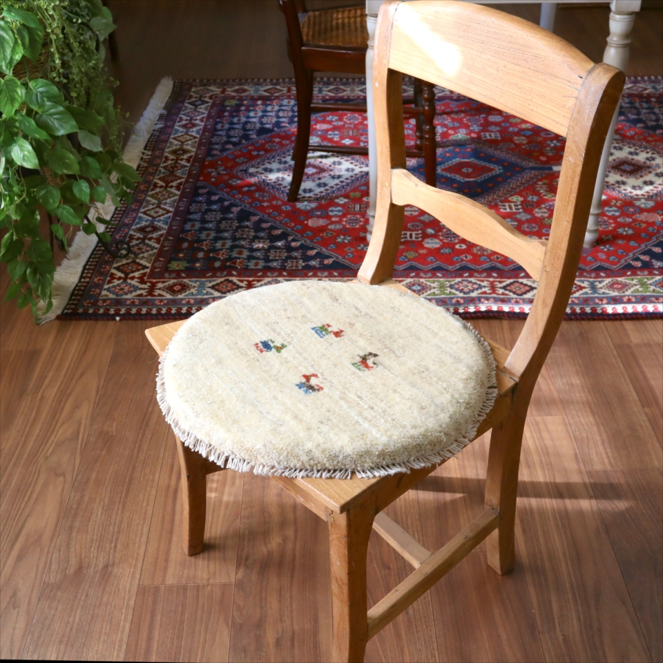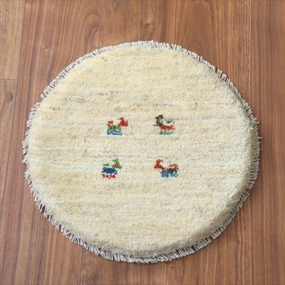 ギャッベ 円形座布団サイズ φ42cm ナチュラルアイボリー ベージュ