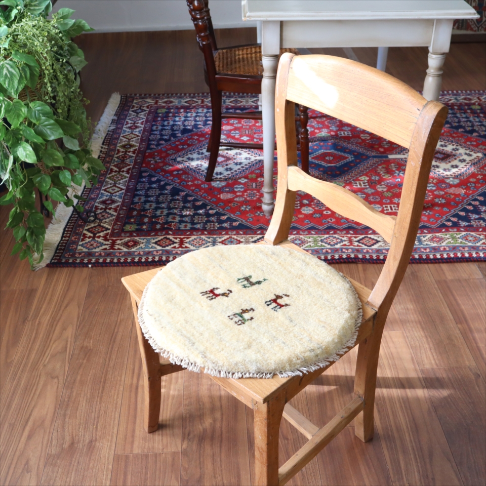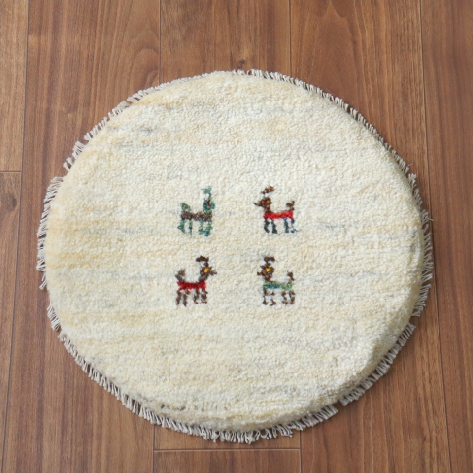 ギャッベ 円形座布団サイズ φ41cm ナチュラルアイボリー ベージュ