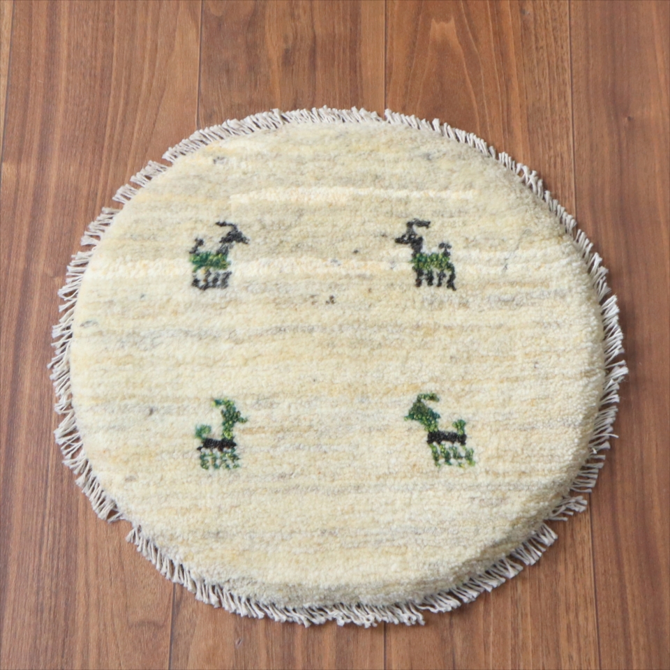 ギャッベ 円形座布団サイズ φ40cm ナチュラルアイボリー ベージュ