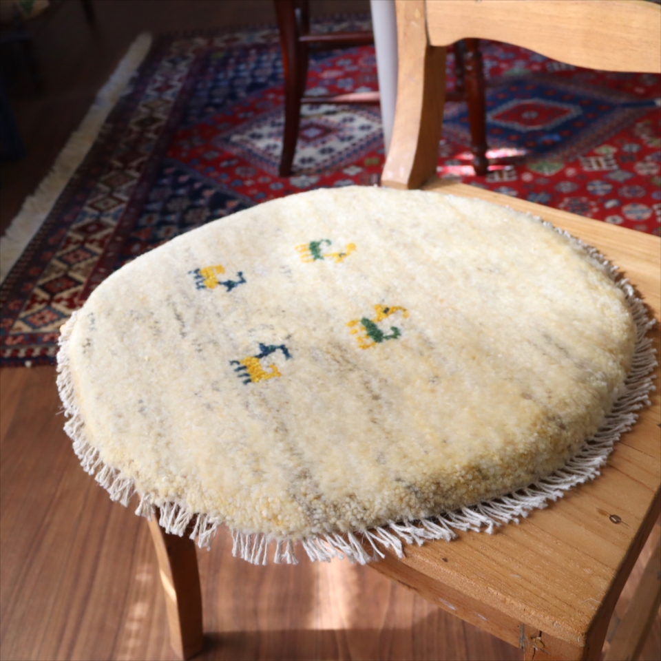 ギャッベ 円形座布団サイズ φ40cm ナチュラルアイボリー ベージュ