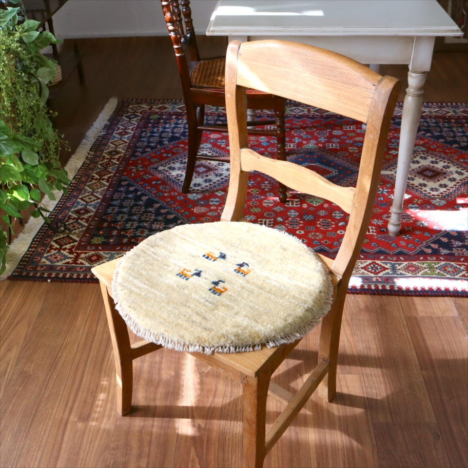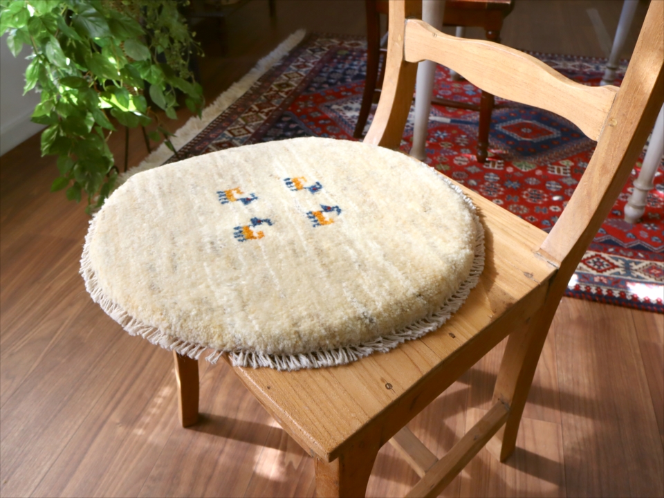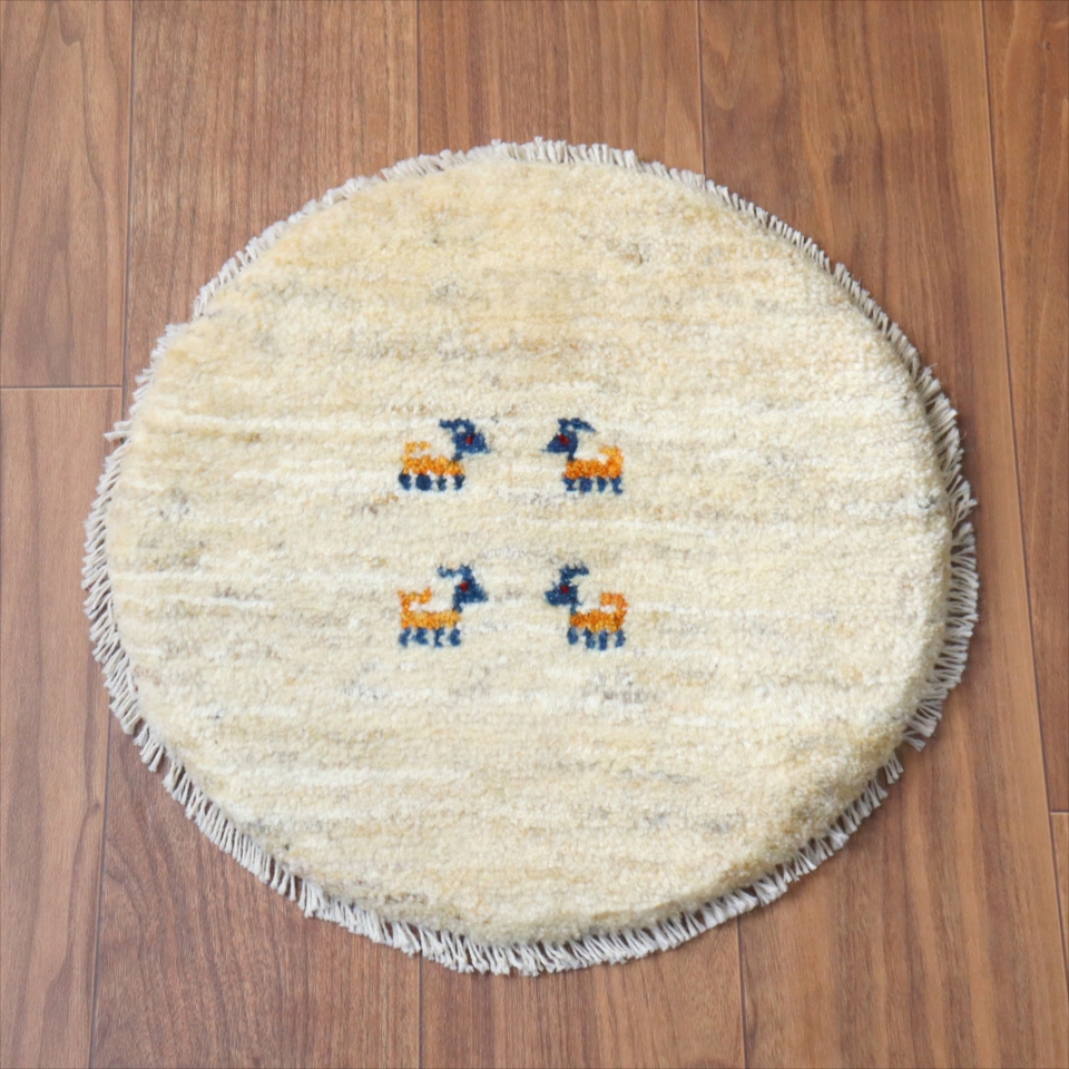【15%OFF】ギャッベ 円形座布団サイズ φ41cm ナチュラルアイボリー ベージュ