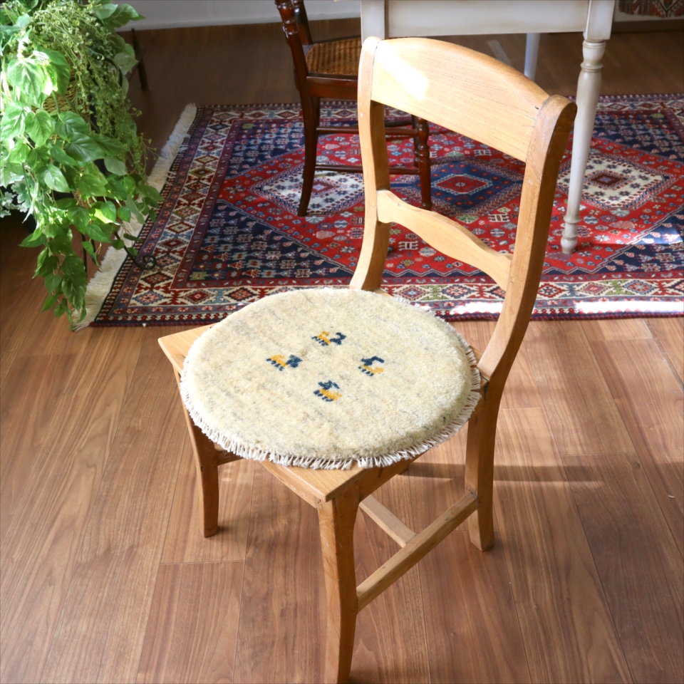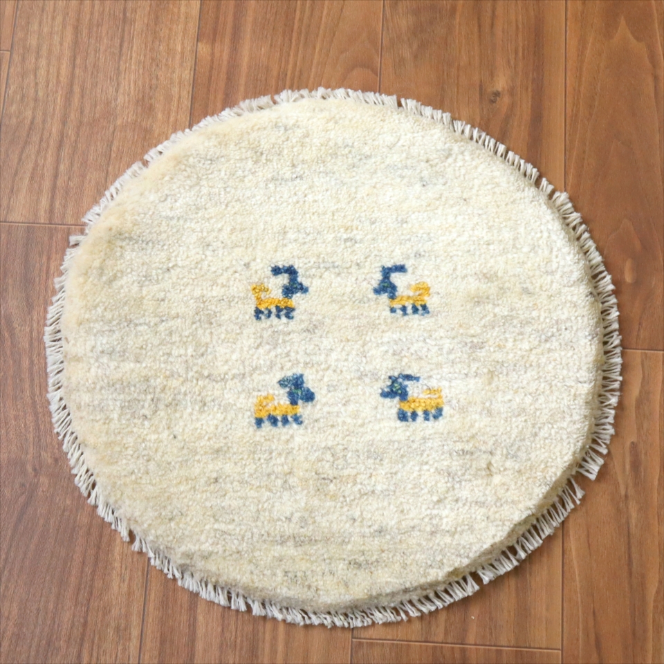 【15%OFF】ギャッベ 円形座布団サイズ φ42cm ナチュラルアイボリー ベージュ