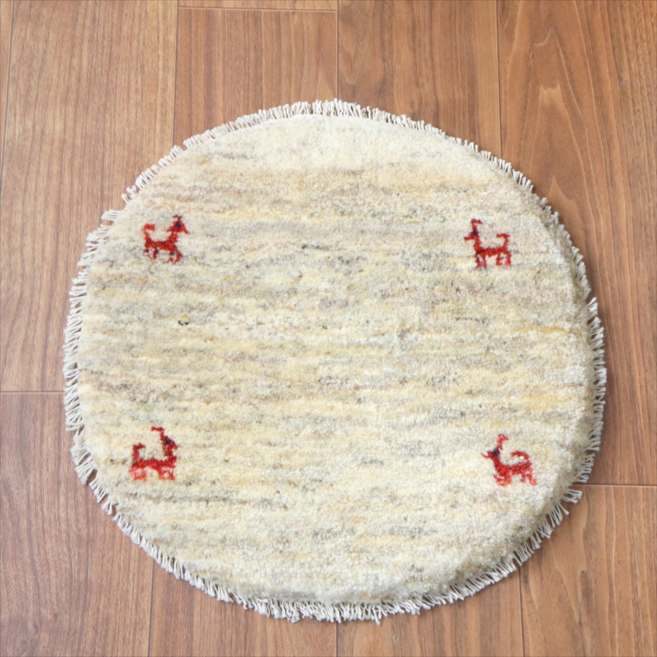 【15%OFF】ギャッベ 円形座布団サイズ φ45cm ナチュラルアイボリー ベージュ