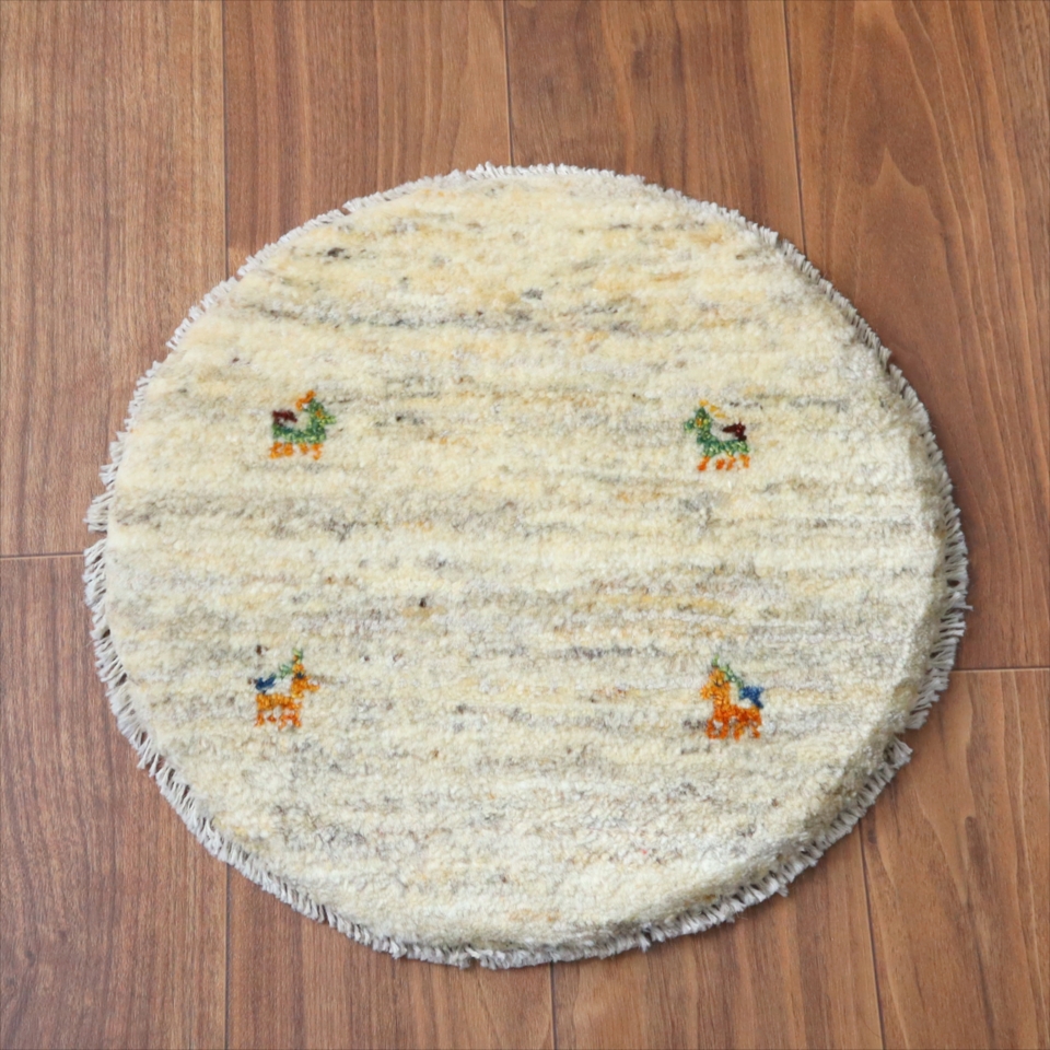 【15%OFF】ギャッベ 円形座布団サイズ φ41cm ナチュラルアイボリー ベージュ