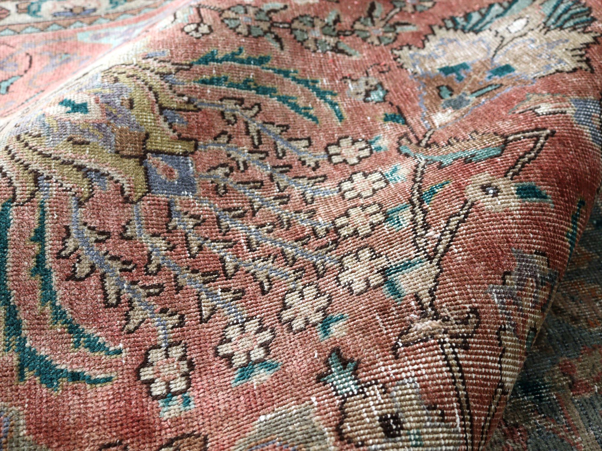 Key:Antique Rug, Recycle rug, reclamation rug, Upcycle, vintage, Persian Carpet, Vintage wash, Bleach, Hand knotted, BO-HO, トライバルラグ, ペルシャ絨毯, オーバーダイド, 後染め, リサイクルラグ, リクラメーション, アップサイクル, 手織り, じゅうたん, ヴィンテージ, アンティークラグ, パステル, シャビーシック, 店舗什器, 店舗用, ラグ