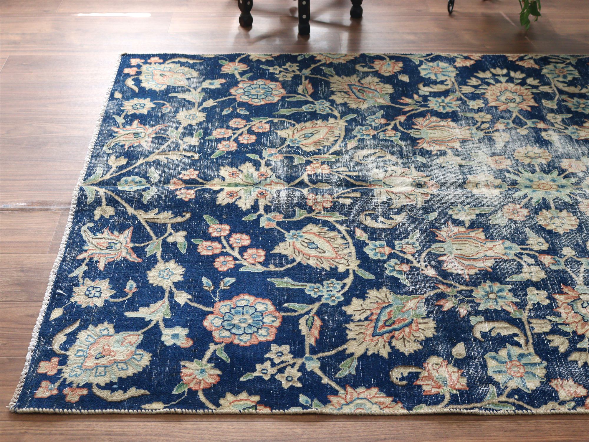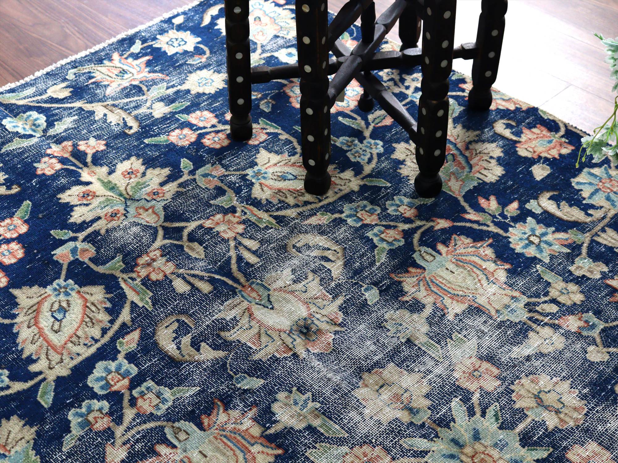 | 全体的にパイル(毛足)は短く、結び目が見えています。 【ヴィンテージウォッシュ】長い間使われて、パイルのすり減りなどダメージのあるラグを、リサイクルするためにクリーニング、ブリーチ加工したアップルサイクルの手織りラグです。ダメージ部分も、年代を経たラグならではの味わいととらえています。ブリーチ(脱色)したあとに、別の色に染めたものをオーバーダイドラグと呼んでいます。 |