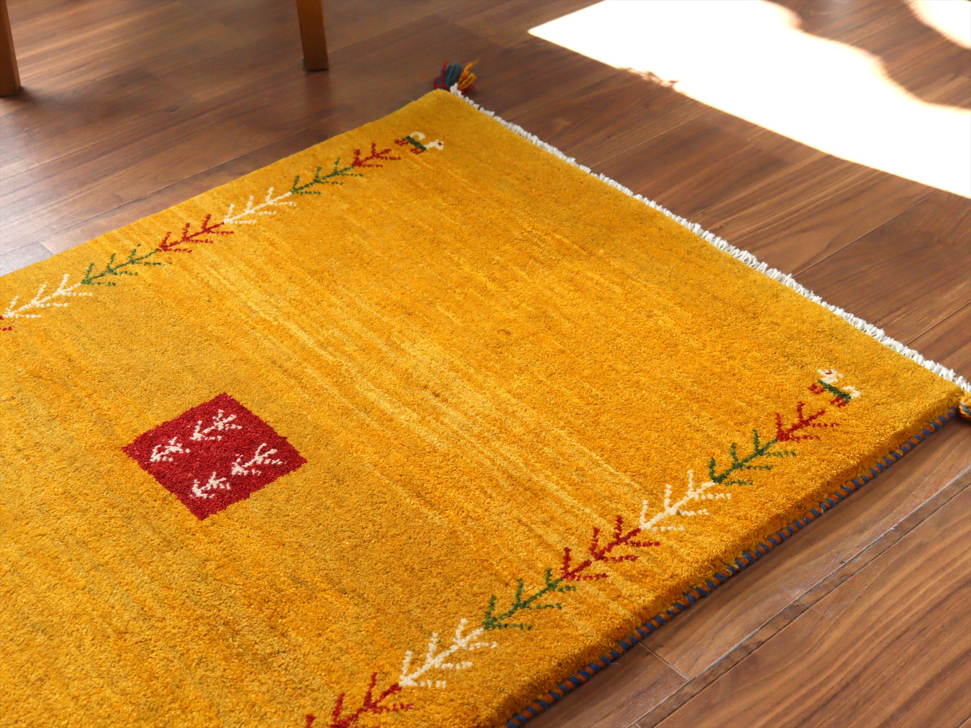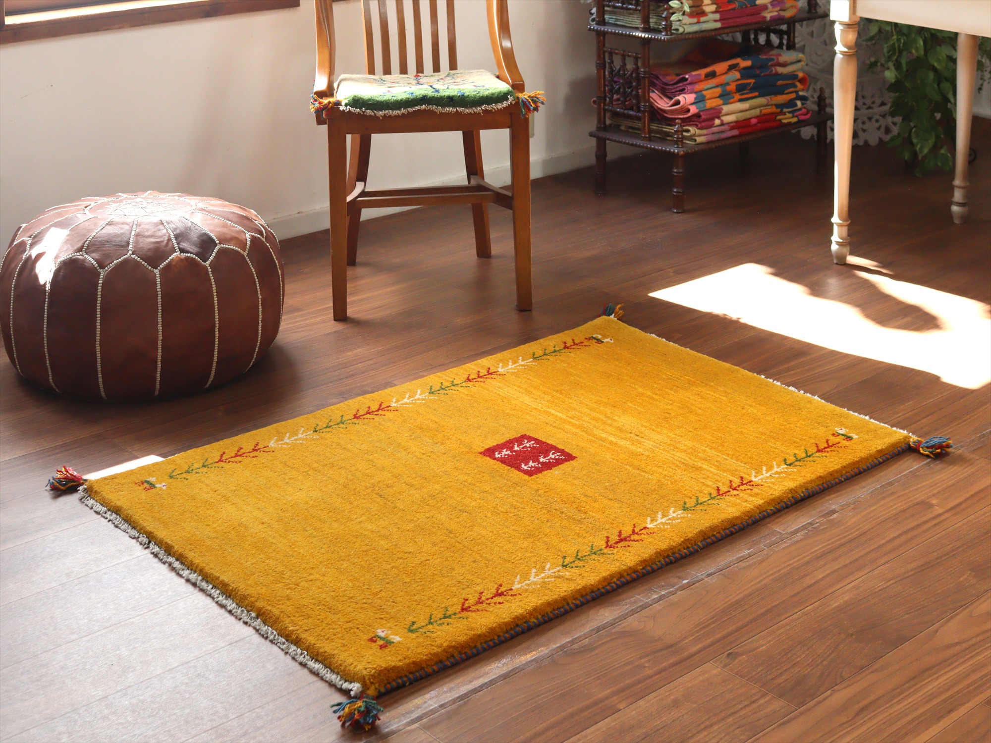 Key:ギャベ, ラグ, 手織り絨毯, 部族絨毯, 草木染, カシュカイ族, ウール製,センターラグ, イエロー, 黄色, 東京,中野区, ガラタバザール, Gabbeh, Tribal Rug, Hand knotted, wool, Natural dye, Shiraz, Fars, Quashkai