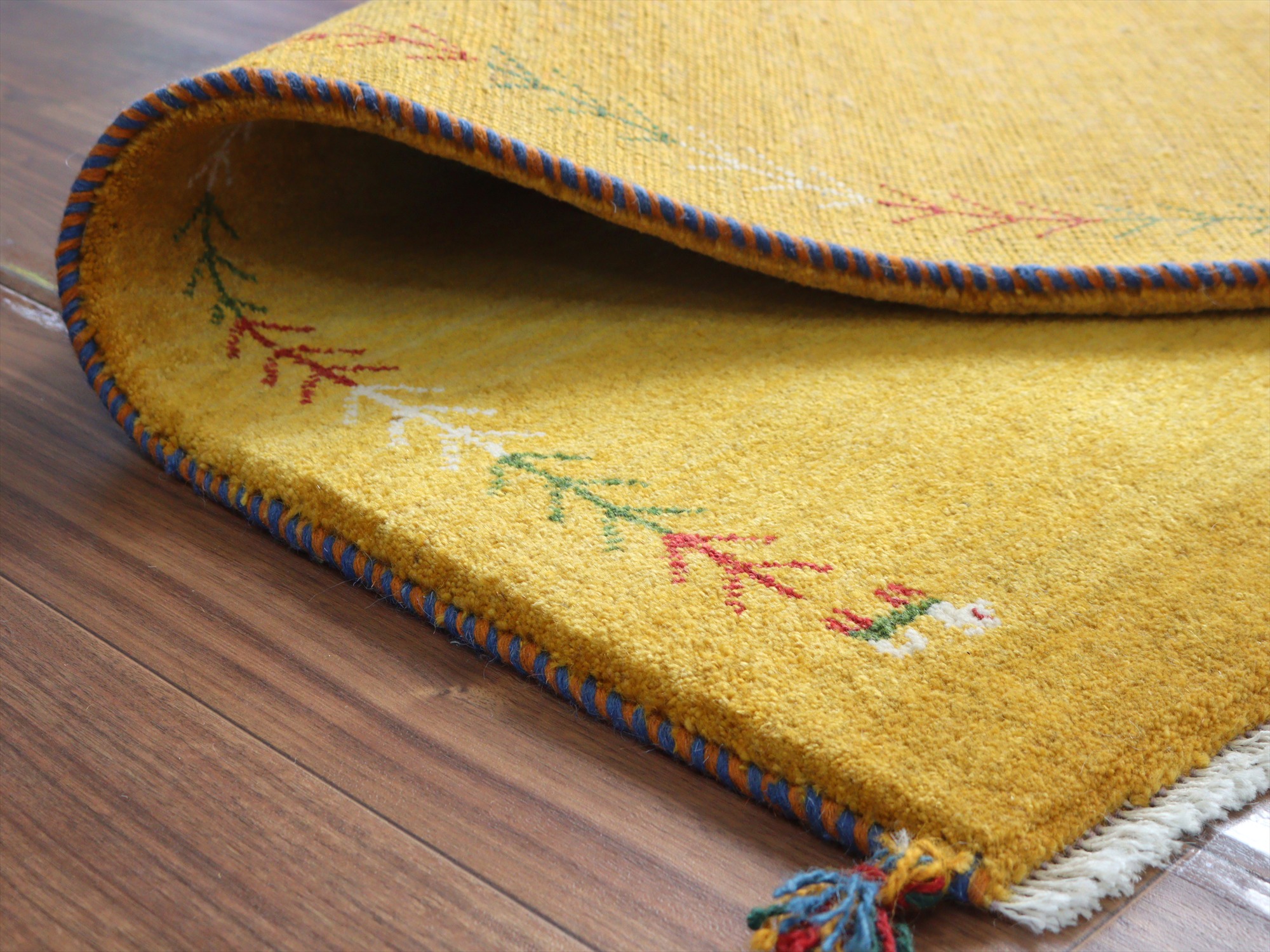 | 毛足が長く、パイルを含めたギャッベ全体の厚みは2cm程度。ボリューム感たっぷりのふかふかギャッベです。 |