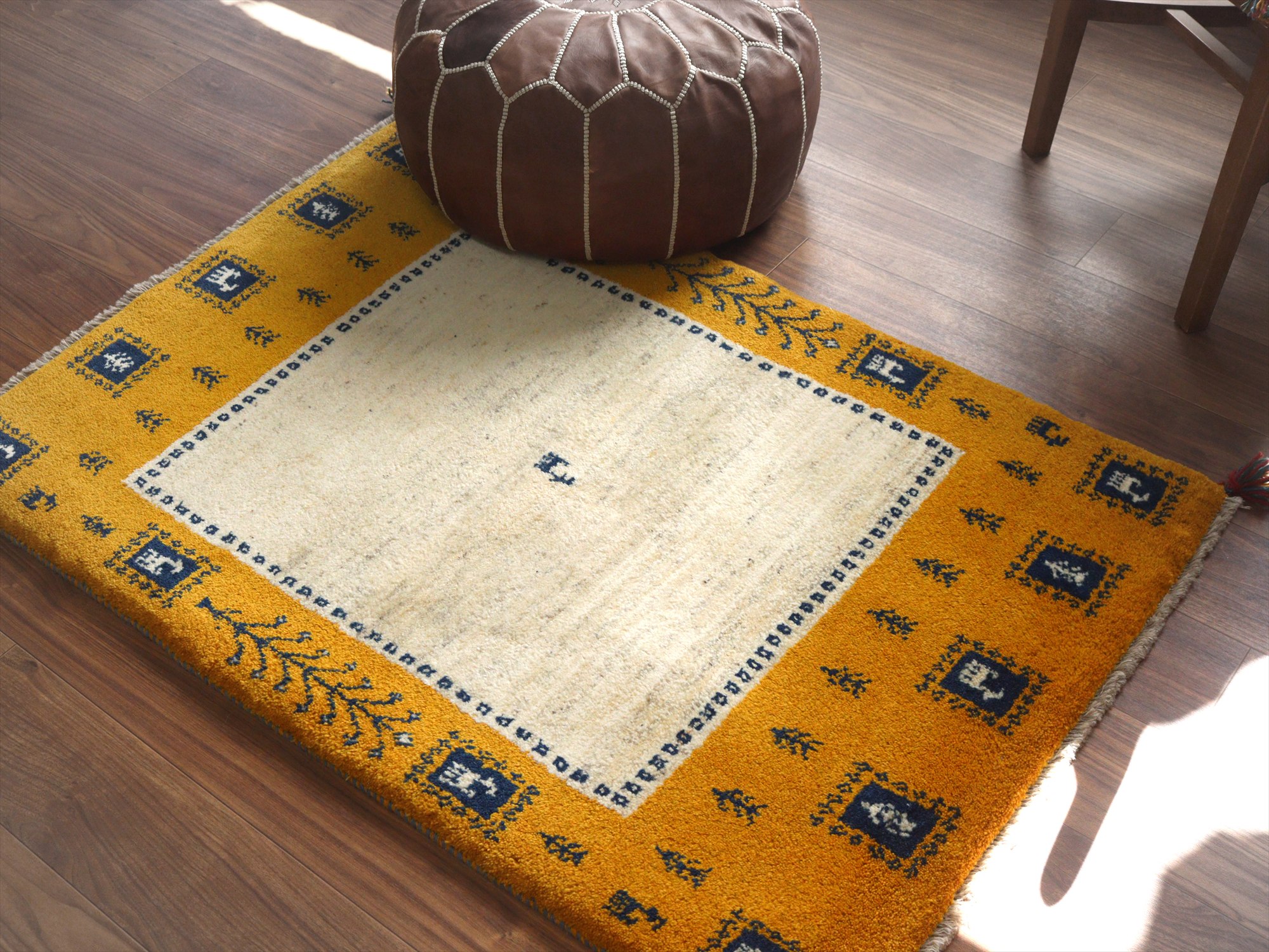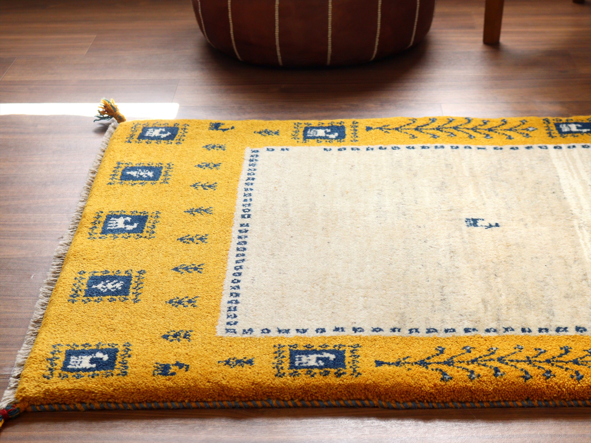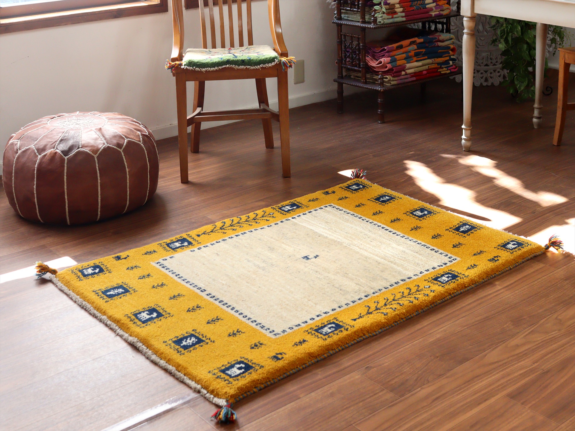 Key:ギャベ, ラグ, 手織り絨毯, 部族絨毯, 草木染, カシュカイ族, ウール製,センターラグ, イエロー, 黄色, 東京,中野区, ガラタバザール, Gabbeh, Tribal Rug, Hand knotted, wool, Natural dye, Shiraz, Fars, Quashkai