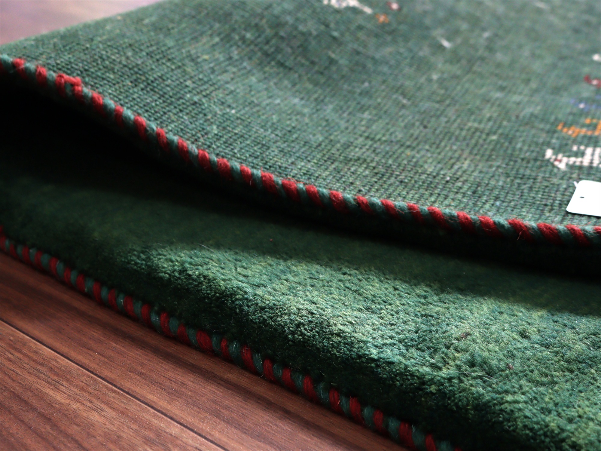 - イランの手織りラグ ギャッベ 114x81cm グリーン 動物と生命の樹