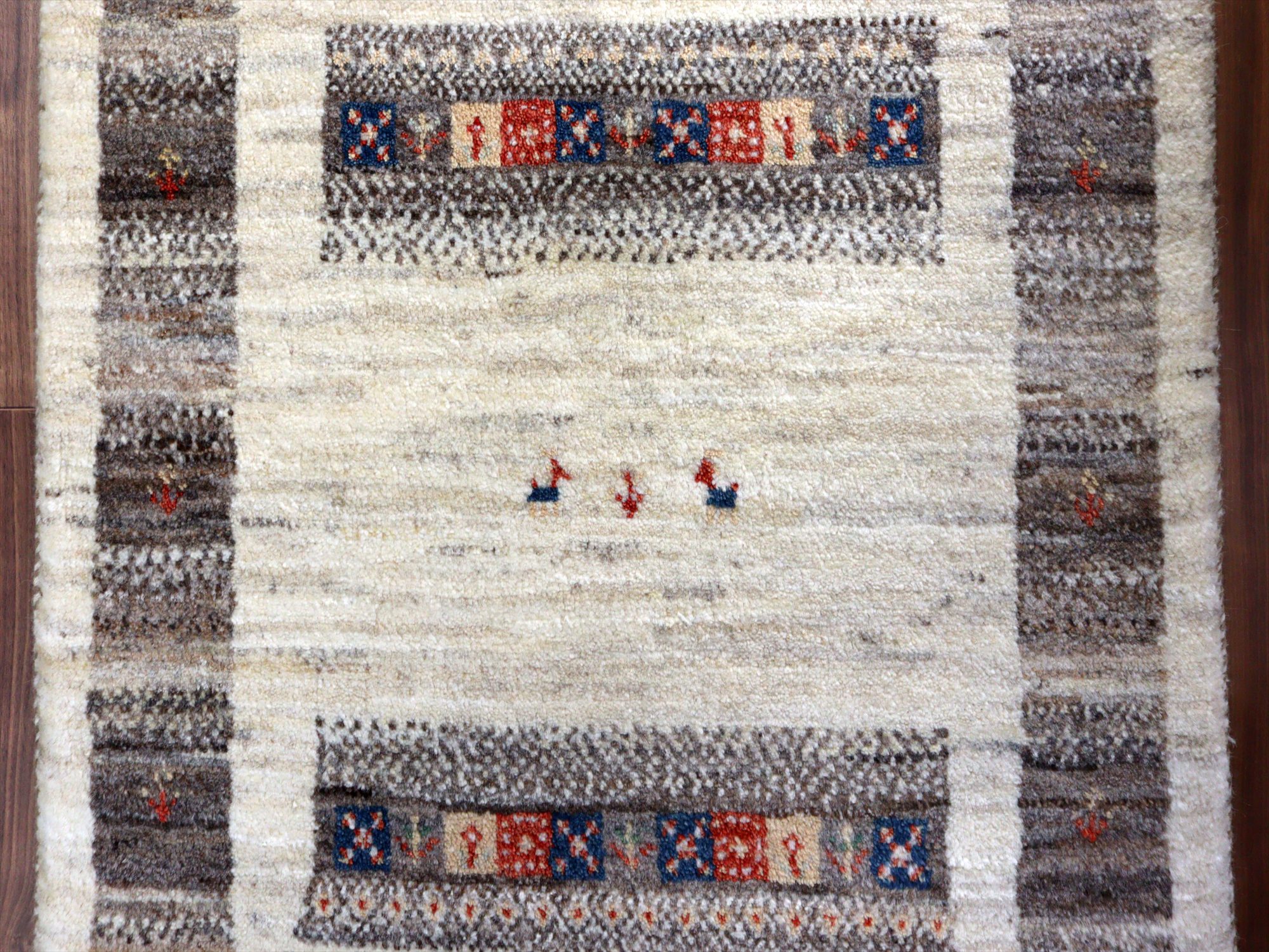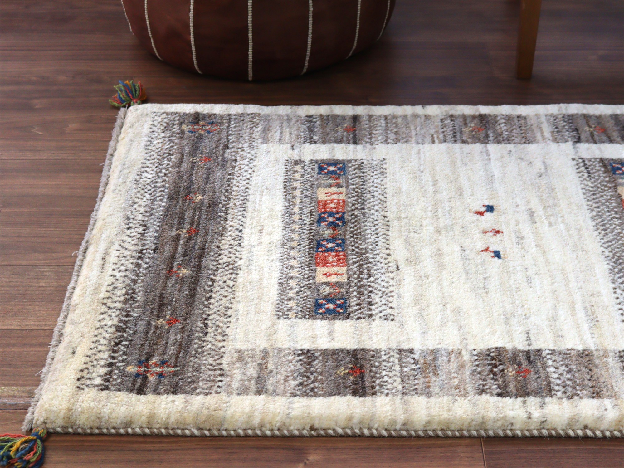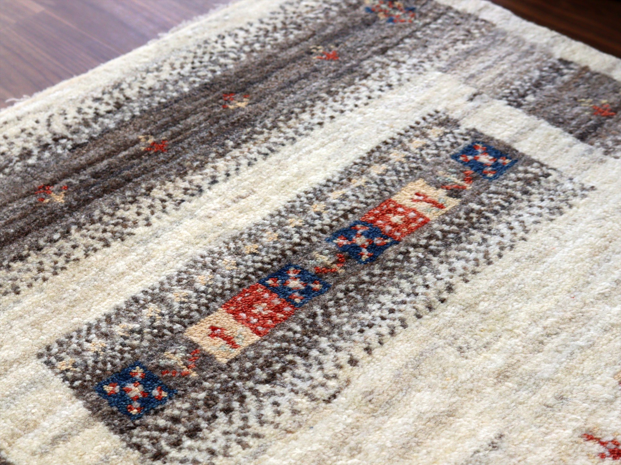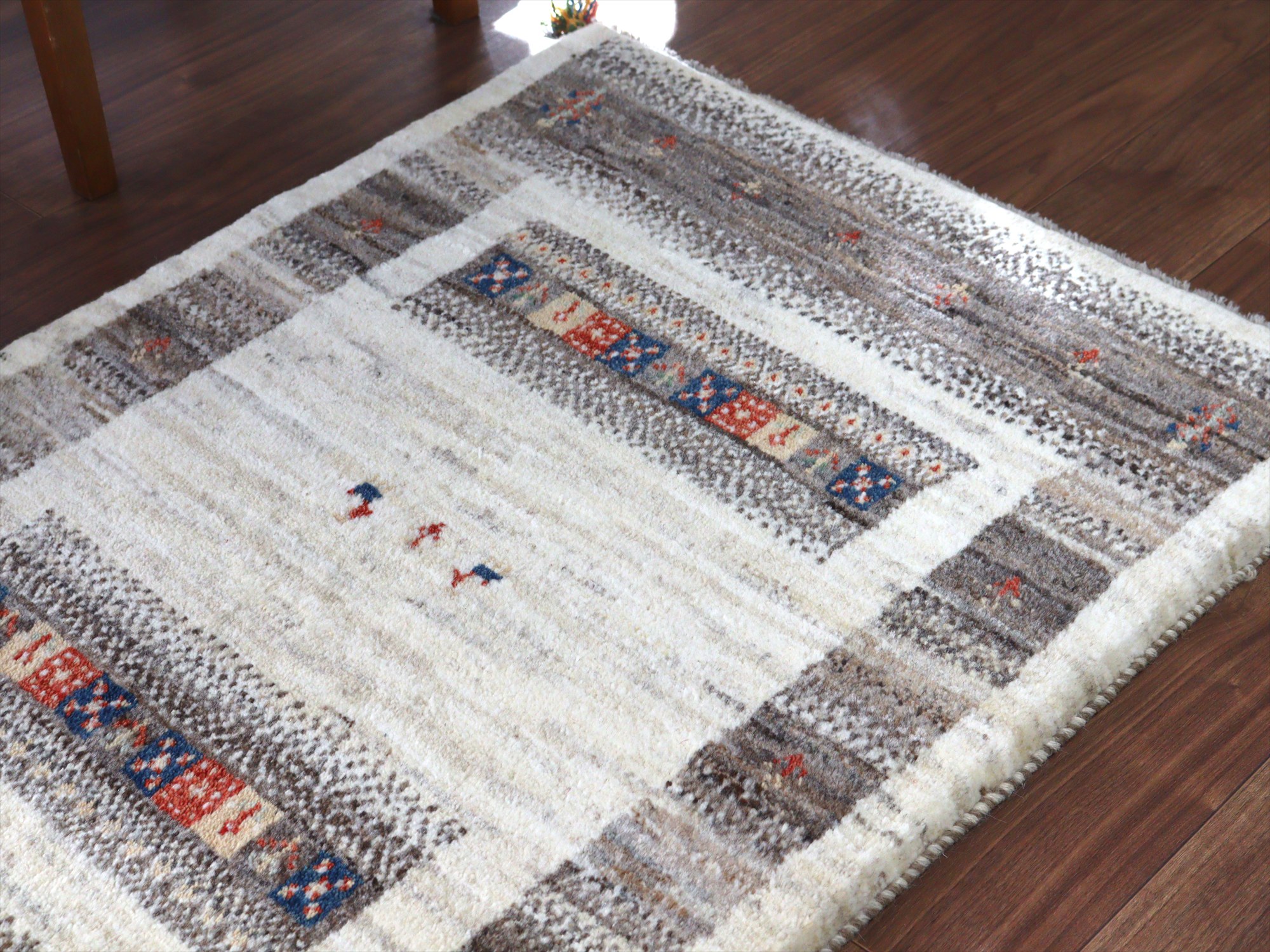 ギャッベ イランの手織りラグ 121x85cm グレー&アイボリー