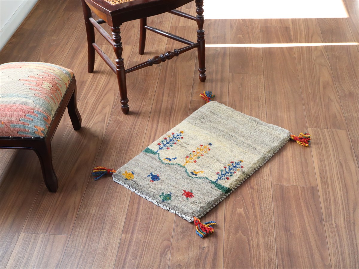 ギャッベ ミニギャベ イラン手織り 58×37cm ナチュラルアイボリー 生命の樹と魚と動物