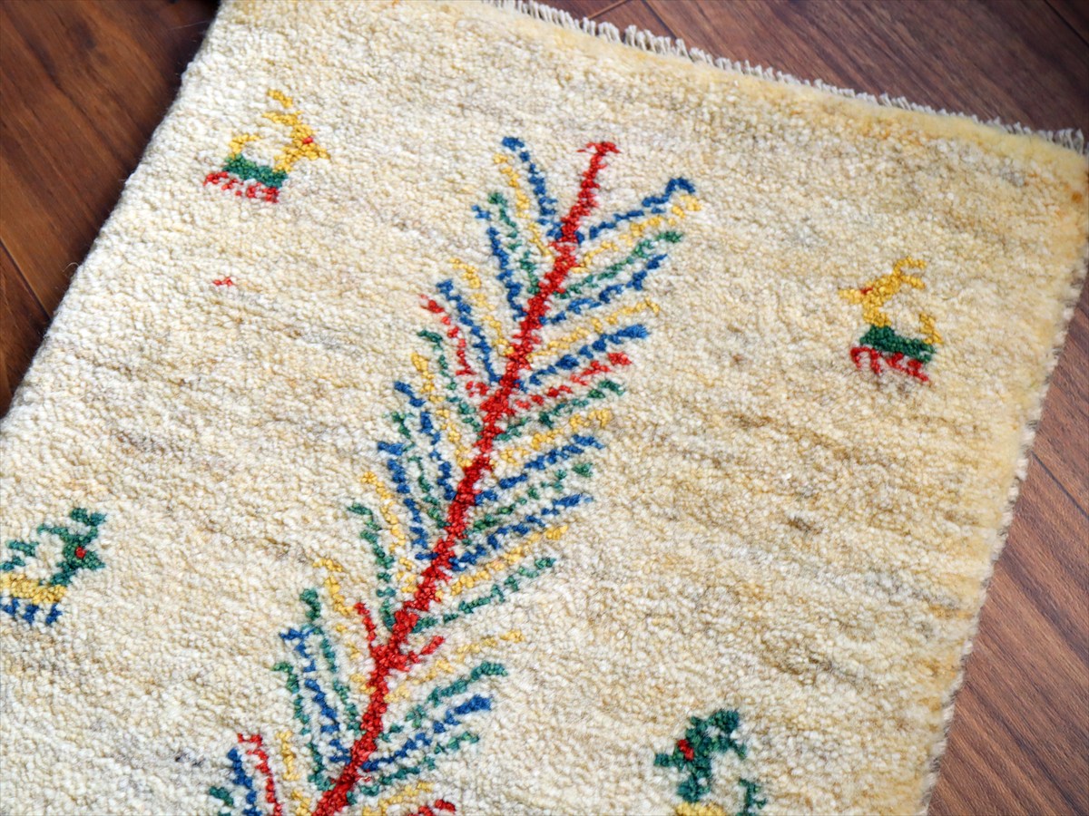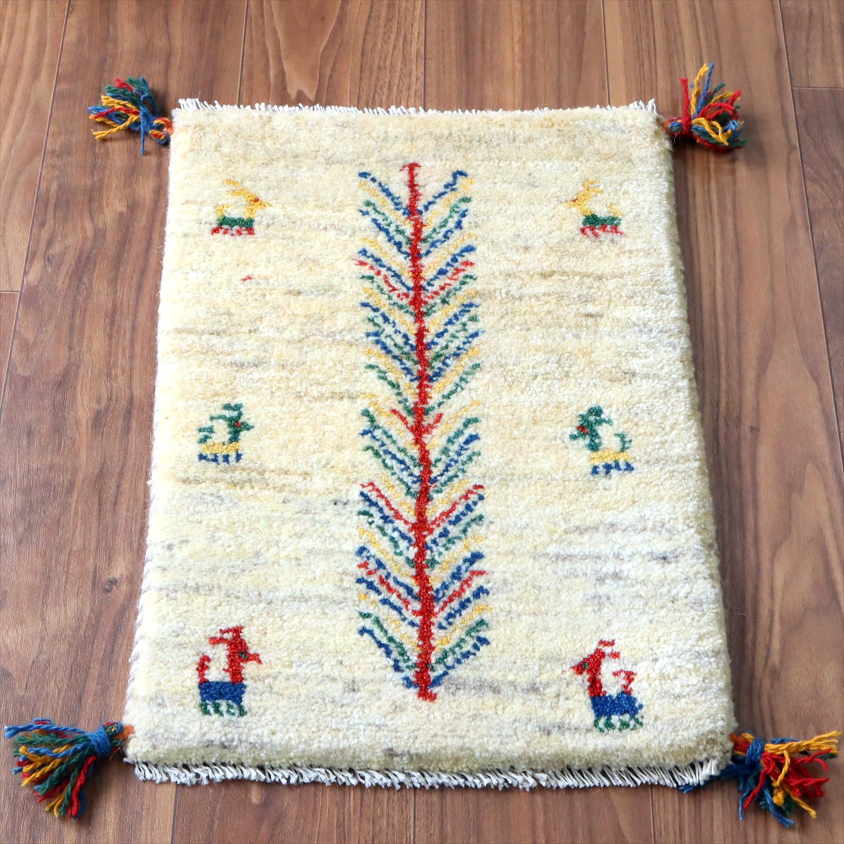 ギャッベ ミニギャベ イラン手織り 56×39cm ナチュラルアイボリー 連なる生命の樹と動物