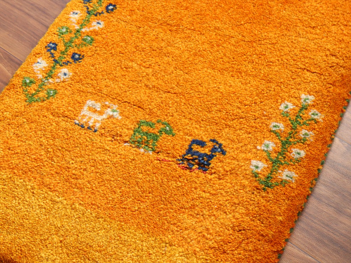 ギャッベ ミニギャベ イラン手織り 60×41cm イエローオレンジ 動物と生命の樹